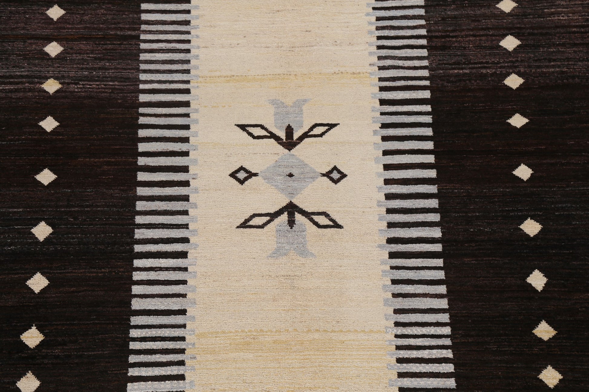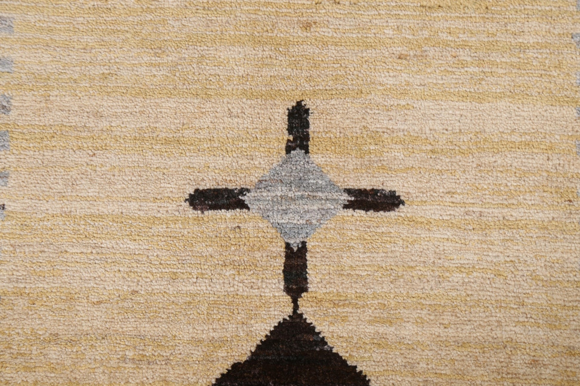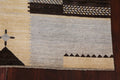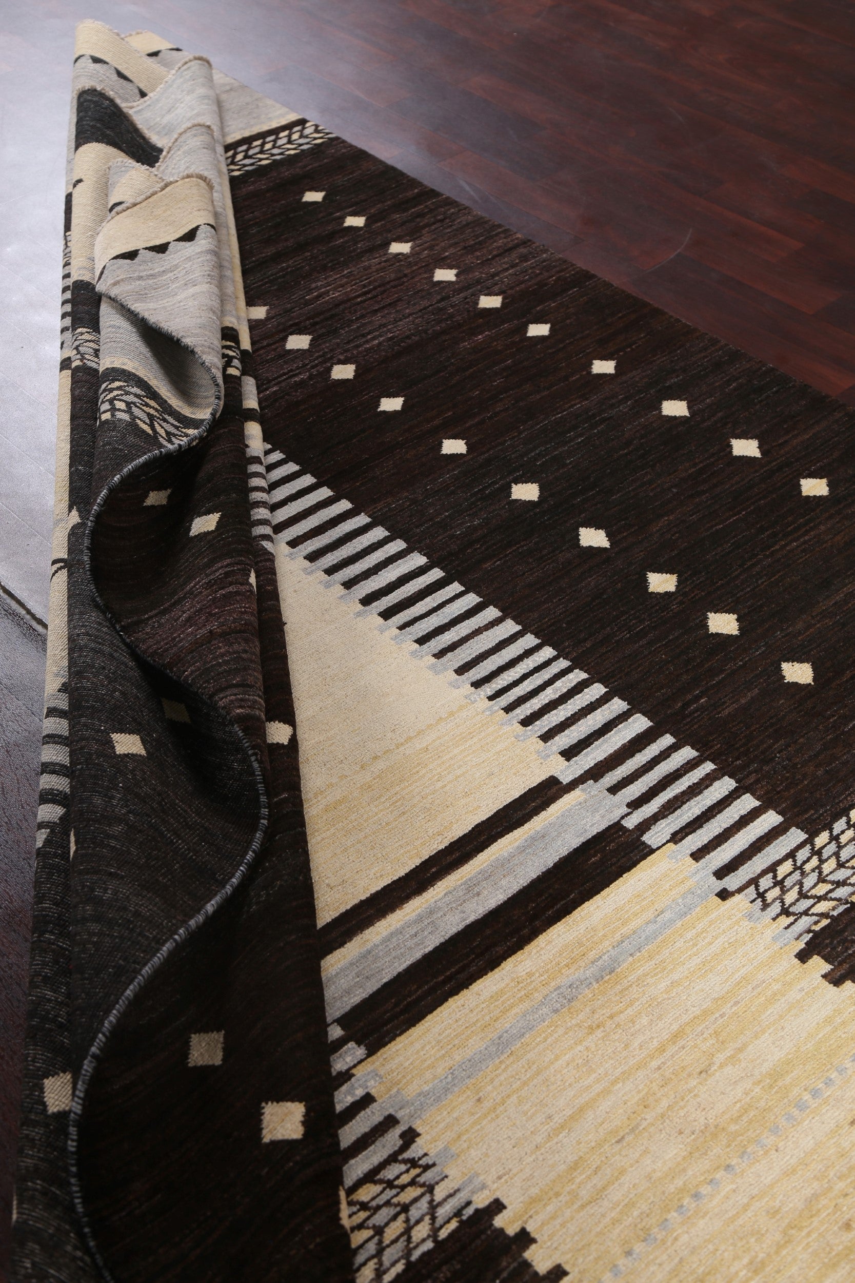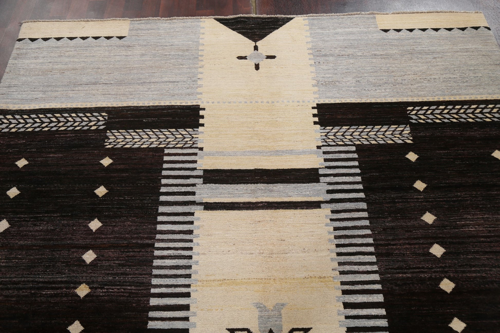 A Beautiful Genuine Pakistan Gabbeh (kashkoli) rug is Hand Knotted by skillful weavers in Pakistan with 100% Wool Material. This rug is in New, First Quality condition. dimensions are 9' 7'' X 6' 7'' in foot and 292 X 201 in centimeter. the primary color is Black.