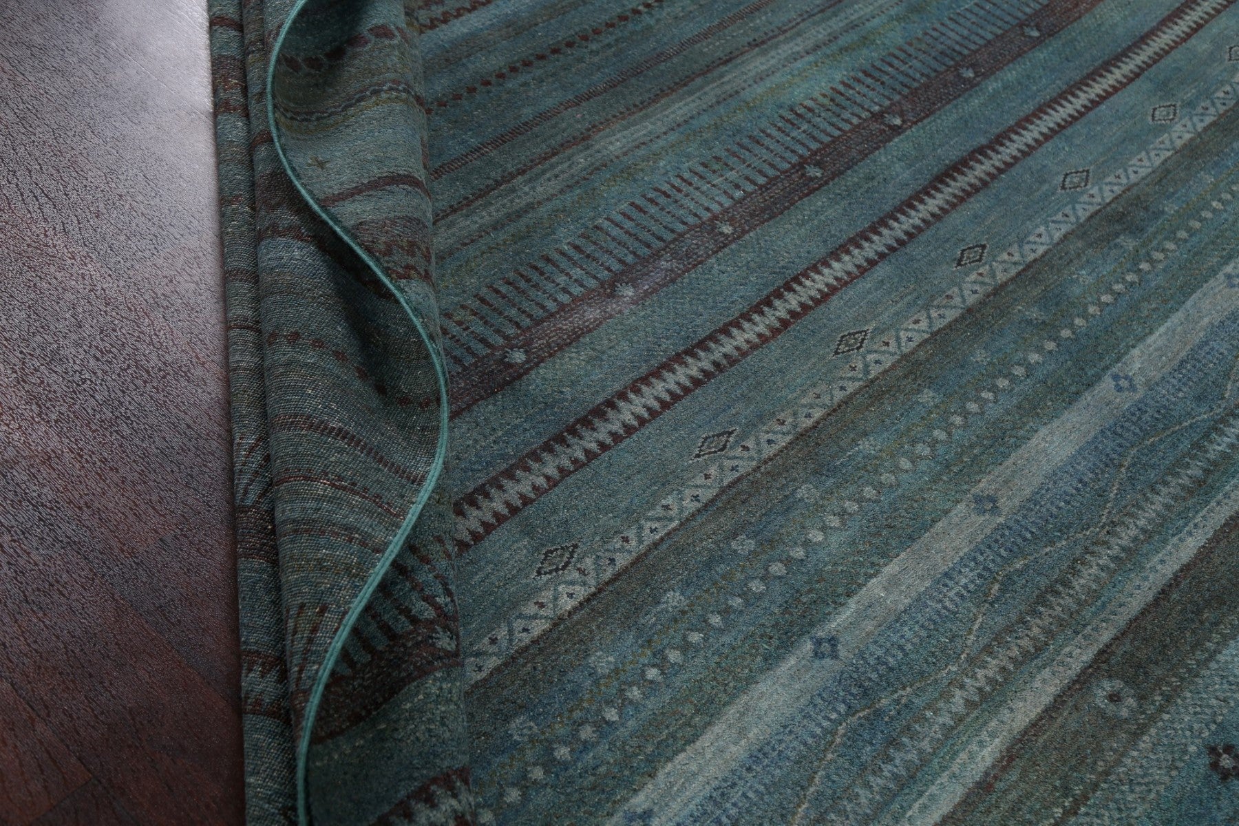 A Beautiful Genuine Pakistan Gabbeh (kashkoli) rug is Hand Knotted by skillful weavers in Pakistan with 100% Wool Material. This rug is in New, First Quality condition. dimensions are 13' 0'' X 8' 9'' in foot and 396 X 267 in centimeter. the primary color is Green.