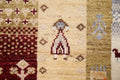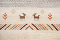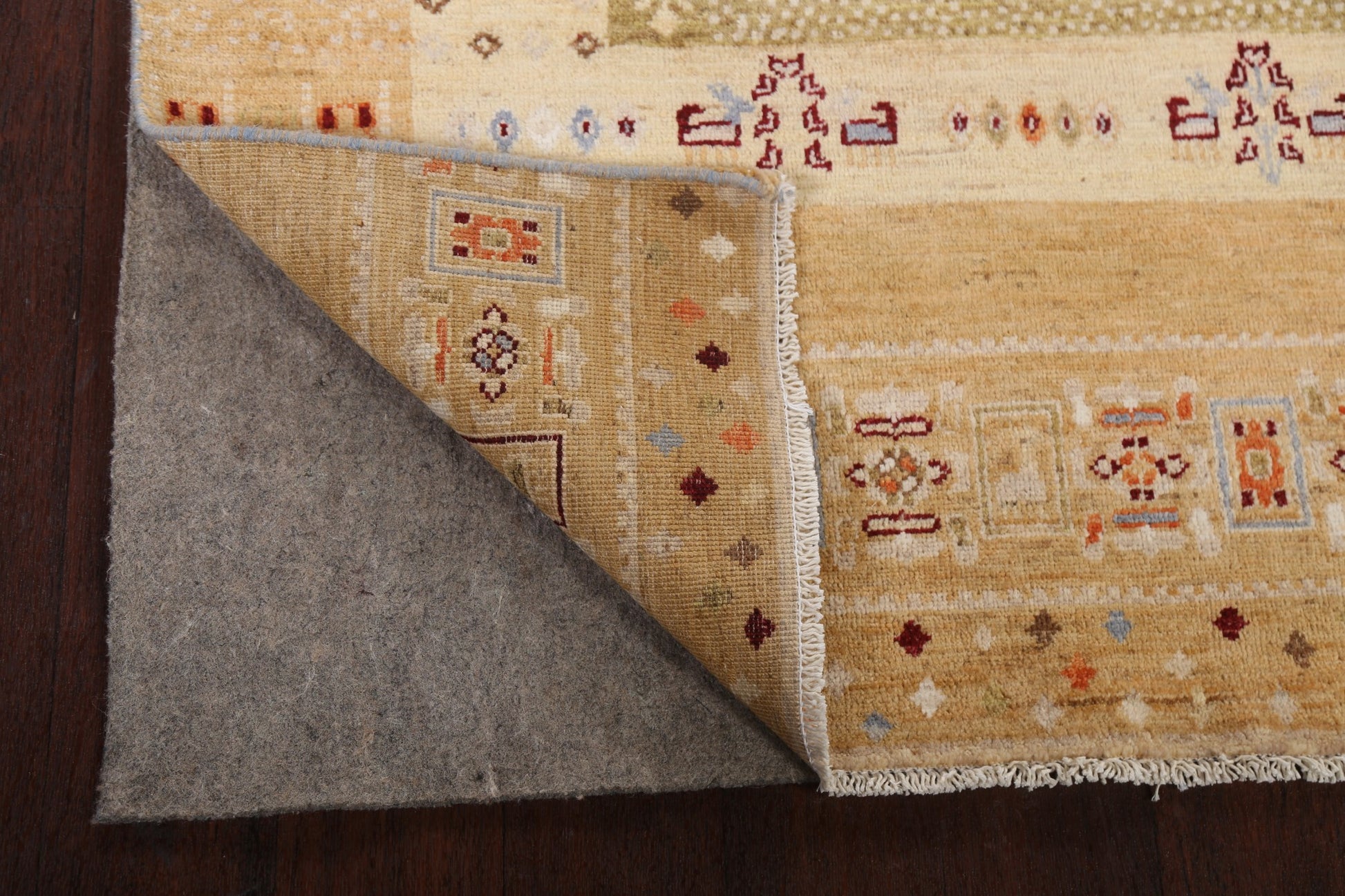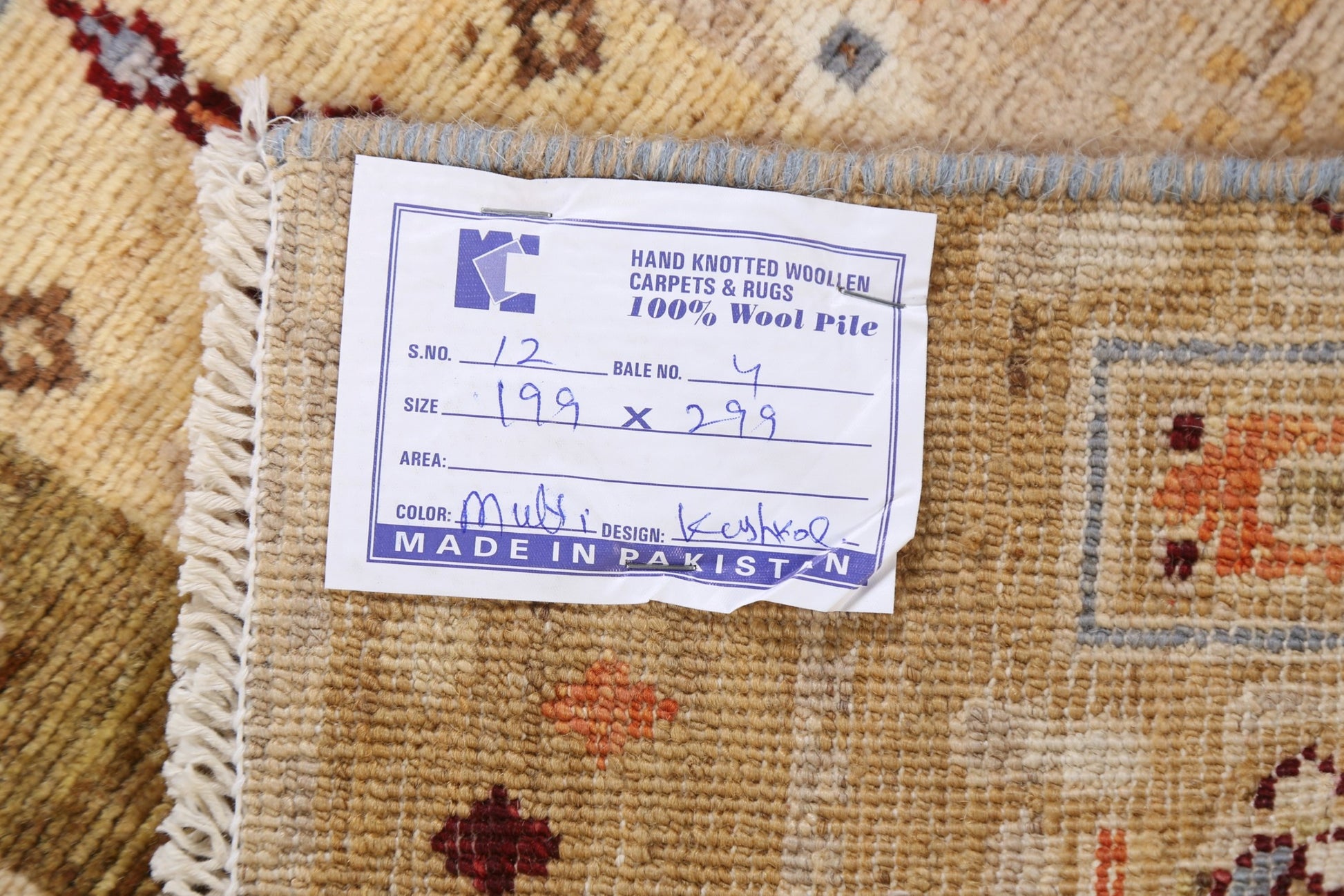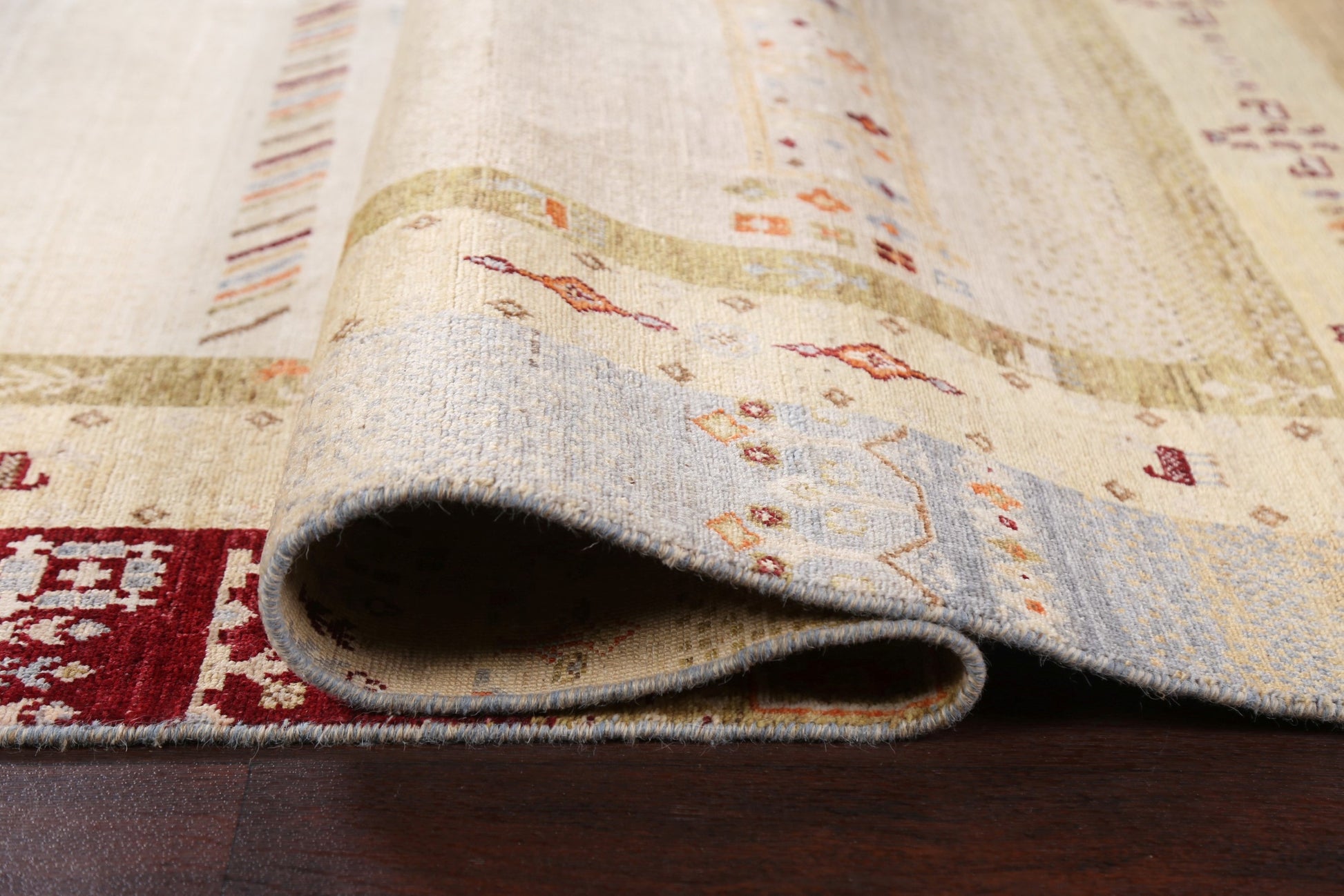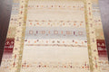 A Beautiful Genuine Pakistan Gabbeh (kashkoli) rug is Hand Knotted by skillful weavers in Pakistan with 100% Wool Material. This rug is in New, First Quality condition. dimensions are 9' 10'' X 6' 6'' in foot and 300 X 198 in centimeter. the primary color is Beige & Ivories.