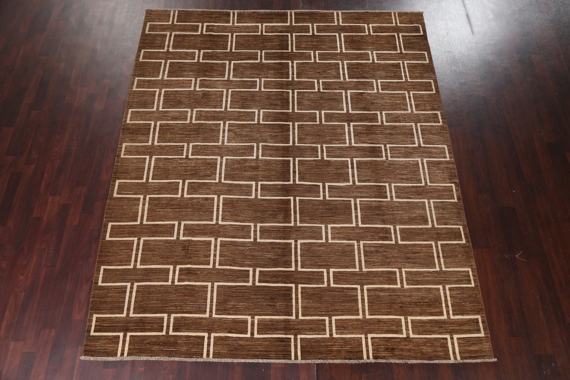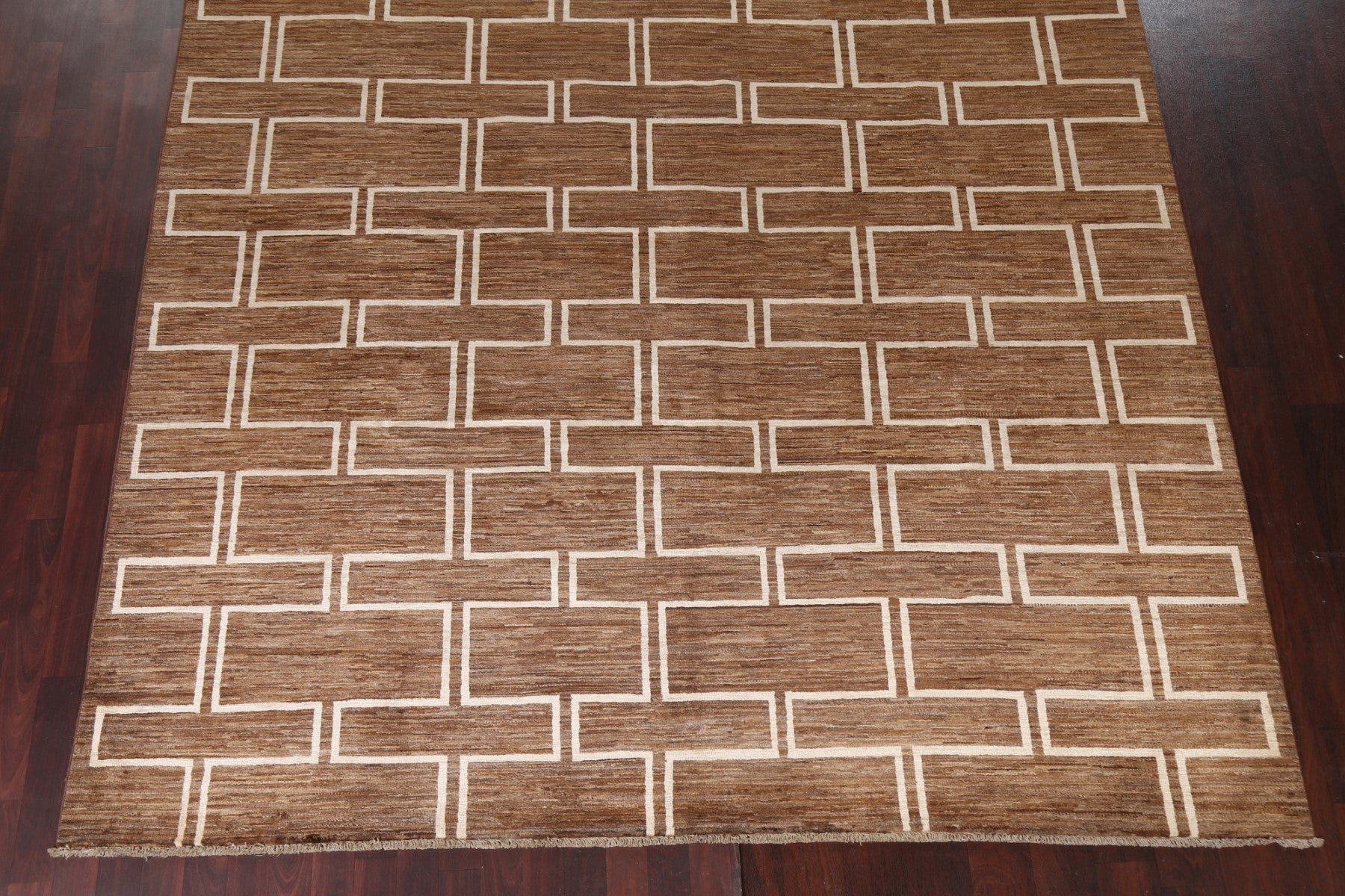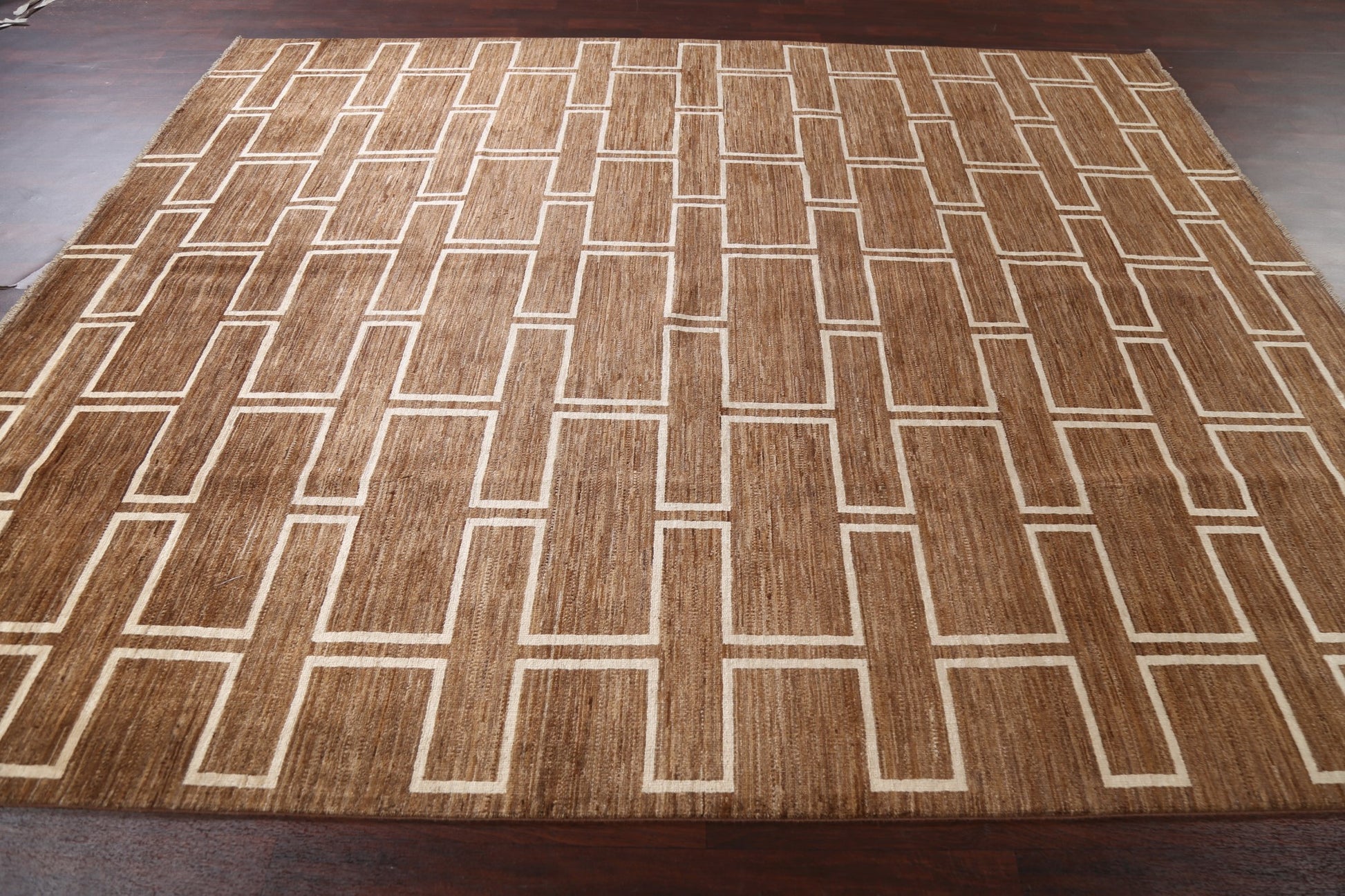 A Beautiful Genuine Pakistan Gabbeh (kashkoli) rug is Hand Knotted by skillful weavers in Pakistan with 100% Wool Material. This rug is in New, First Quality condition. dimensions are 9' 9'' X 8' 3'' in foot and 297 X 251 in centimeter. the primary color is Brown.