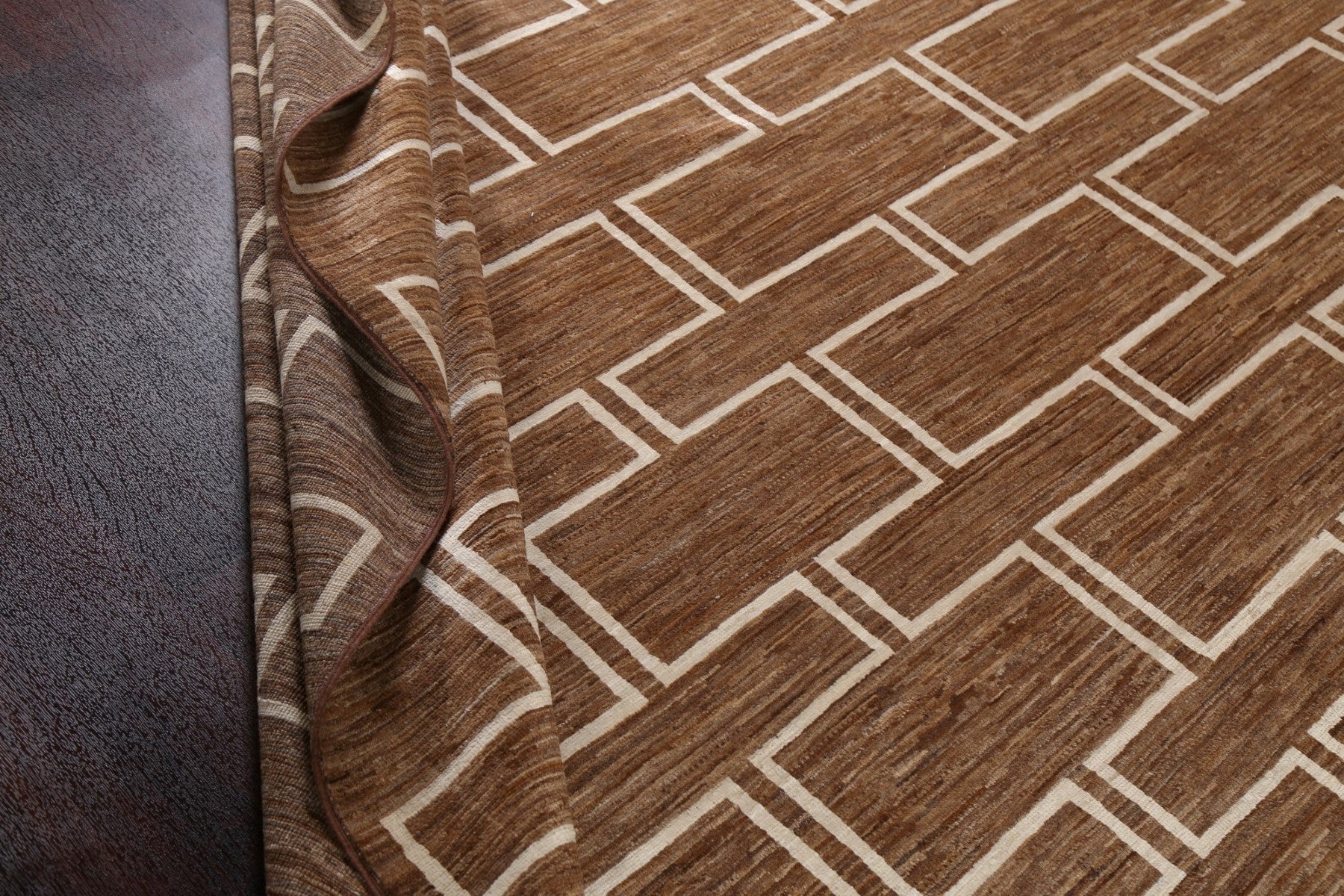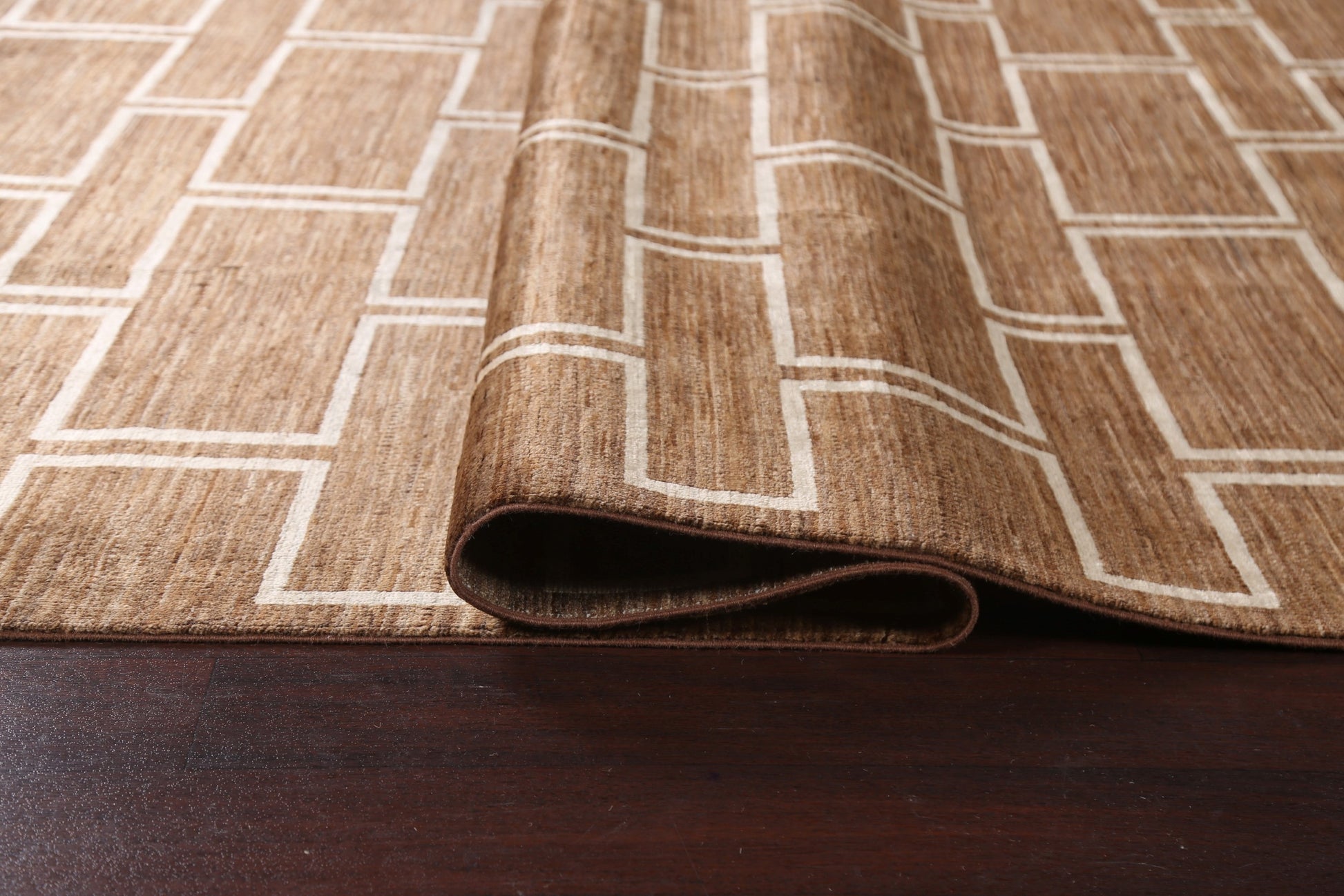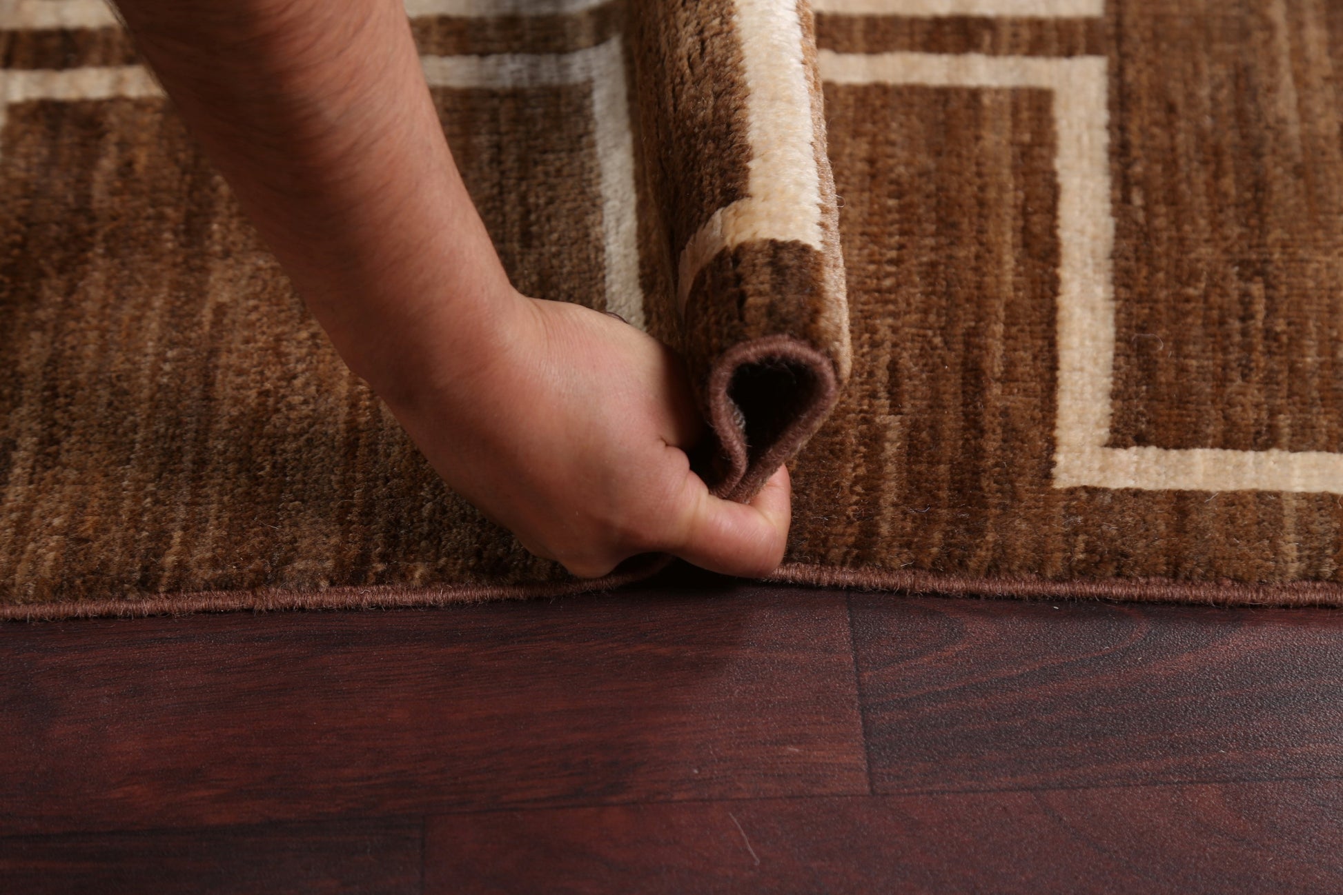 A Beautiful Genuine Pakistan Gabbeh (kashkoli) rug is Hand Knotted by skillful weavers in Pakistan with 100% Wool Material. This rug is in New, First Quality condition. dimensions are 9' 9'' X 8' 3'' in foot and 297 X 251 in centimeter. the primary color is Brown.