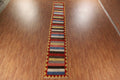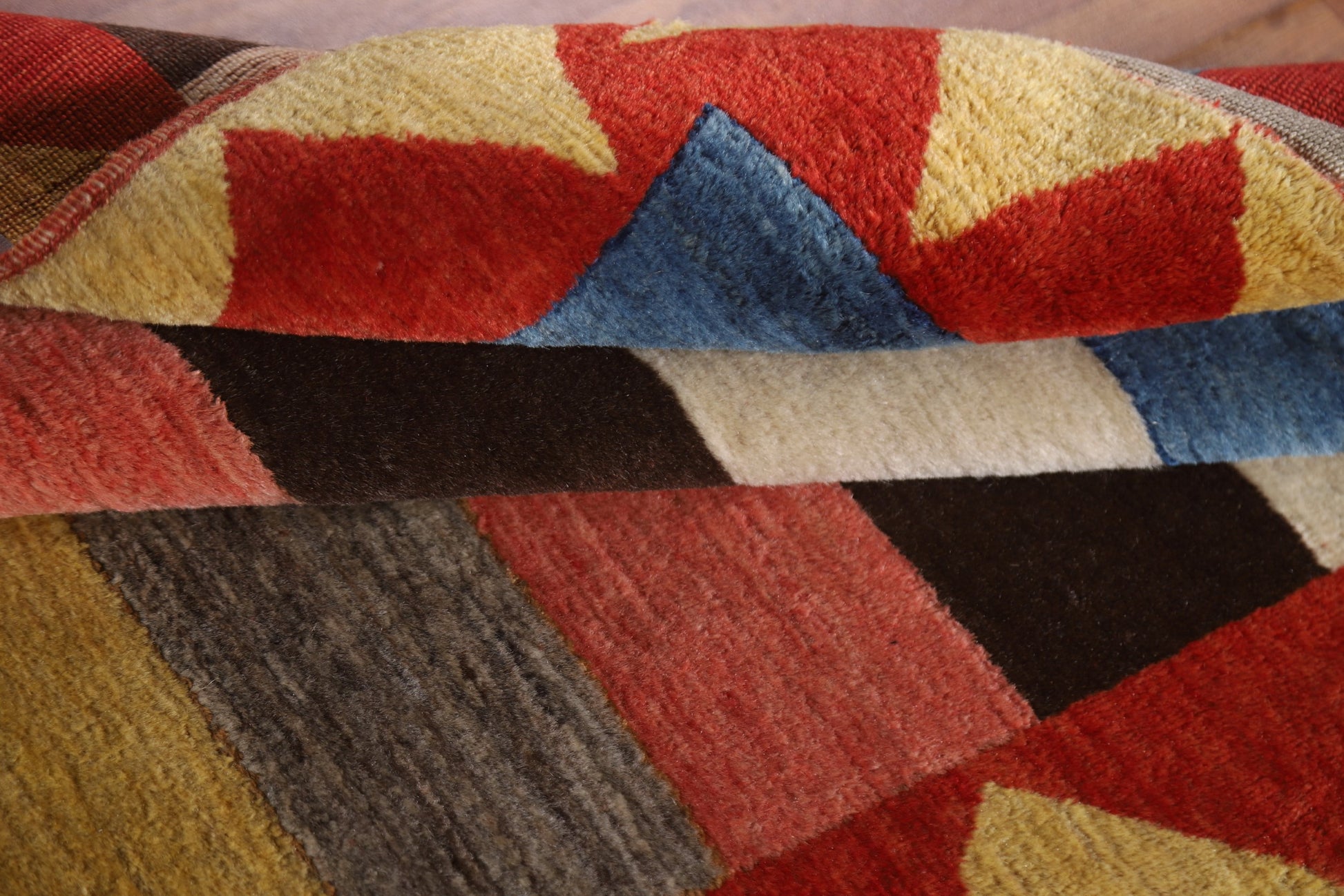 A Beautiful Genuine Persia ( Persia ) Gabbeh (Zollanvari) rug is Hand Knotted by skillful weavers in Persia ( Persia ) with 100% Wool Material. This rug is in Very Good condition. dimensions are 19' 5'' X 3' 1'' in foot and 592 X 94 in centimeter. the primary color is Multi-Colored.