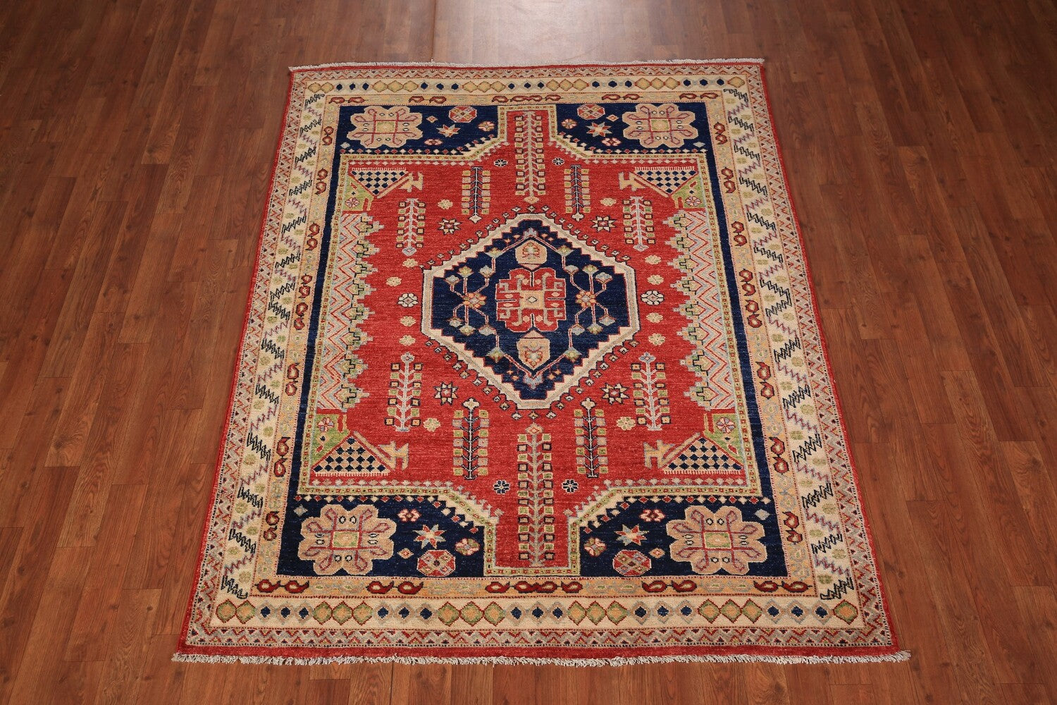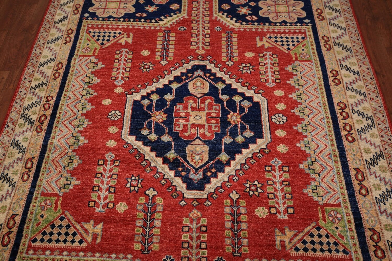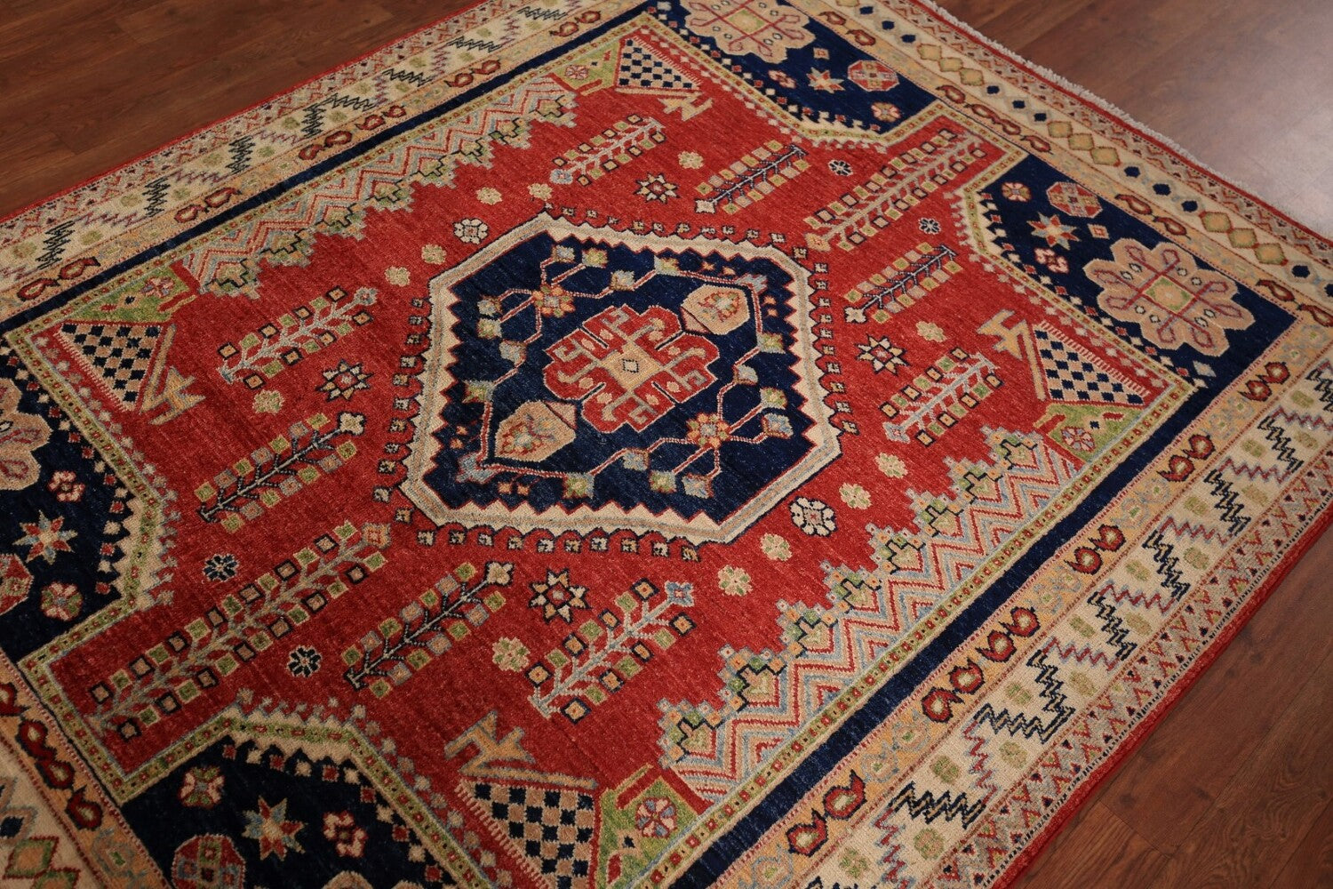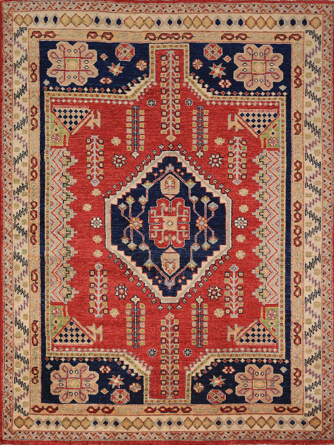 A Beautiful Genuine Pakistan Heriz rug is Hand Knotted by skillful weavers in Pakistan with 100% Wool Material. This rug is in New, First Quality condition. dimensions are 6' 2'' X 4' 10'' in foot and 188 X 147 in centimeter. the primary color is Red.