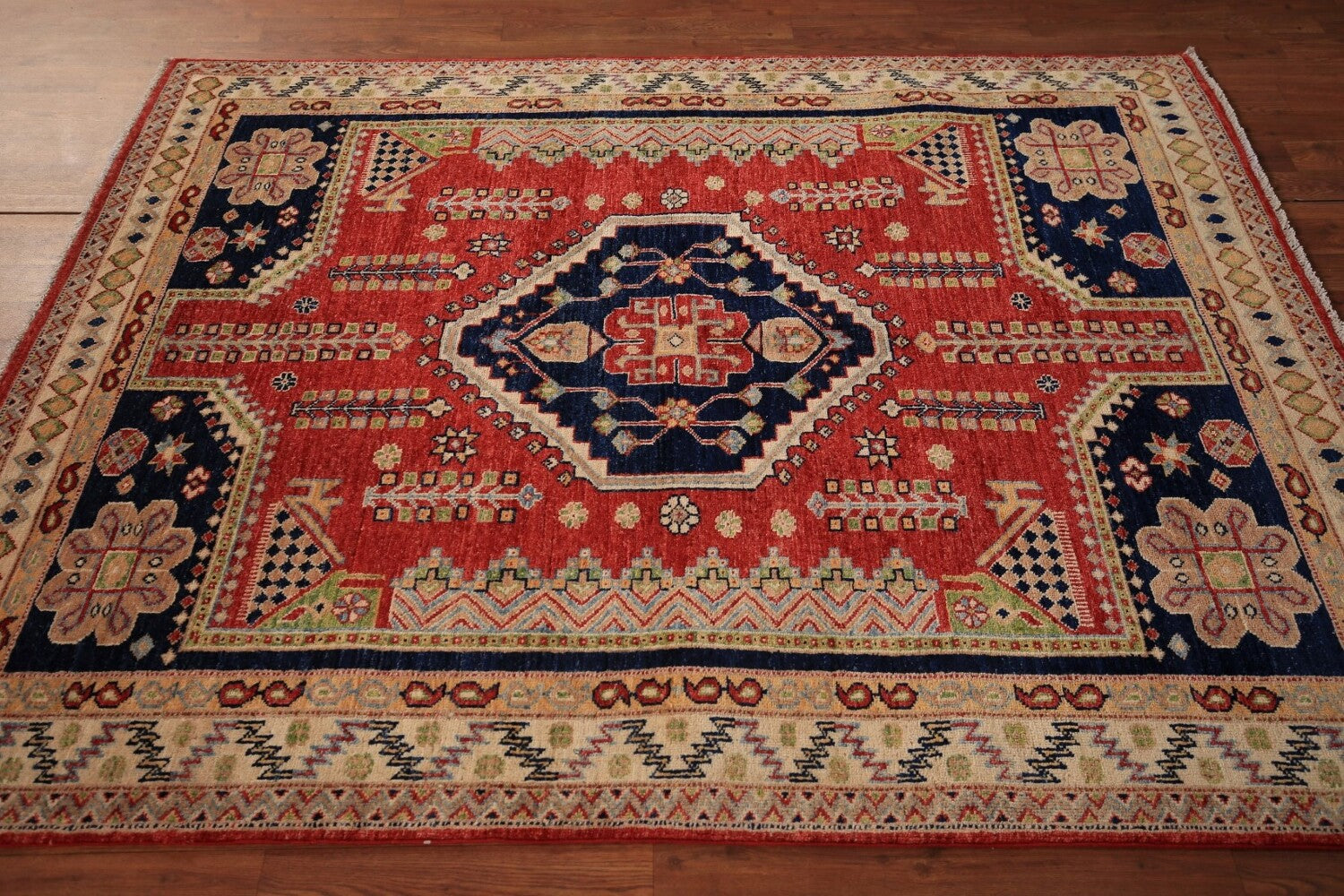 Vegetable Dye Geometric Heriz Oriental Rug 5x6