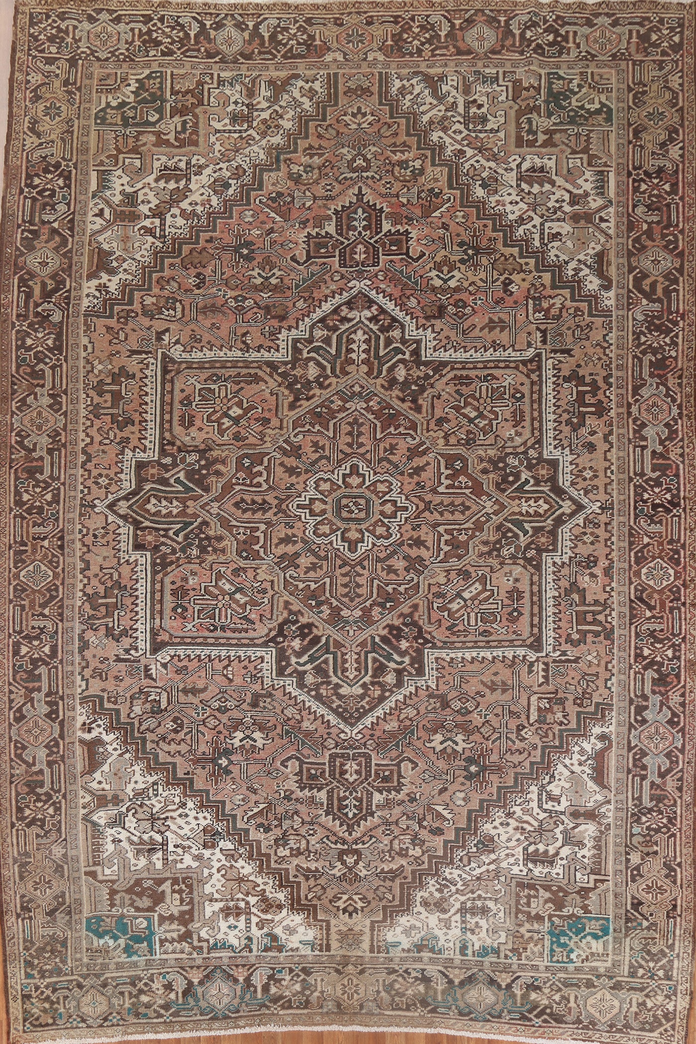 Vegetable Dye Geometric Heriz Persian Area Rug 10x12