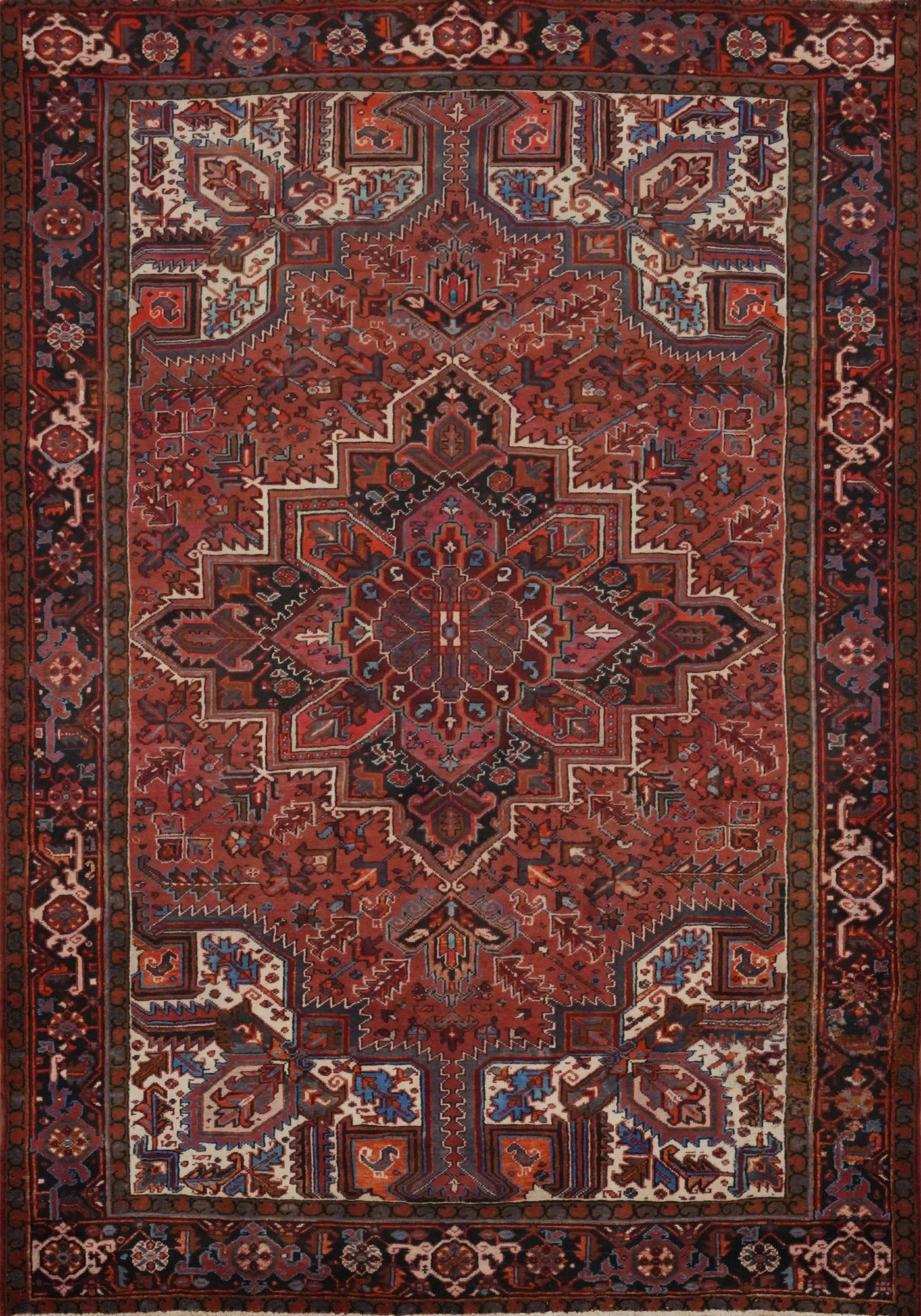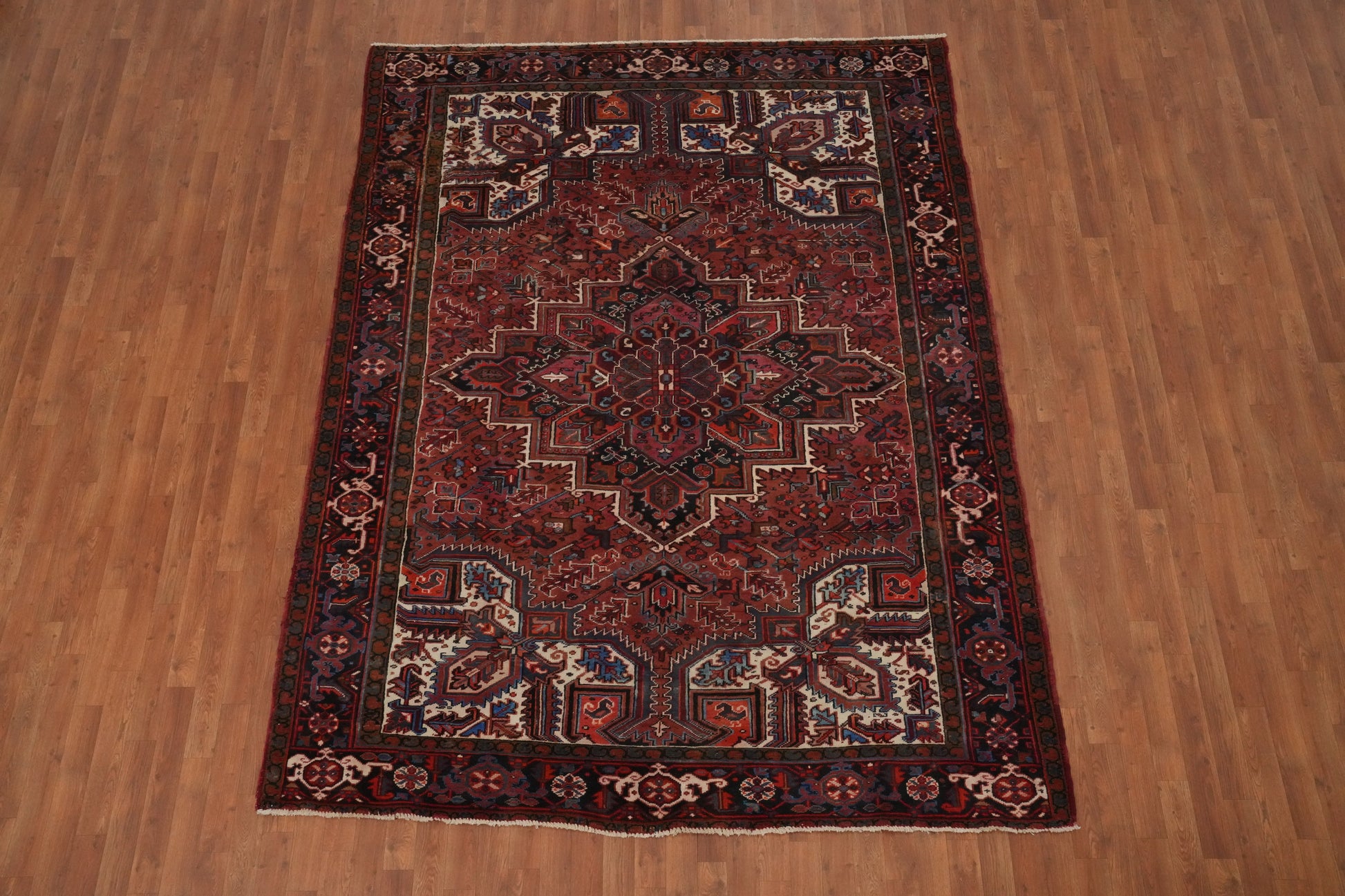 Vegetable Dye Geometric Heriz Persian Area Rug 7x9