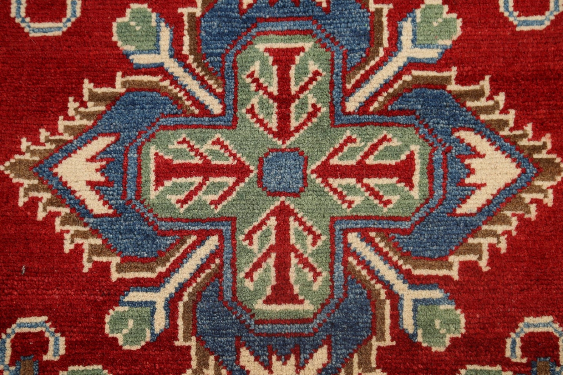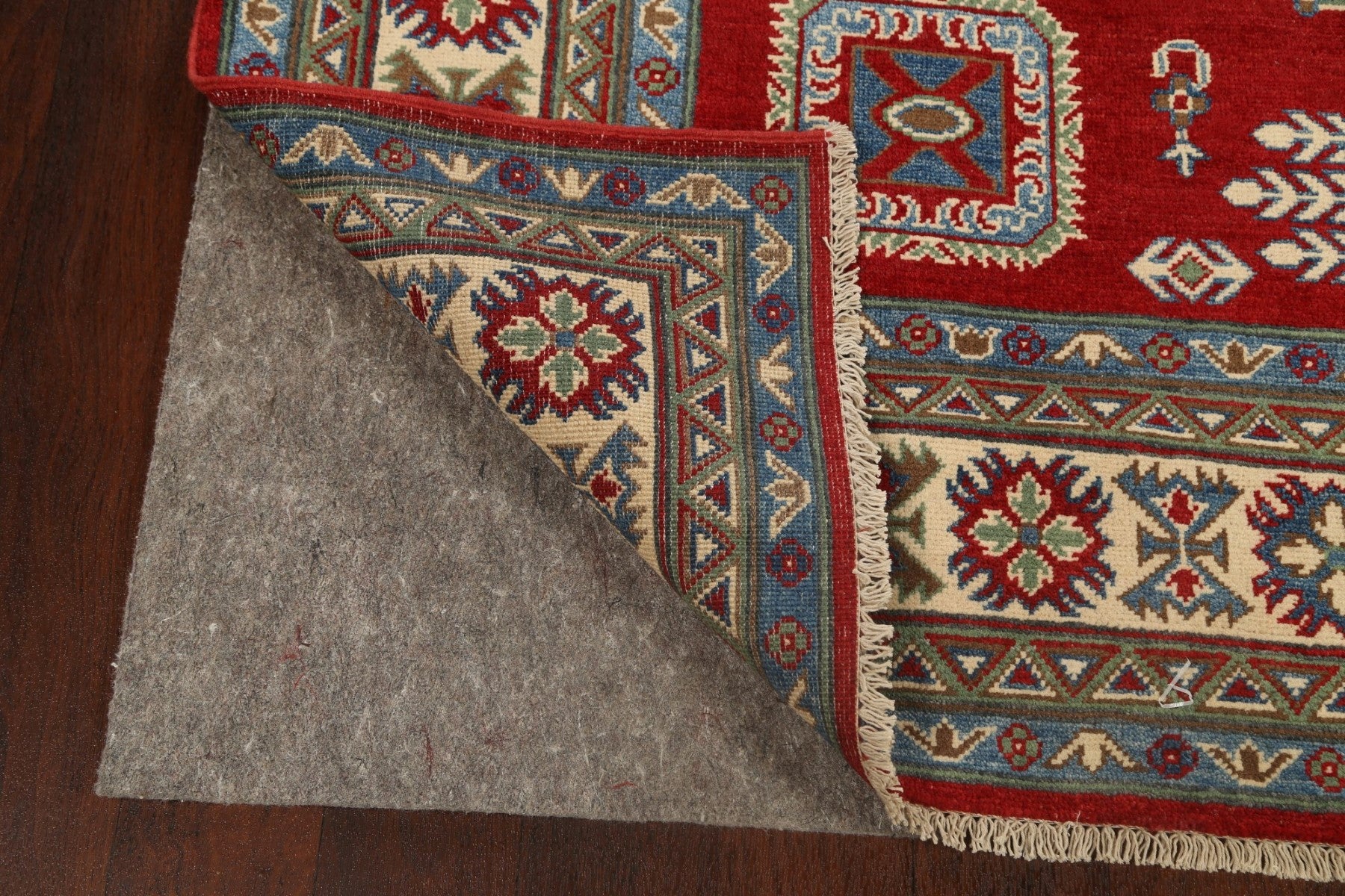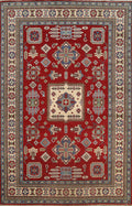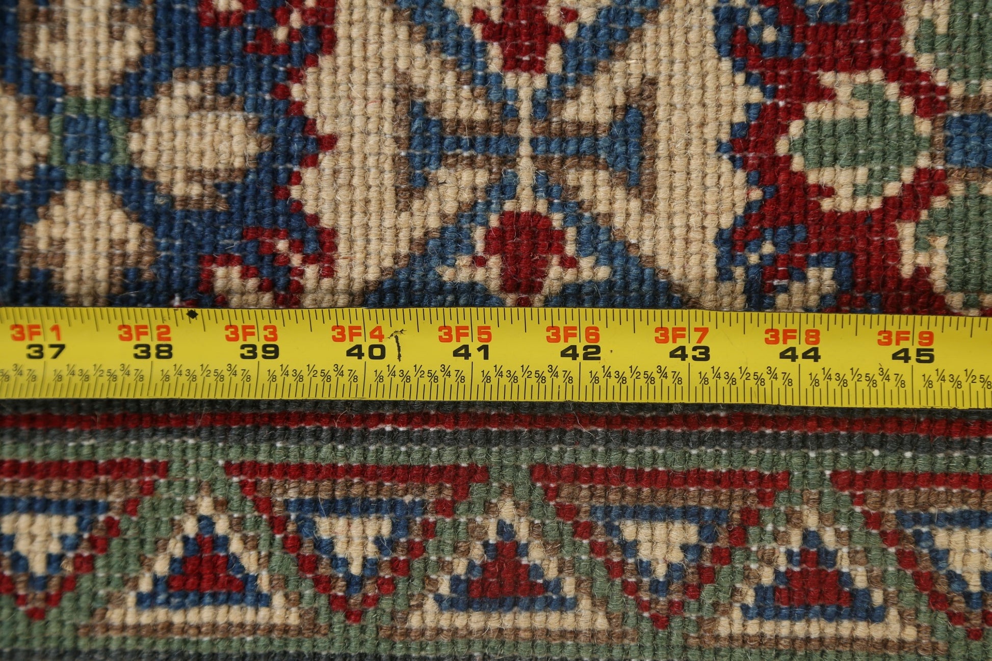 A Beautiful Genuine Pakistan Kazak rug is Hand Knotted by skillful weavers in Pakistan with 100% Wool Material. This rug is in New, First Quality condition. dimensions are 9' 10'' X 6' 8'' in foot and 300 X 203 in centimeter. the primary color is Red.