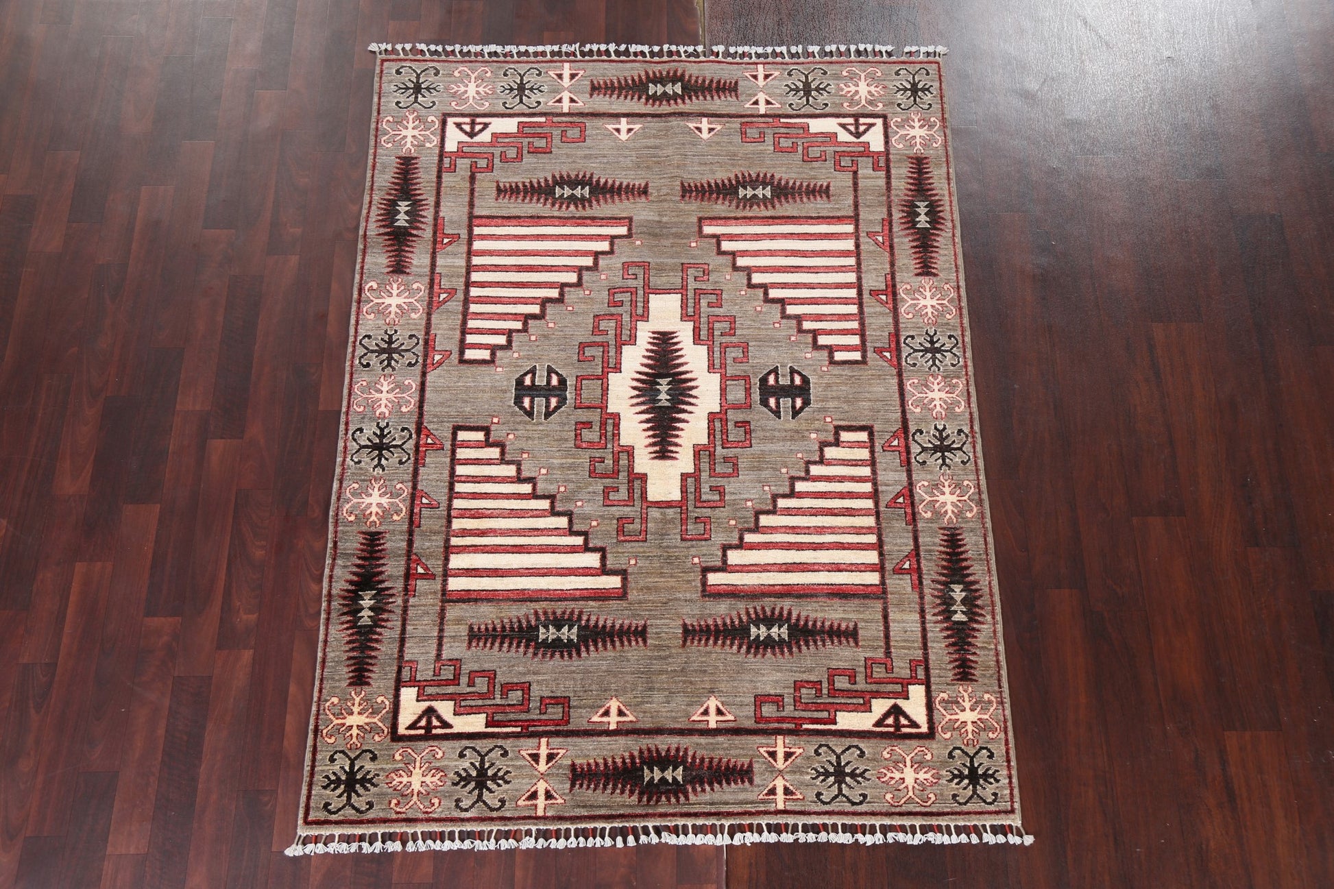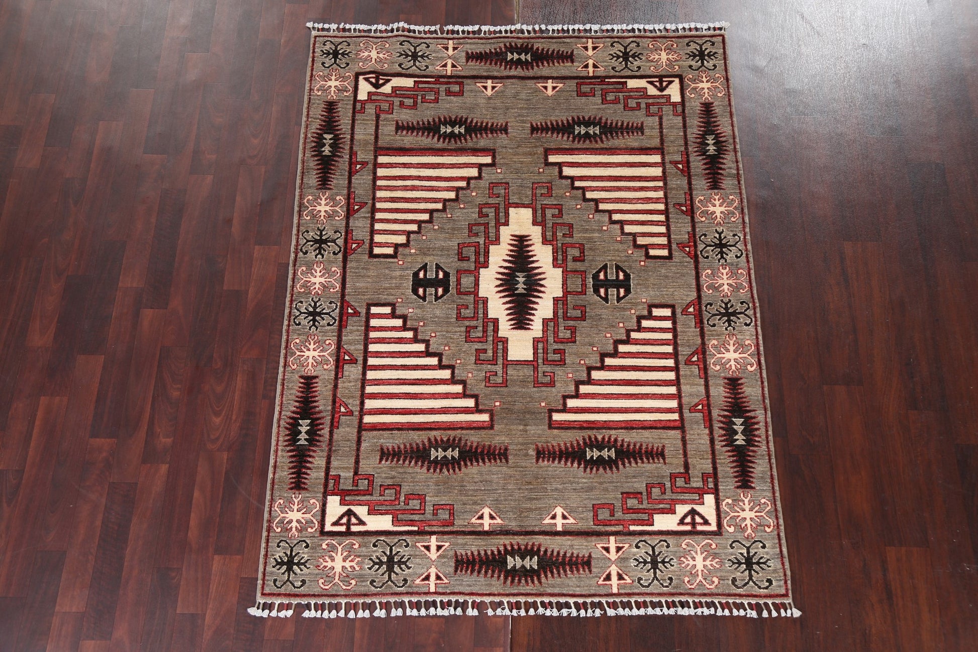 Vegetable Dye Geometric Khotan Oriental Area Rug 5x7