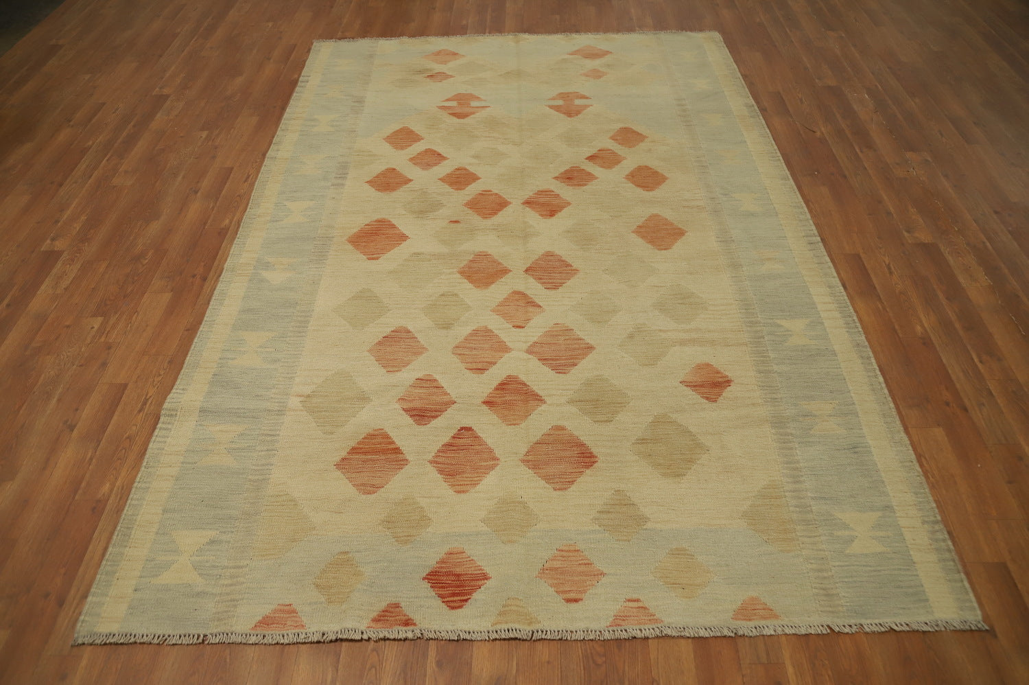 Vegetable Dye Geometric Kilim Flat Weave Area Rug 6x9