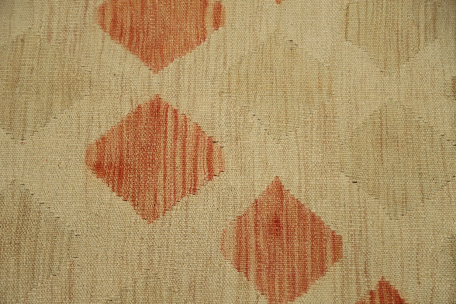 A Beautiful Genuine Pakistan Kilim rug is Hand Woven by skillful weavers in Pakistan with 100% Wool Material. This rug is in New, First Quality condition. dimensions are 8' 8'' X 5' 10'' in foot and 264 X 178 in centimeter. the primary color is Beige & Ivories.