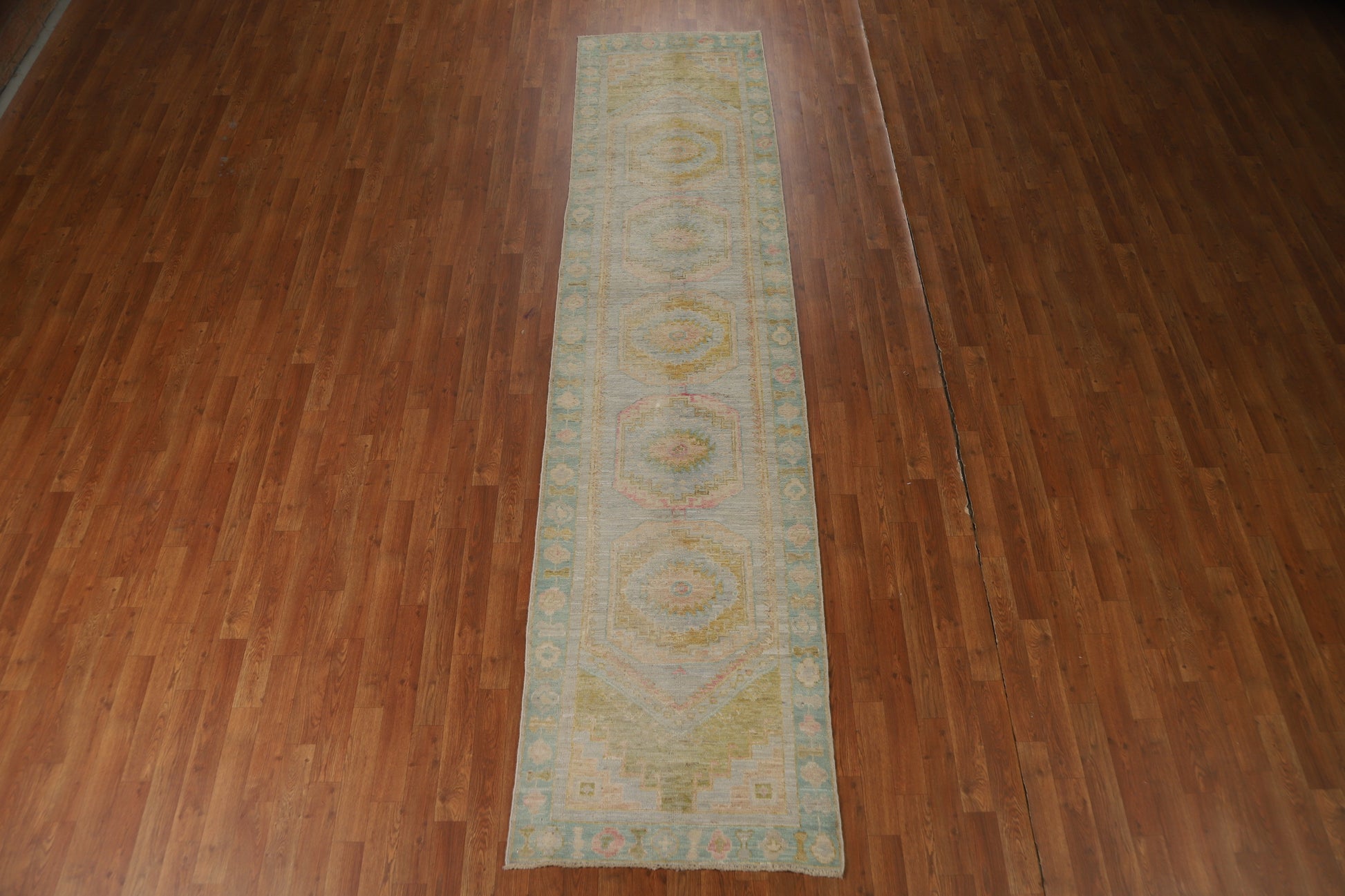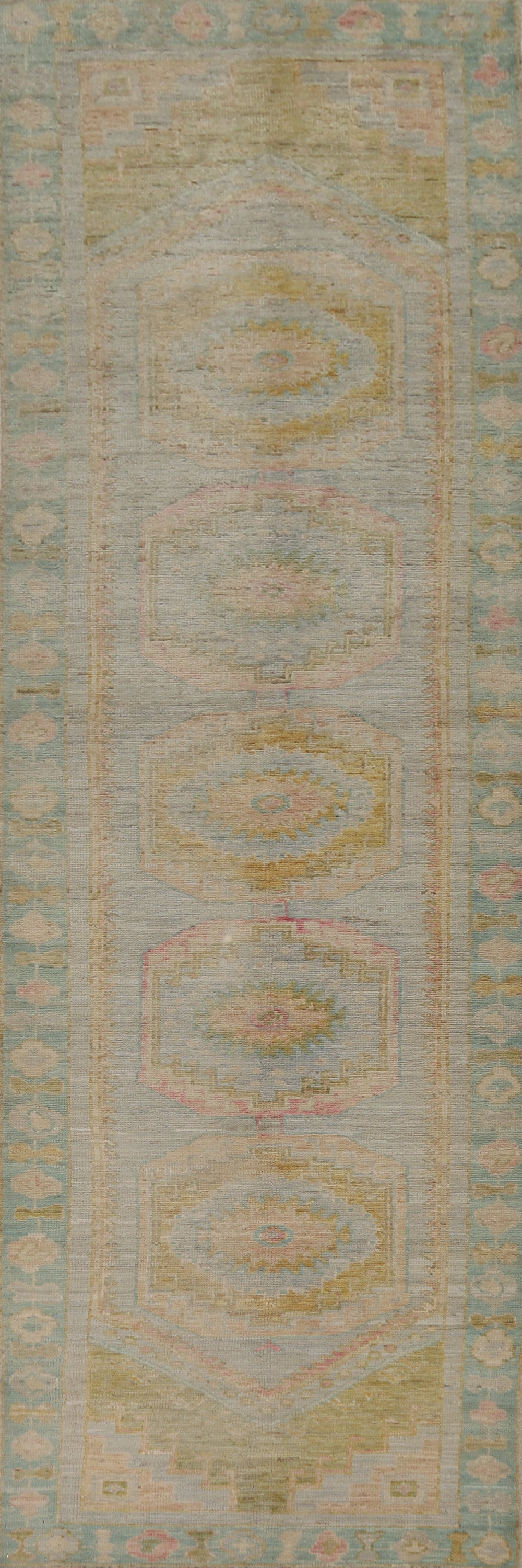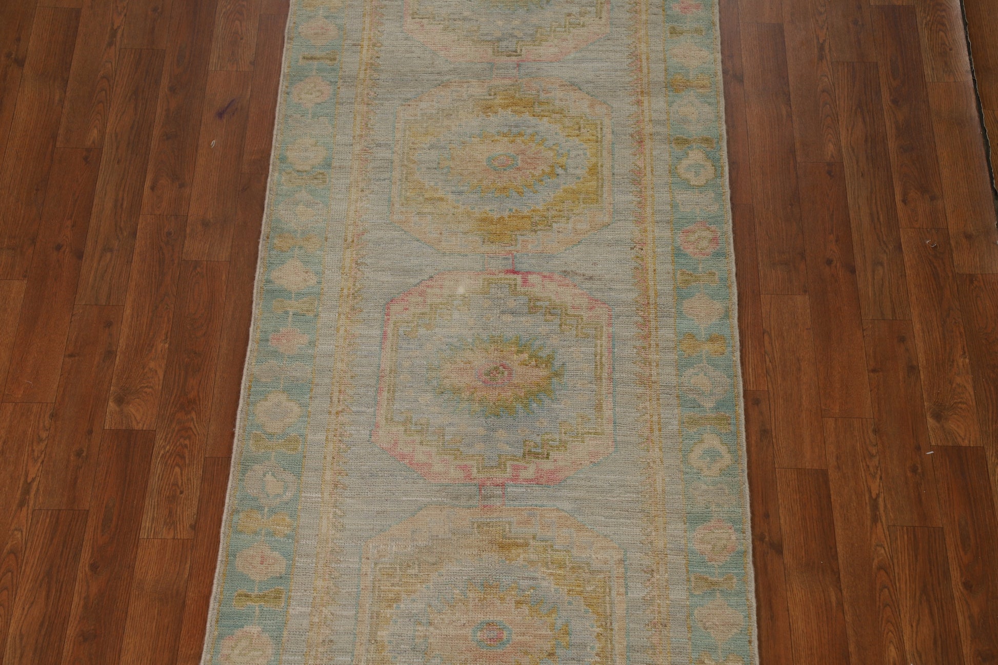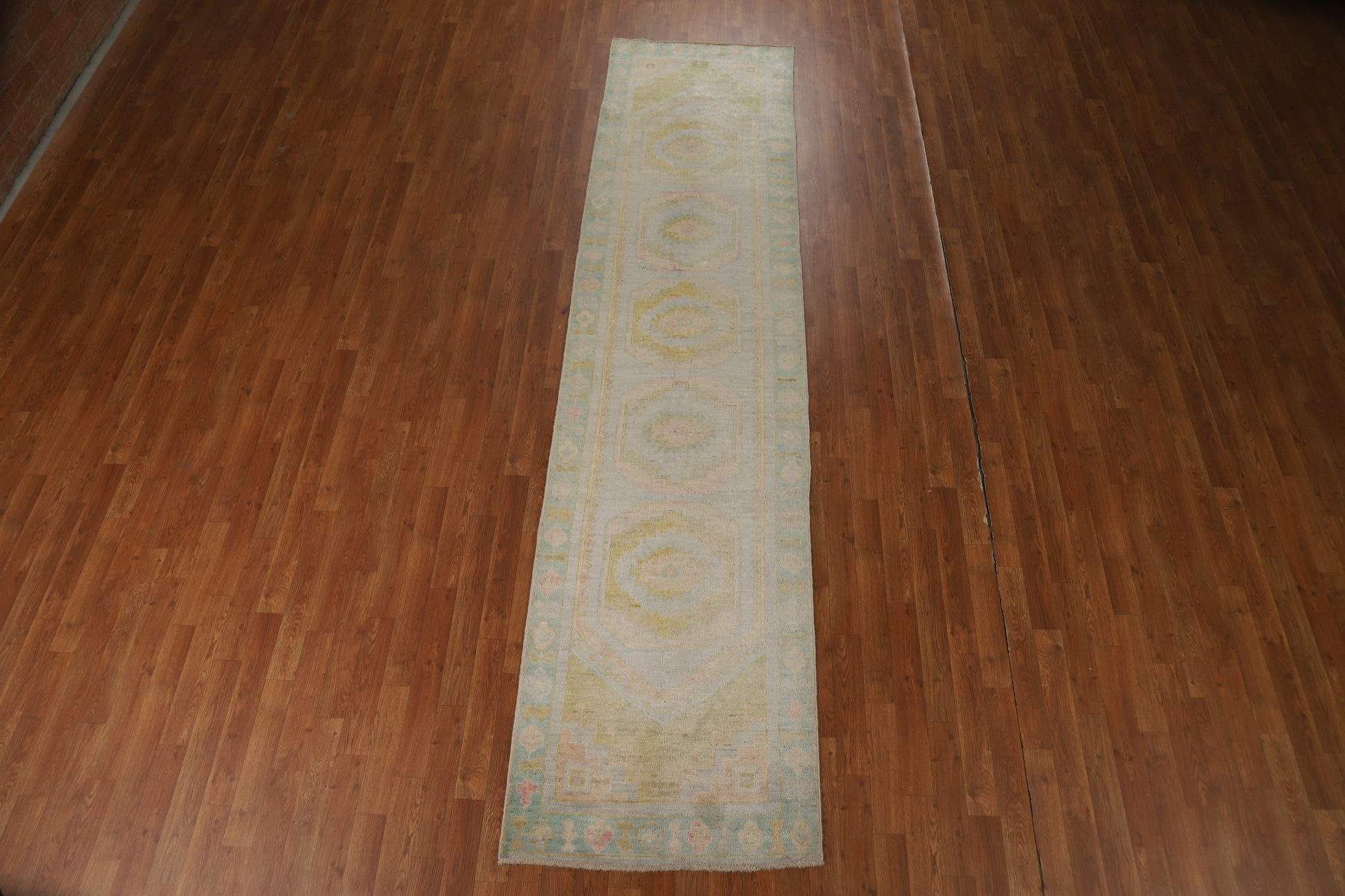 Vegetable Dye Geometric Oushak Turkish Runner Rug 3x12