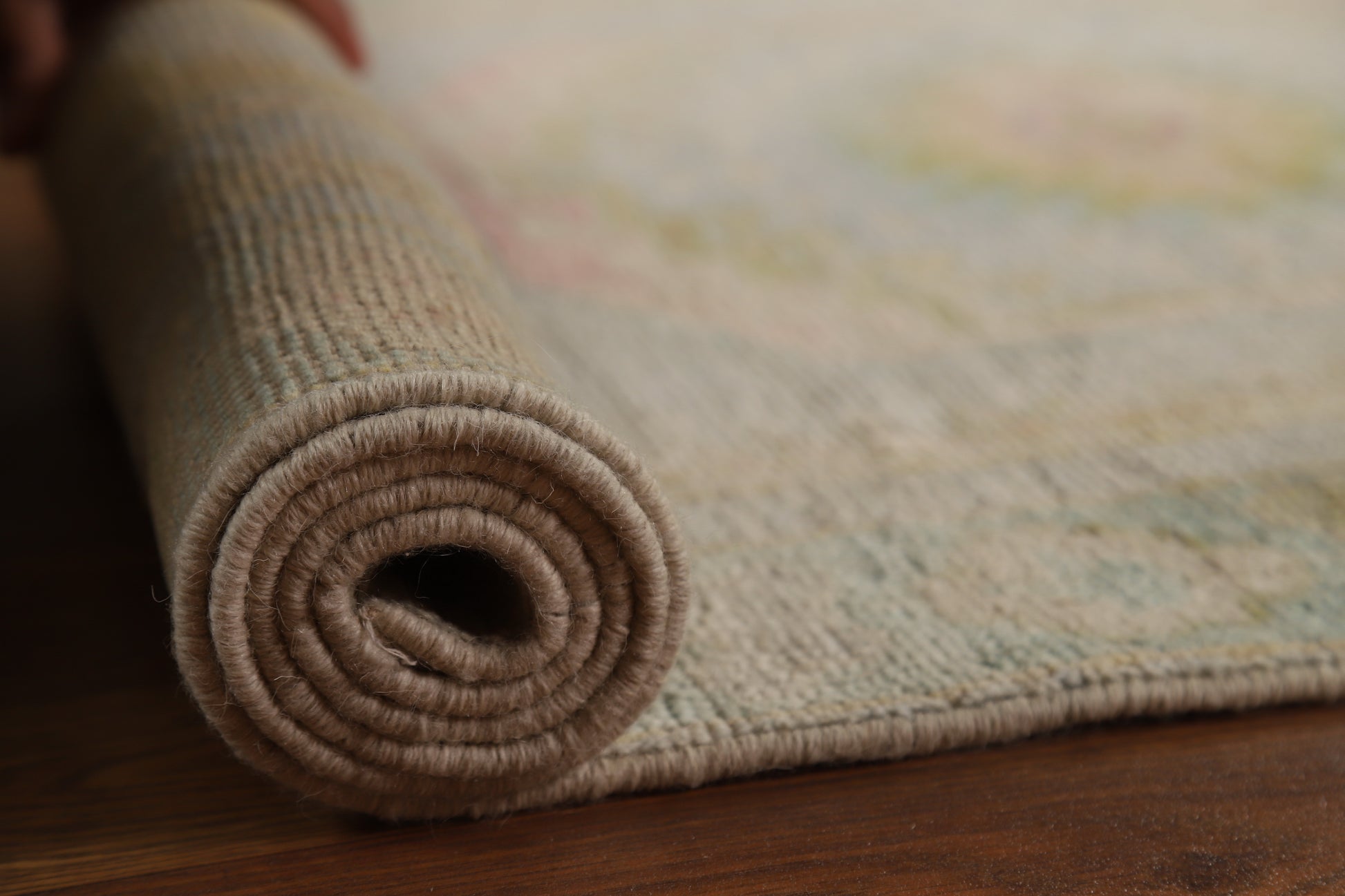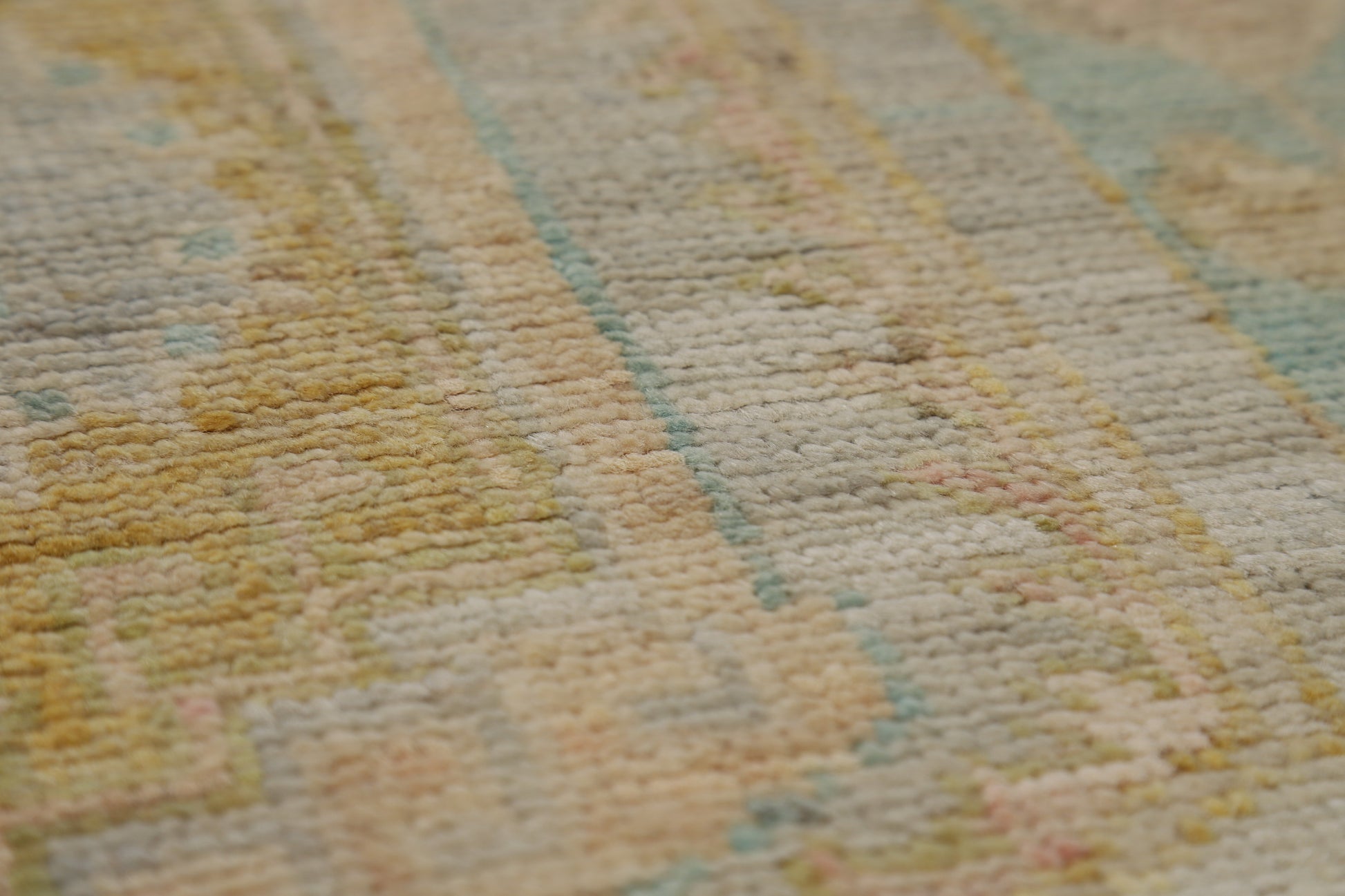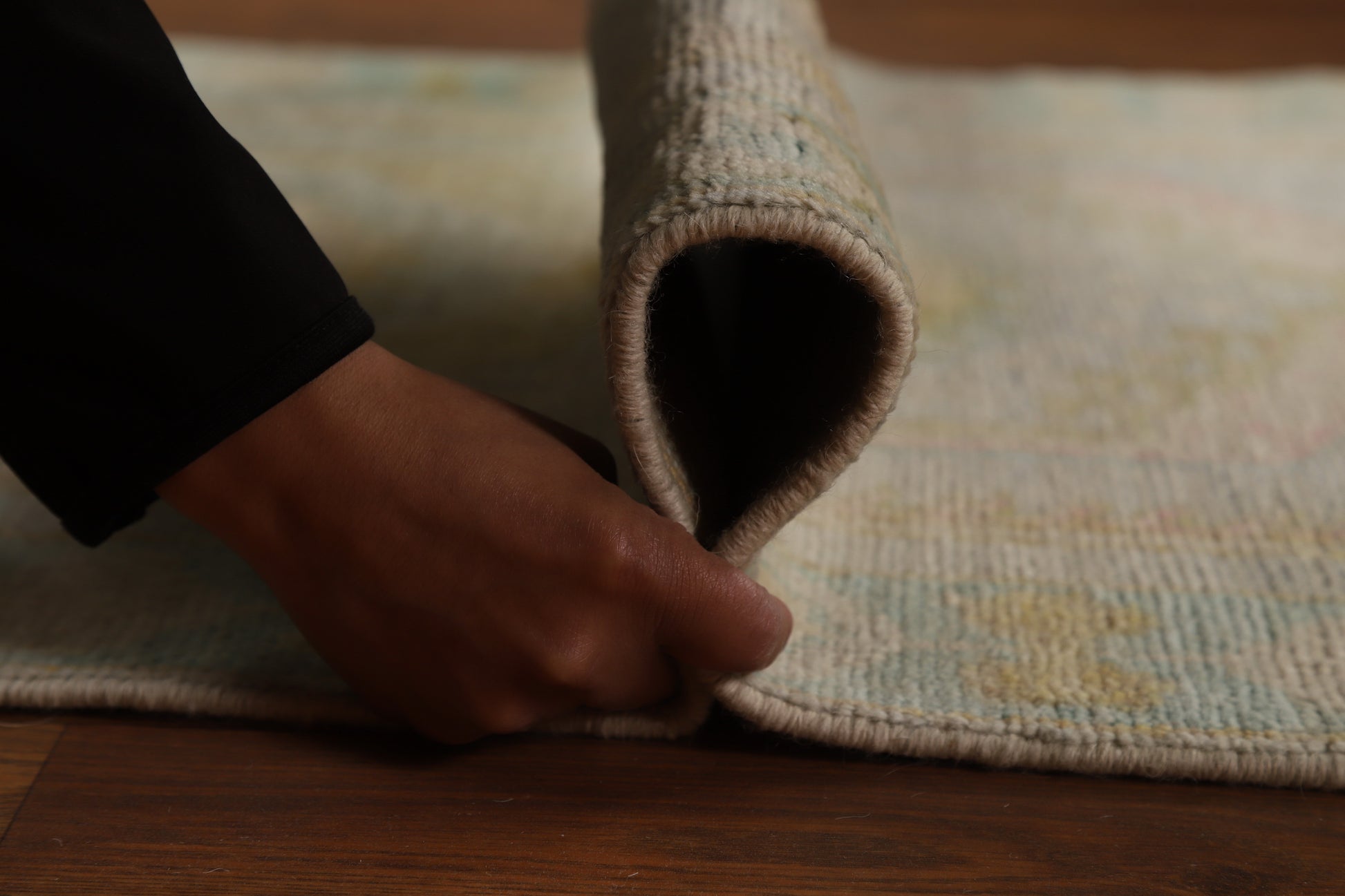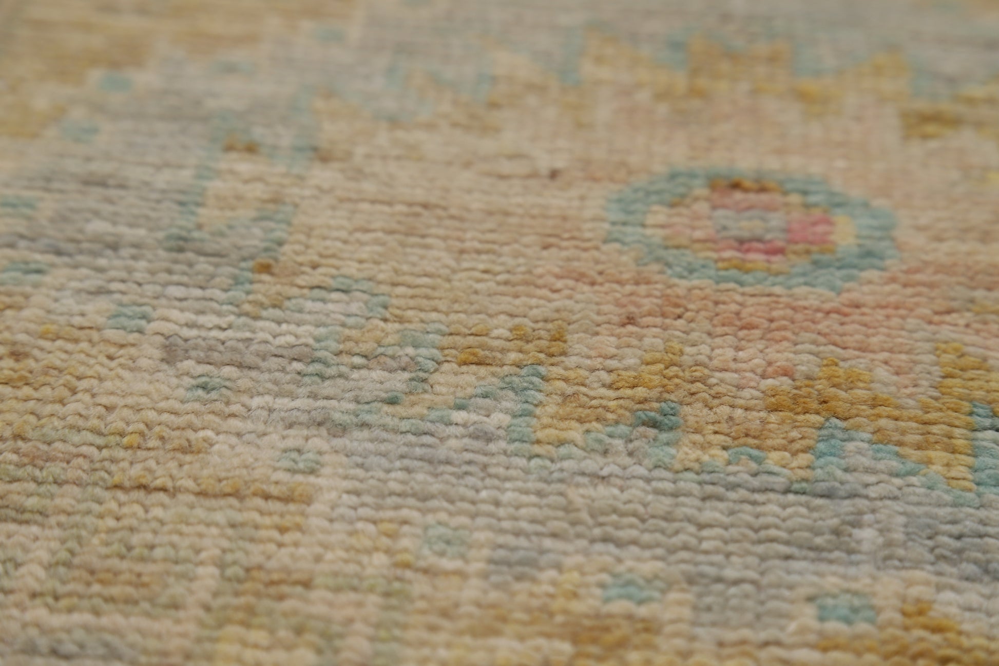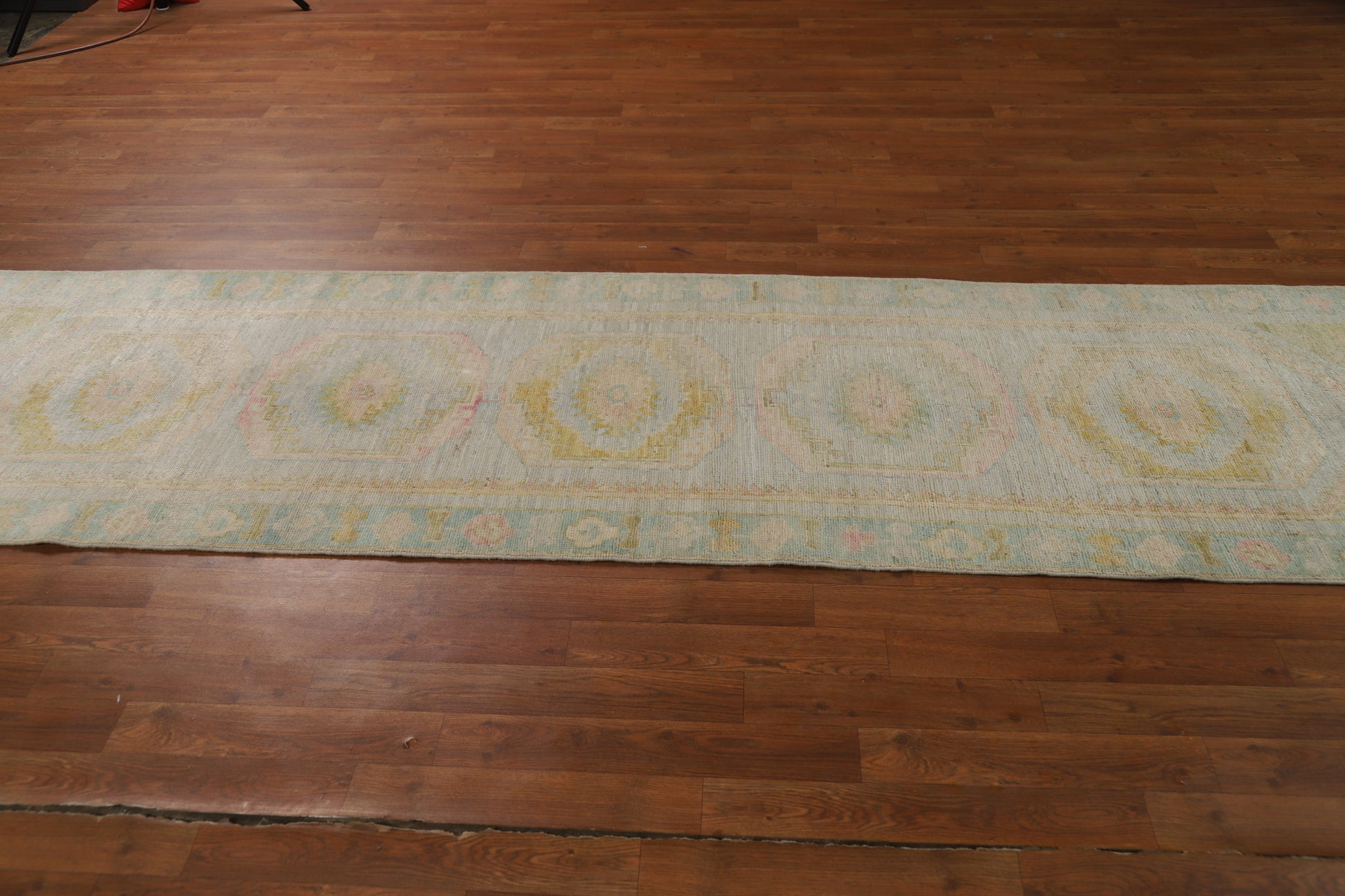 Vegetable Dye Geometric Oushak Turkish Runner Rug 3x12