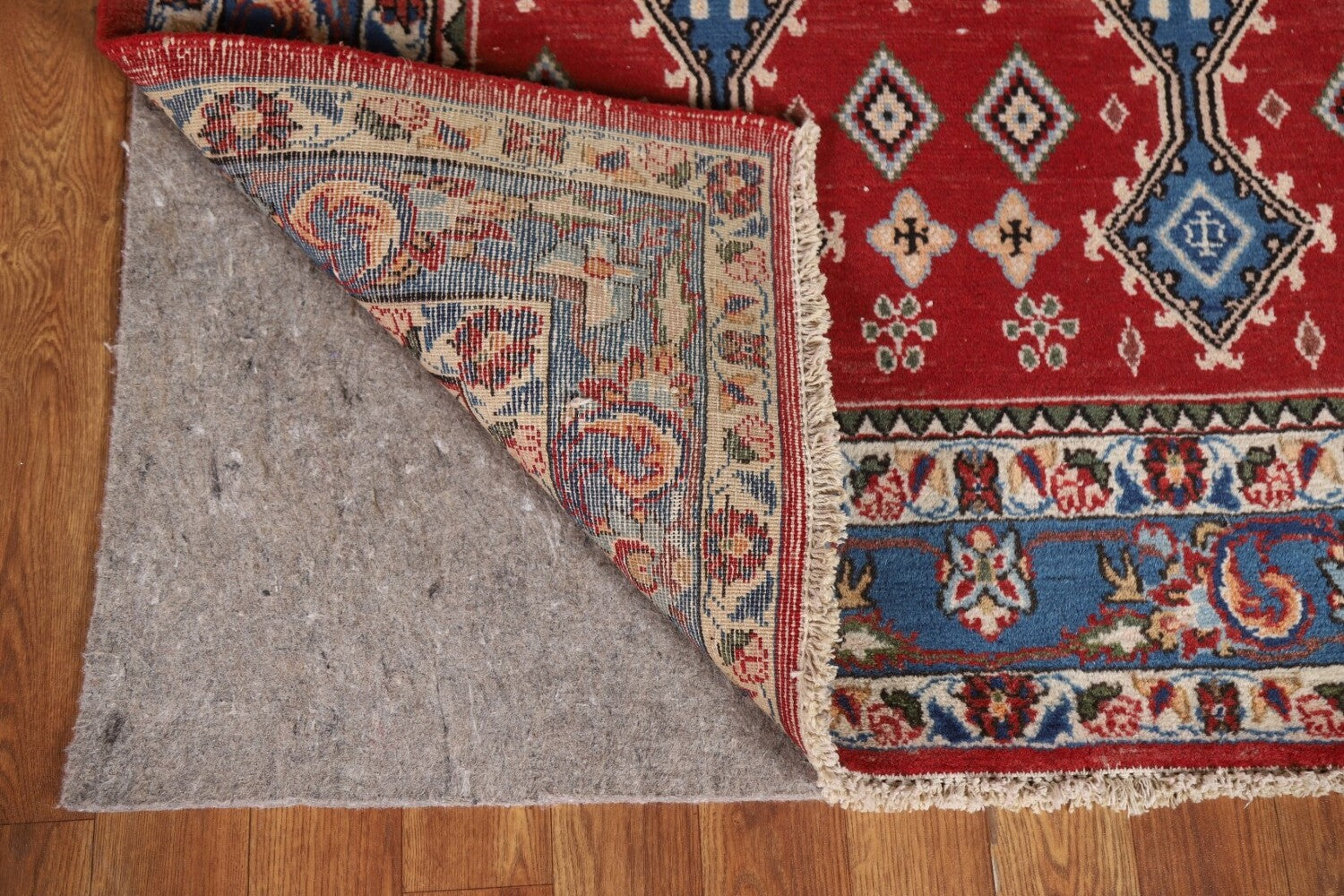 A Beautiful Genuine Persia ( Persia ) Sarouk rug is Hand Knotted by skillful weavers in Persia ( Persia ) with 100% Wool Material. This rug is in Very Good ( Low Pile ) condition. dimensions are 10' 6'' X 3' 6'' in foot and 320 X 107 in centimeter. the primary color is Red.