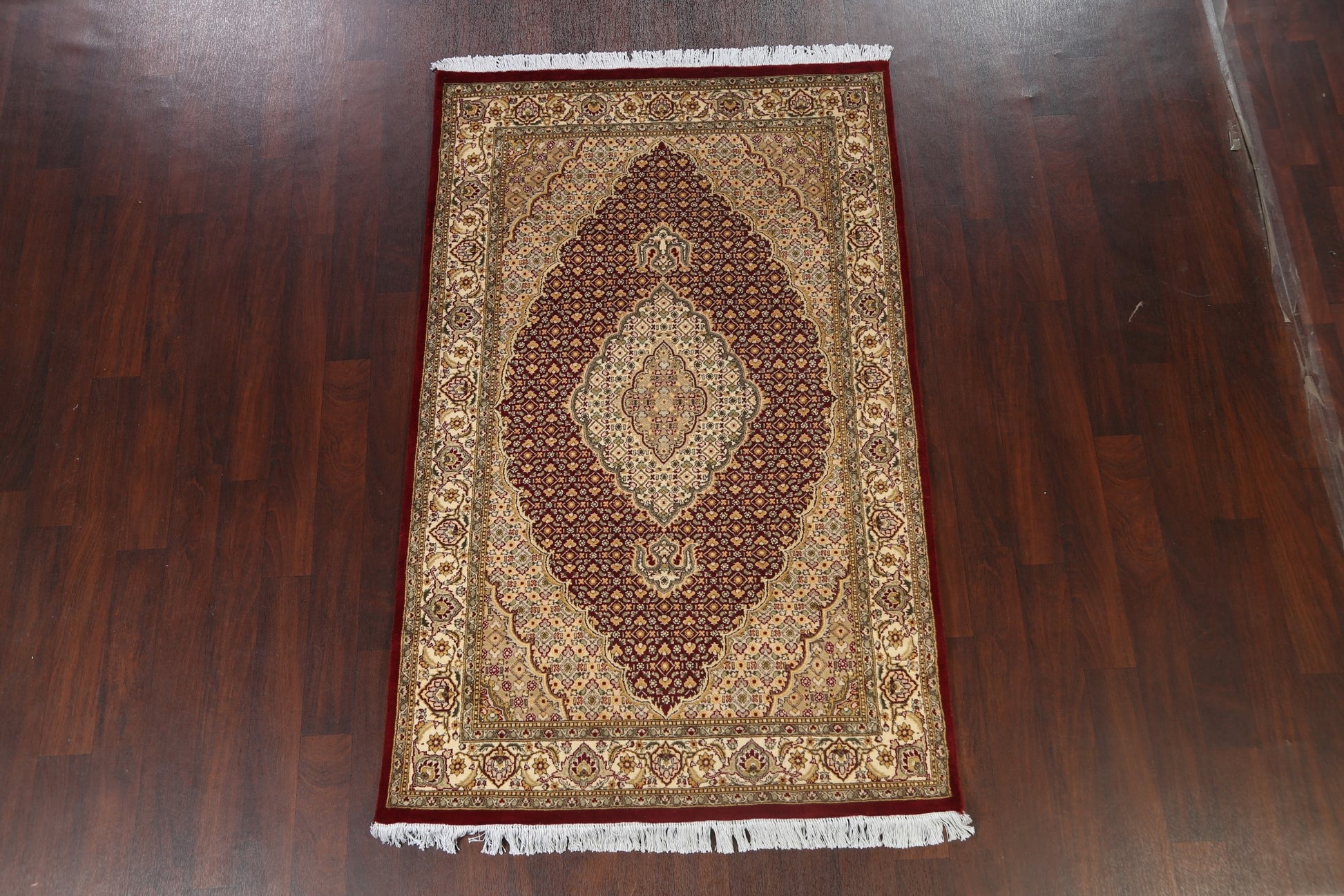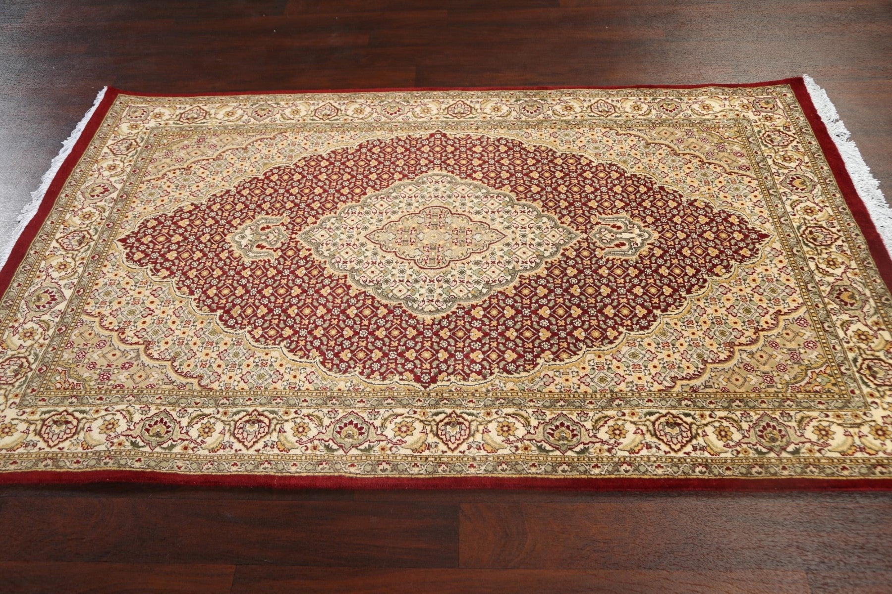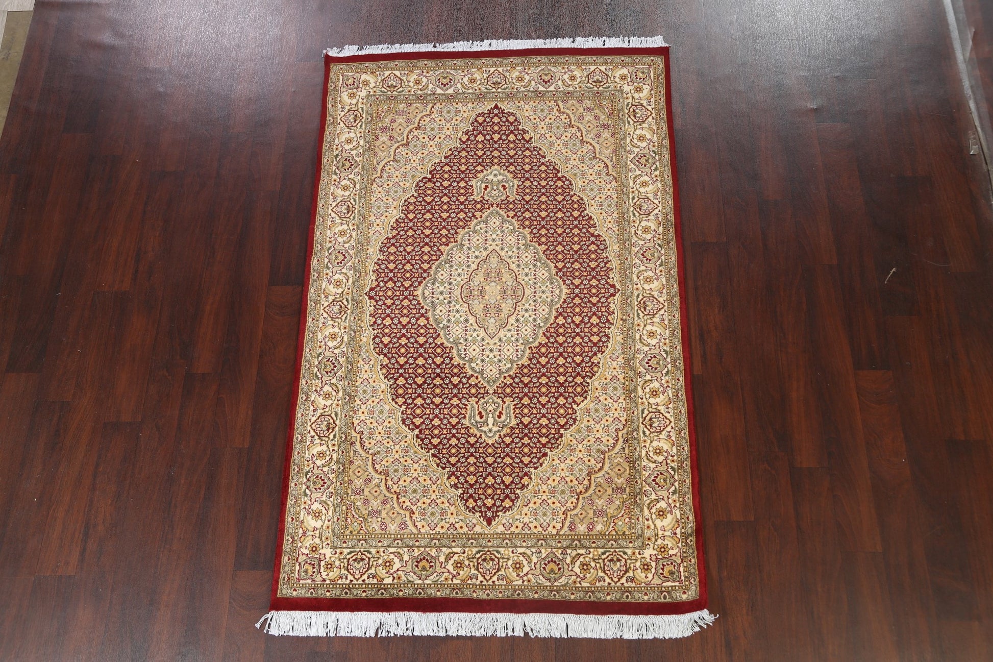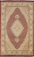 A Beautiful Genuine Pakistan Tabriz rug is Hand Knotted by skillful weavers in Pakistan with Wool & Silk Material. This rug is in New, First Quality condition. dimensions are 7' 0'' X 4' 4'' in foot and 213 X 132 in centimeter. the primary color is Red.