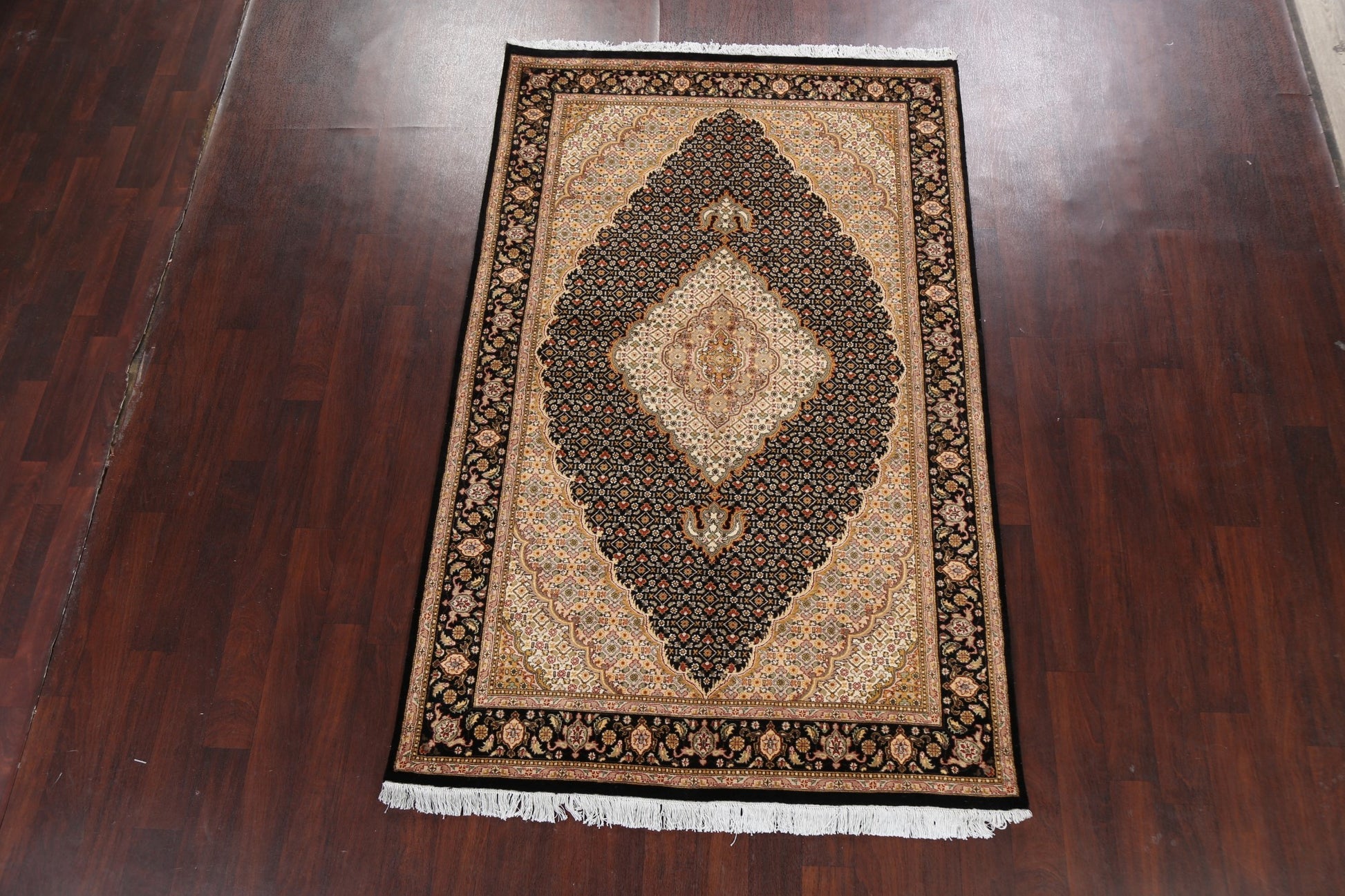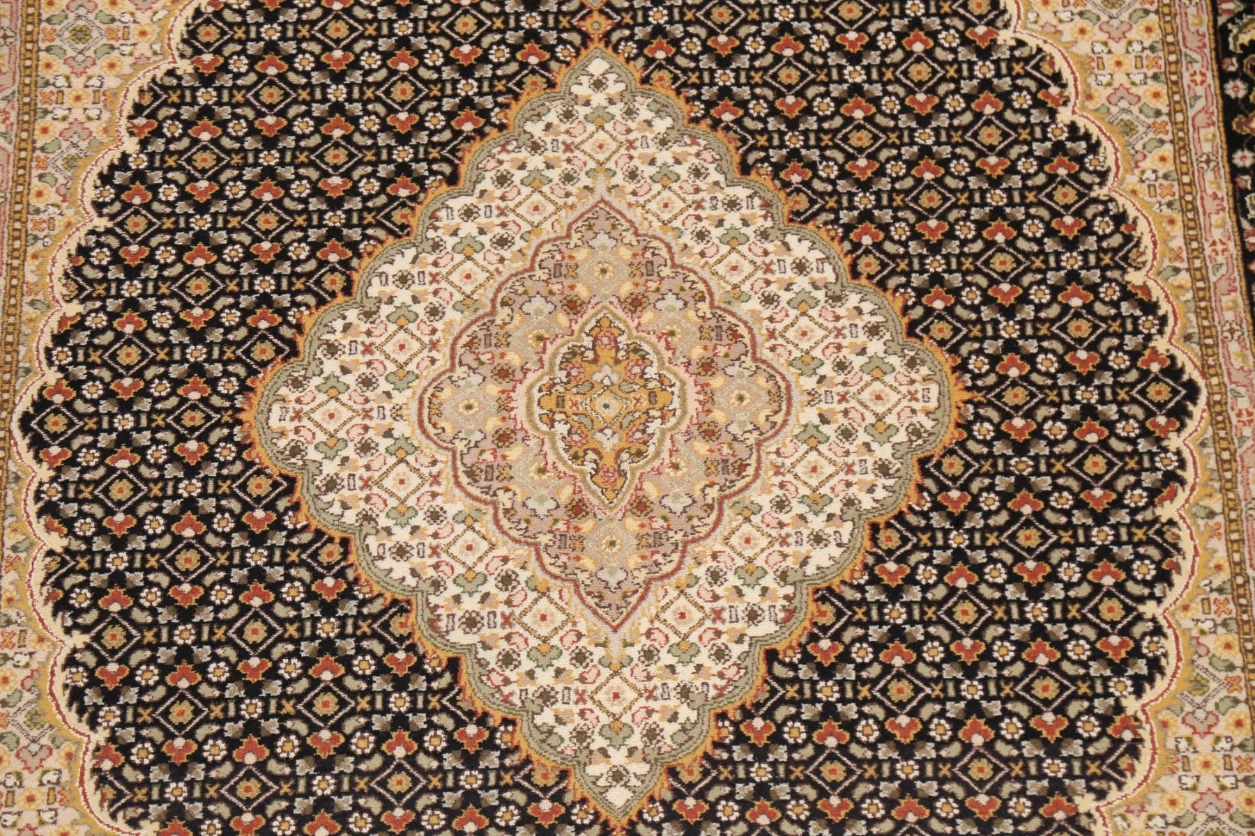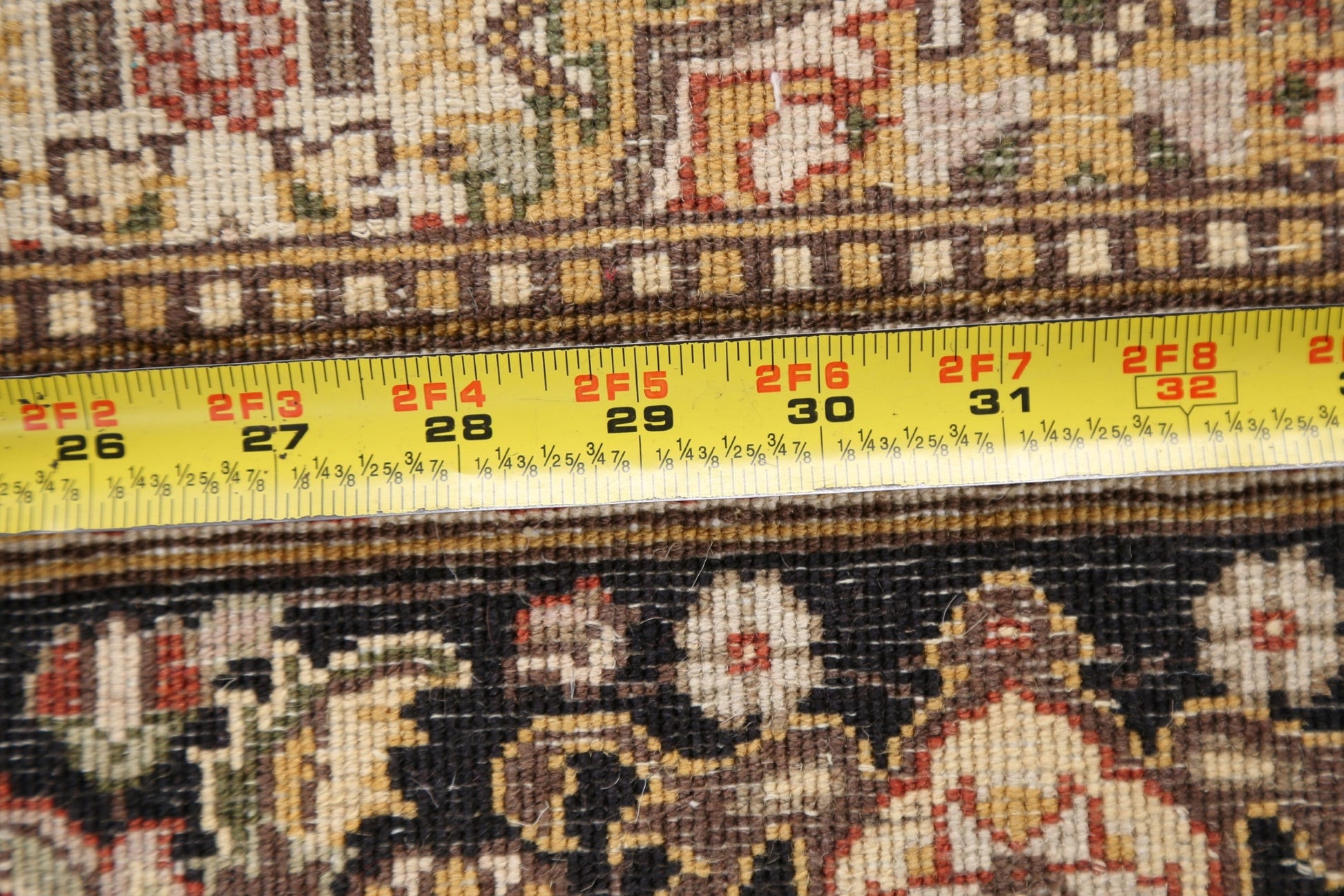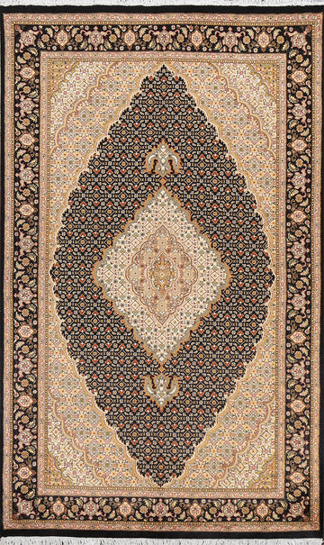 A Beautiful Genuine Pakistan Tabriz rug is Hand Knotted by skillful weavers in Pakistan with 100% Wool Material. This rug is in New, First Quality condition. dimensions are 8' 1'' X 5' 1'' in foot and 246 X 155 in centimeter. the primary color is Black.