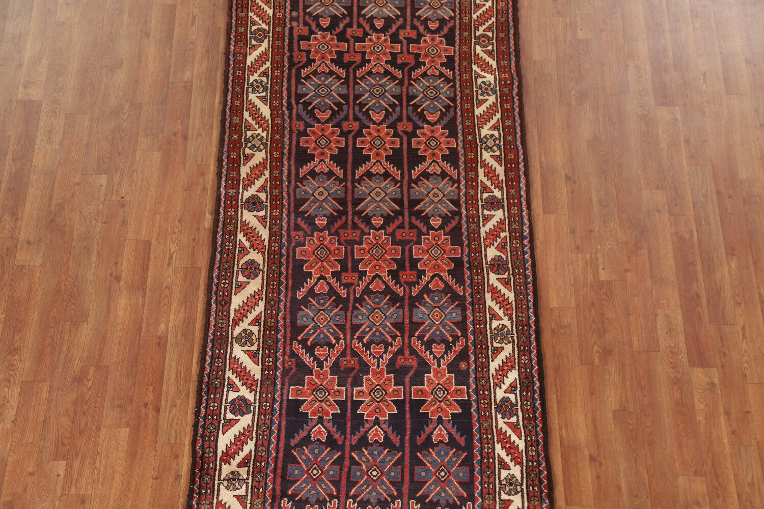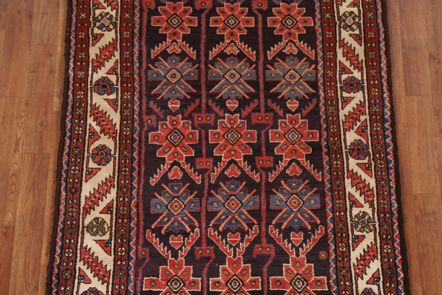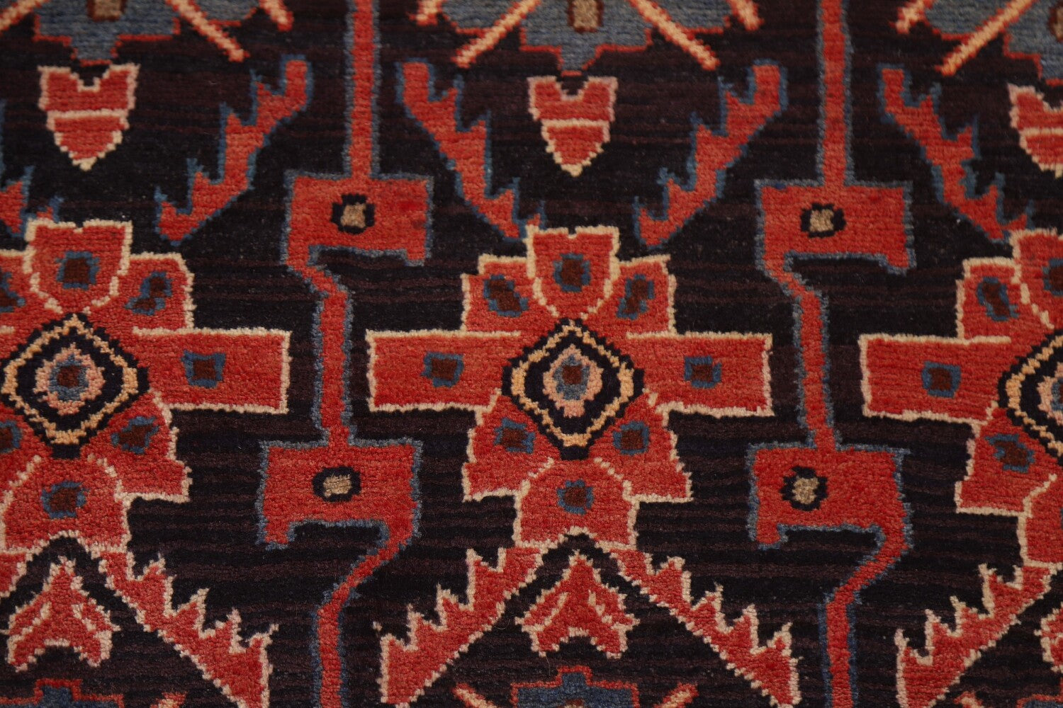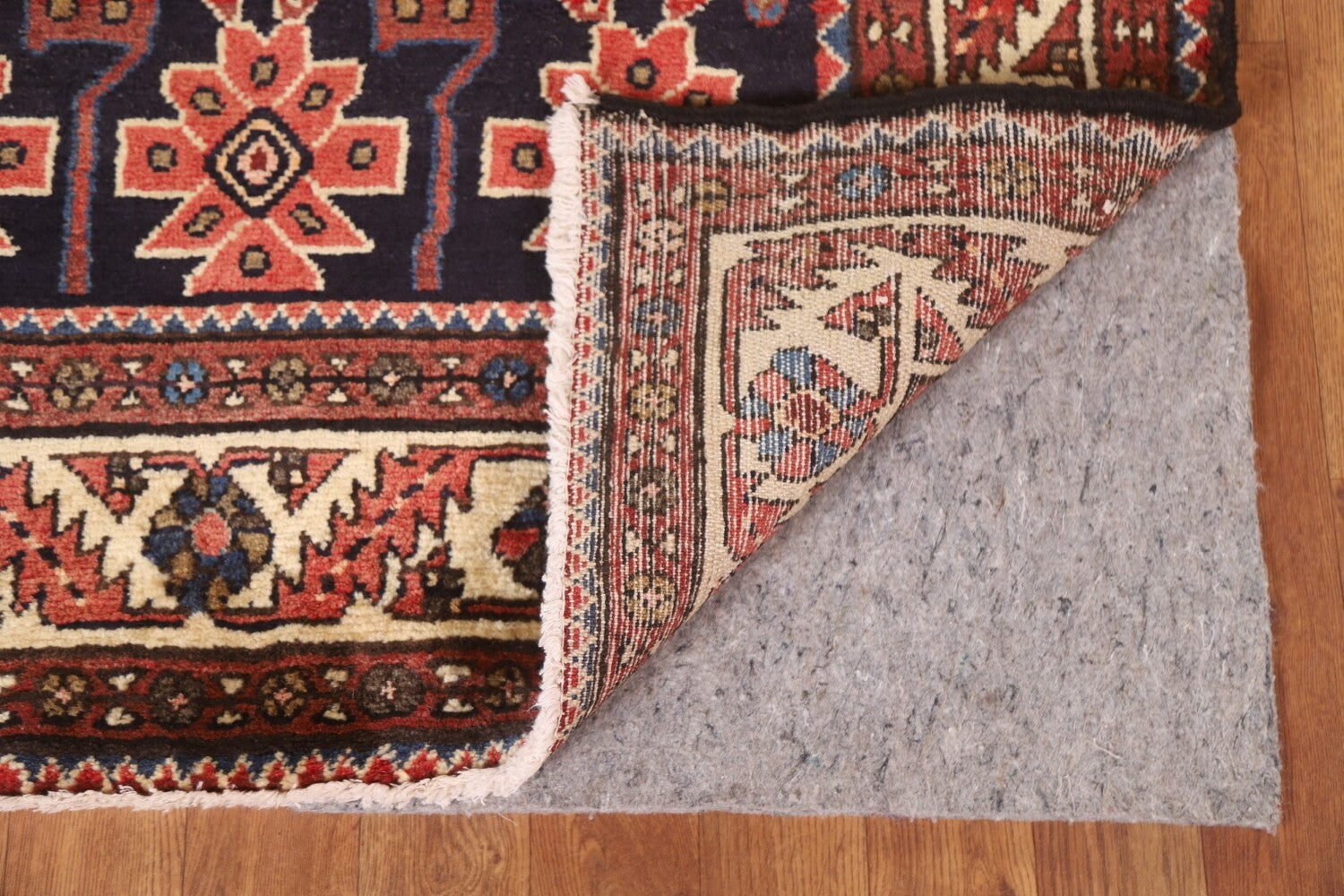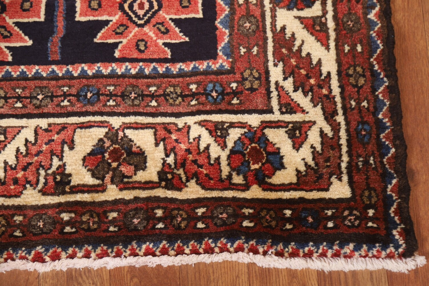 A Beautiful Genuine Persia ( Persia ) Gharajeh rug is Hand Knotted by skillful weavers in Persia ( Persia ) with 100% Wool Material. This rug is in Very Good condition. dimensions are 9' 4'' X 3' 5'' in foot and 284 X 104 in centimeter. the primary color is Navy Blue & Blues.