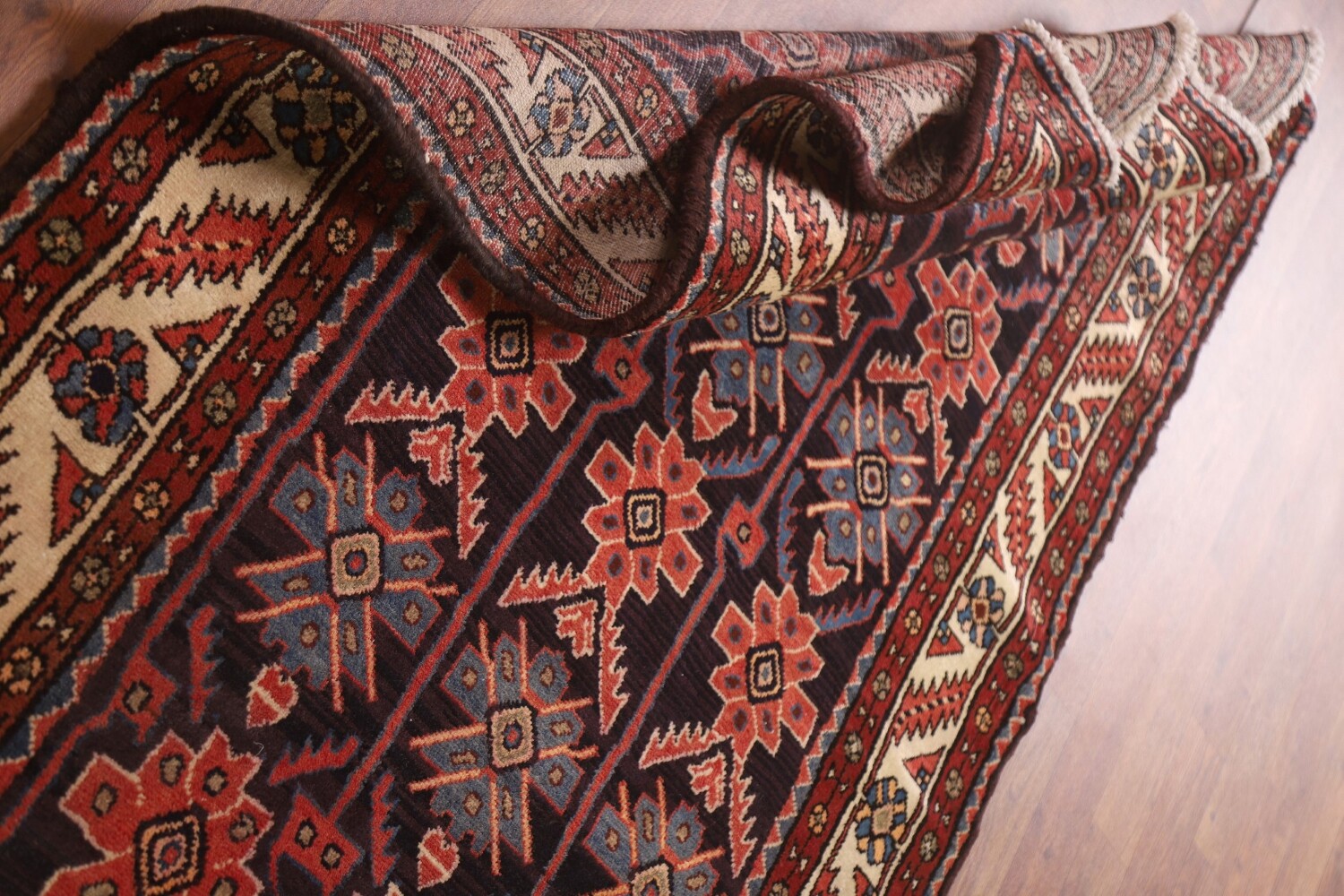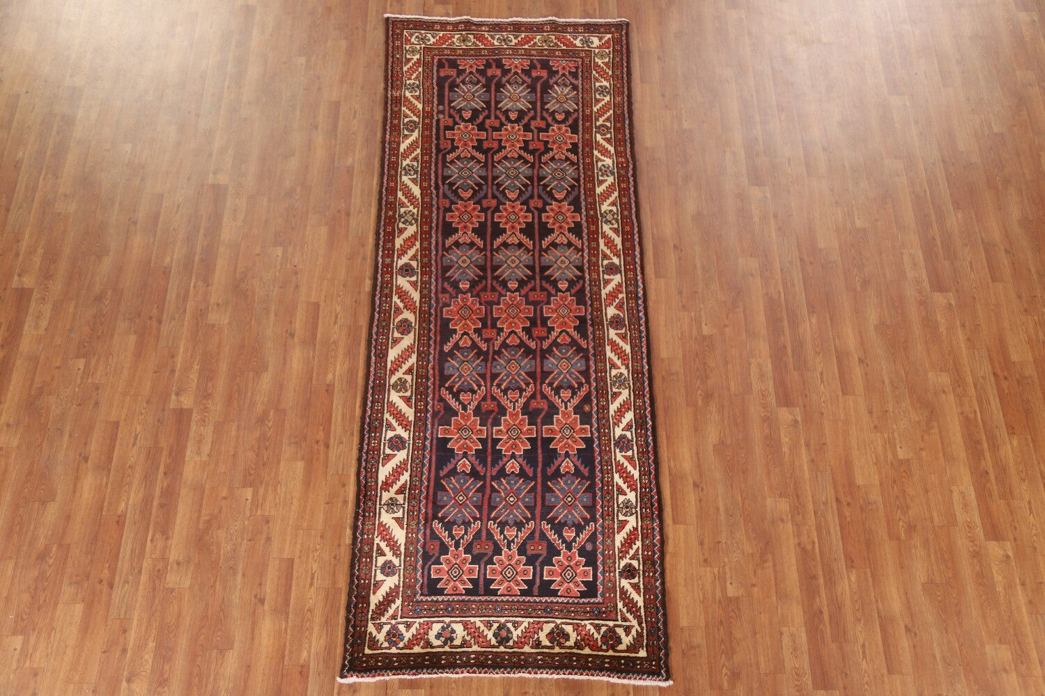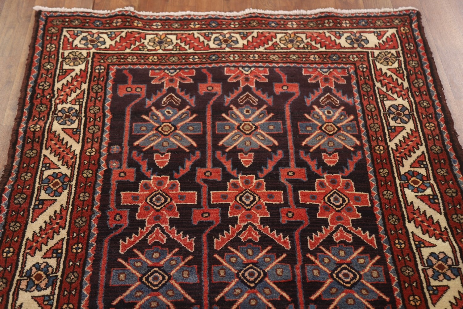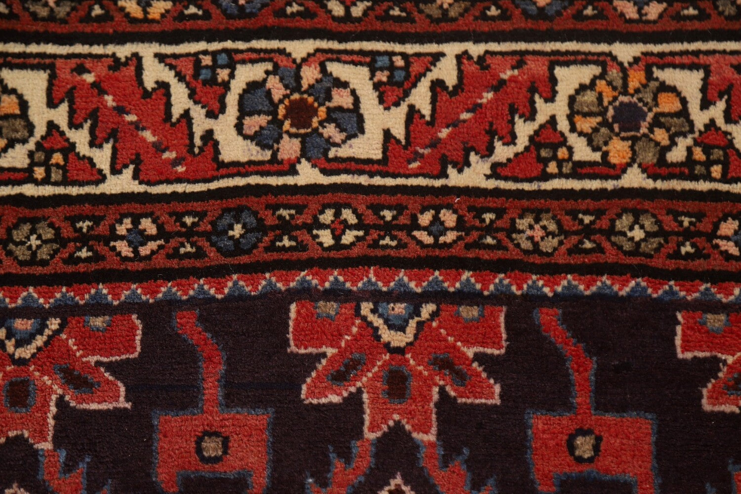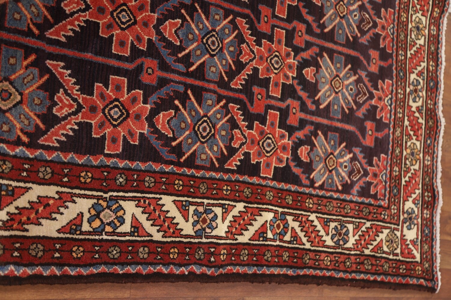 A Beautiful Genuine Persia ( Persia ) Gharajeh rug is Hand Knotted by skillful weavers in Persia ( Persia ) with 100% Wool Material. This rug is in Very Good condition. dimensions are 9' 4'' X 3' 5'' in foot and 284 X 104 in centimeter. the primary color is Navy Blue & Blues.