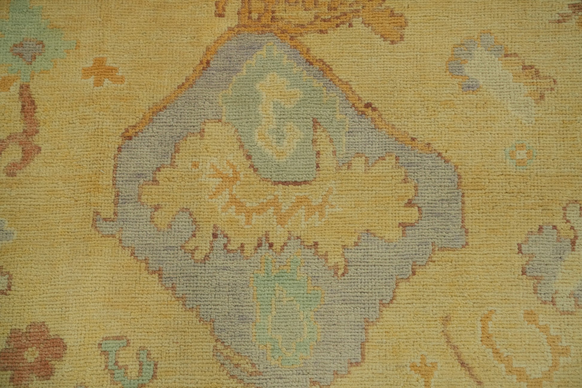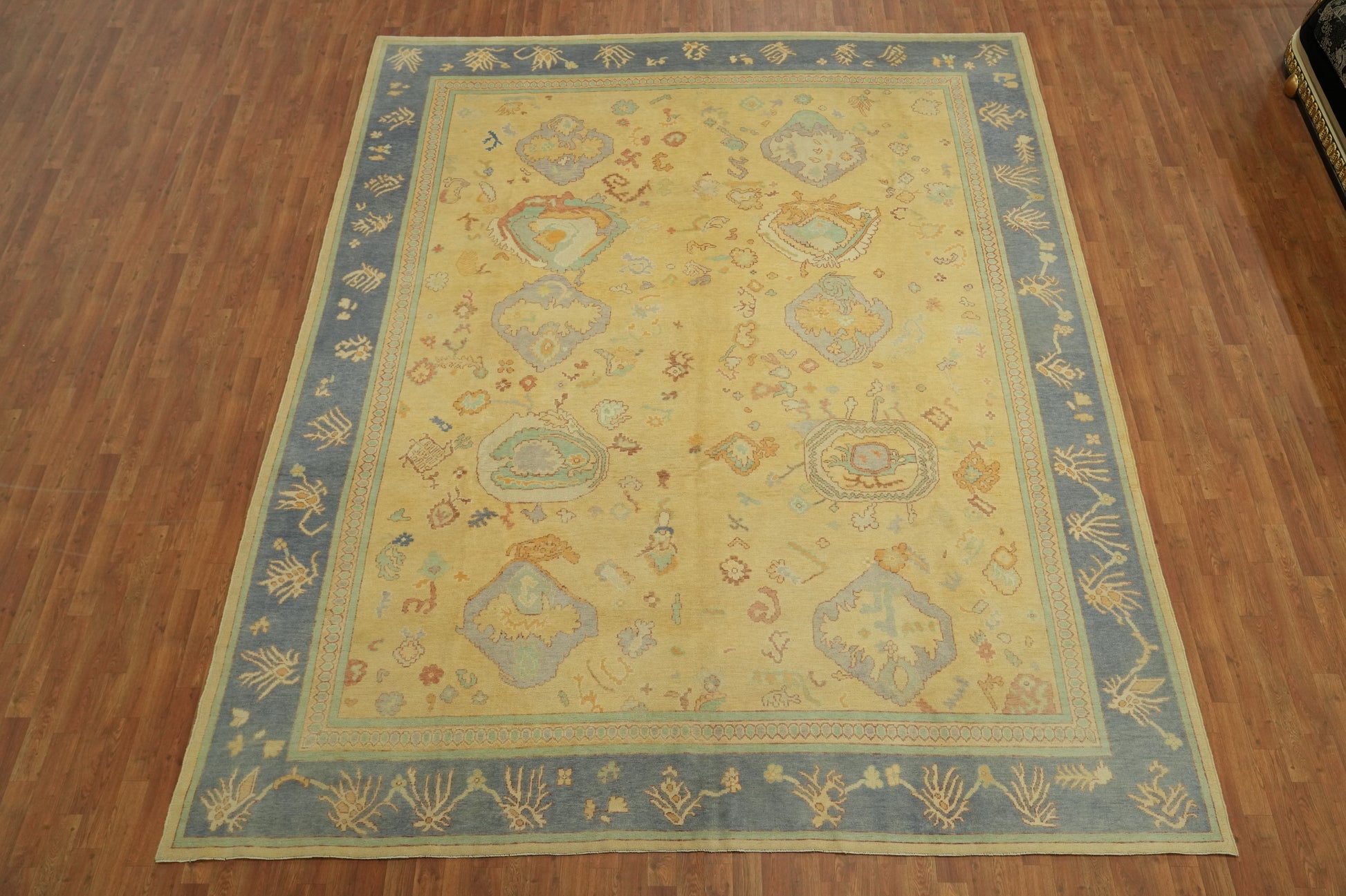 A Beautiful Genuine Turkey Oushak rug is Hand Knotted by skillful weavers in Turkey with 100% Wool Material. This rug is in New, First Quality condition. dimensions are 12' 7'' X 10' 2'' in foot and 384 X 310 in centimeter. the primary color is Yellow & Gold.