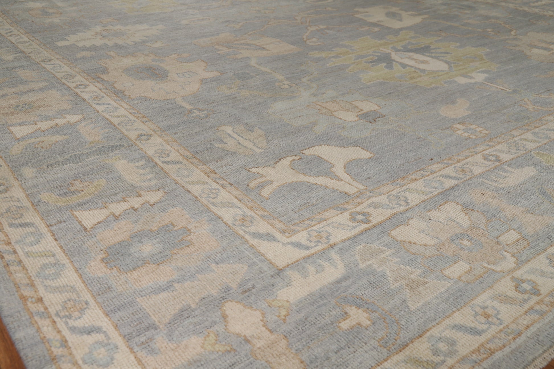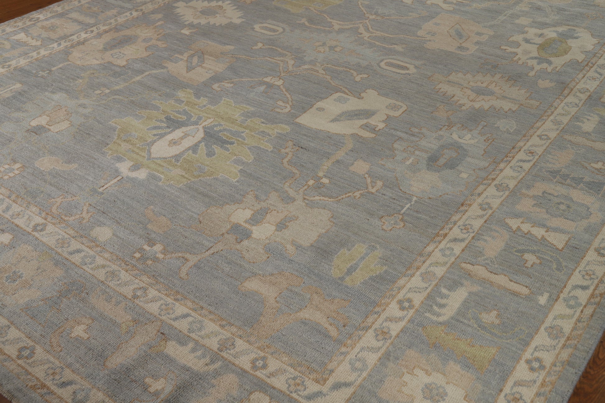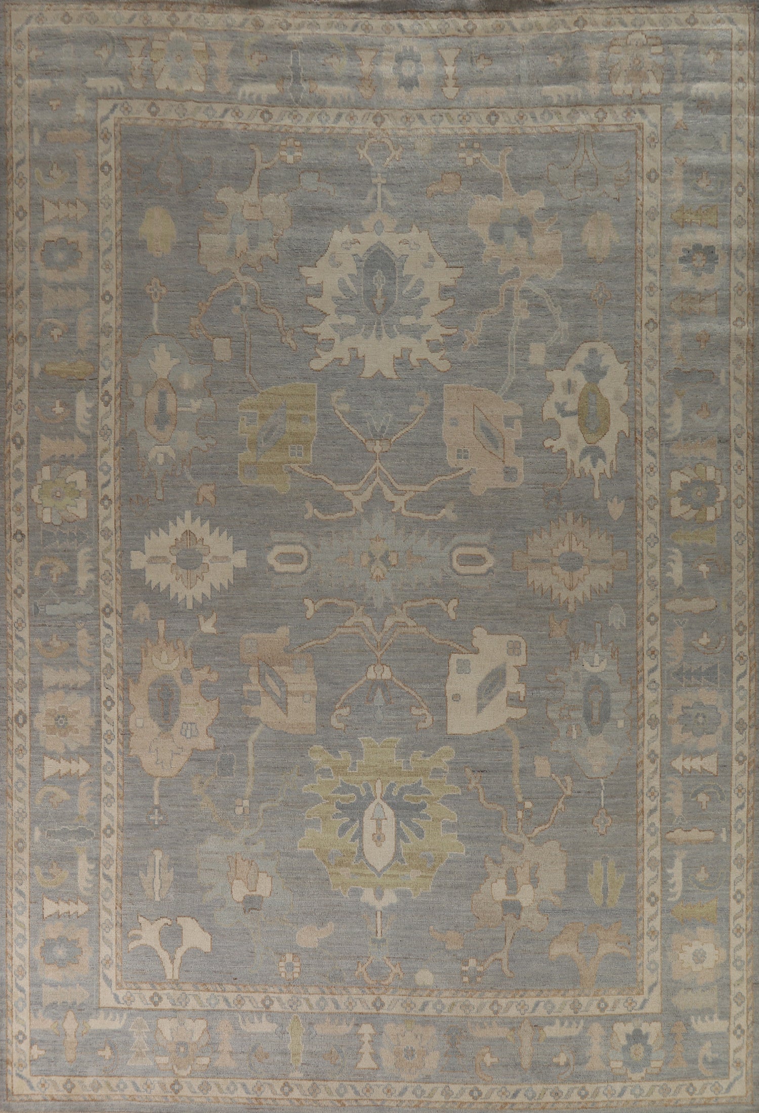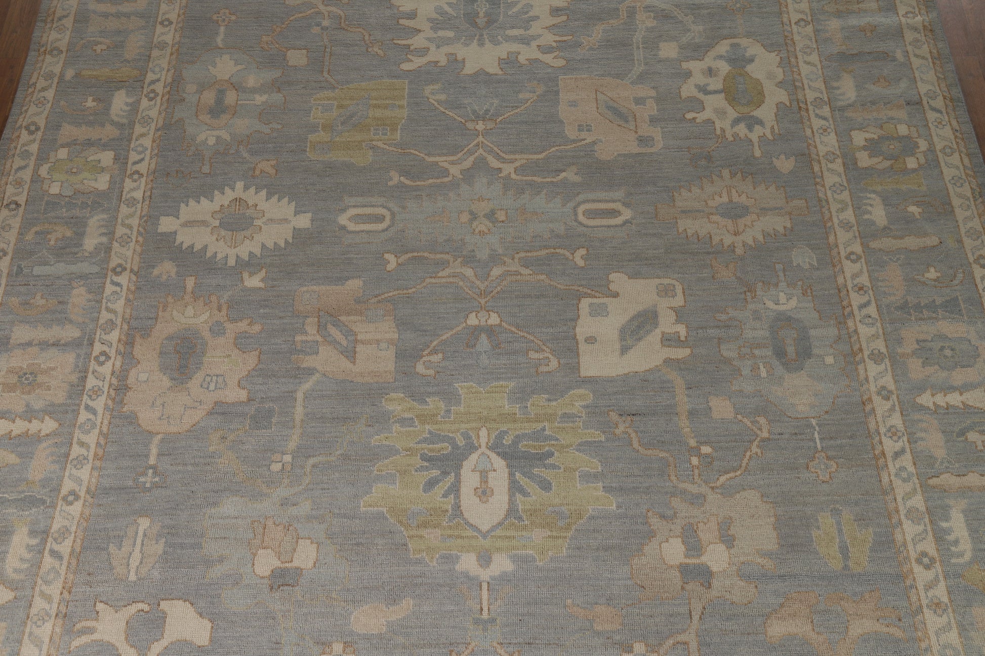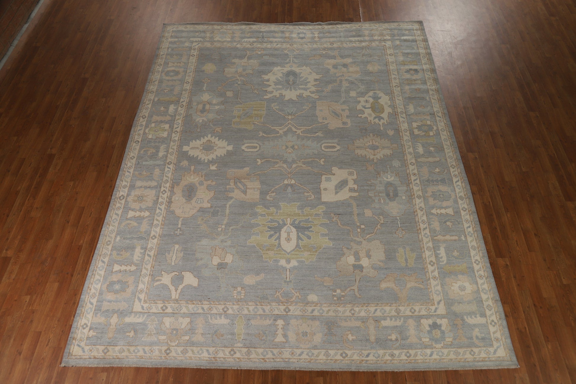 Vegetable Dye Gray Blue Oushak Turkish Area Rug 9x12