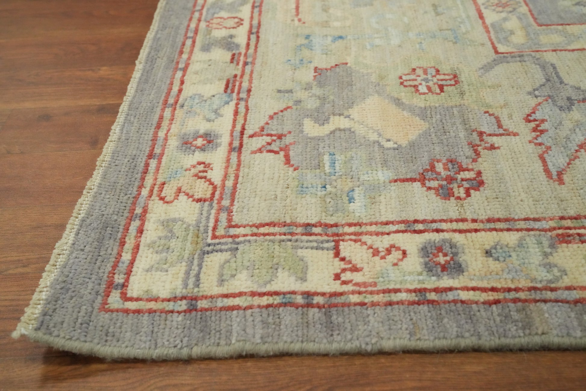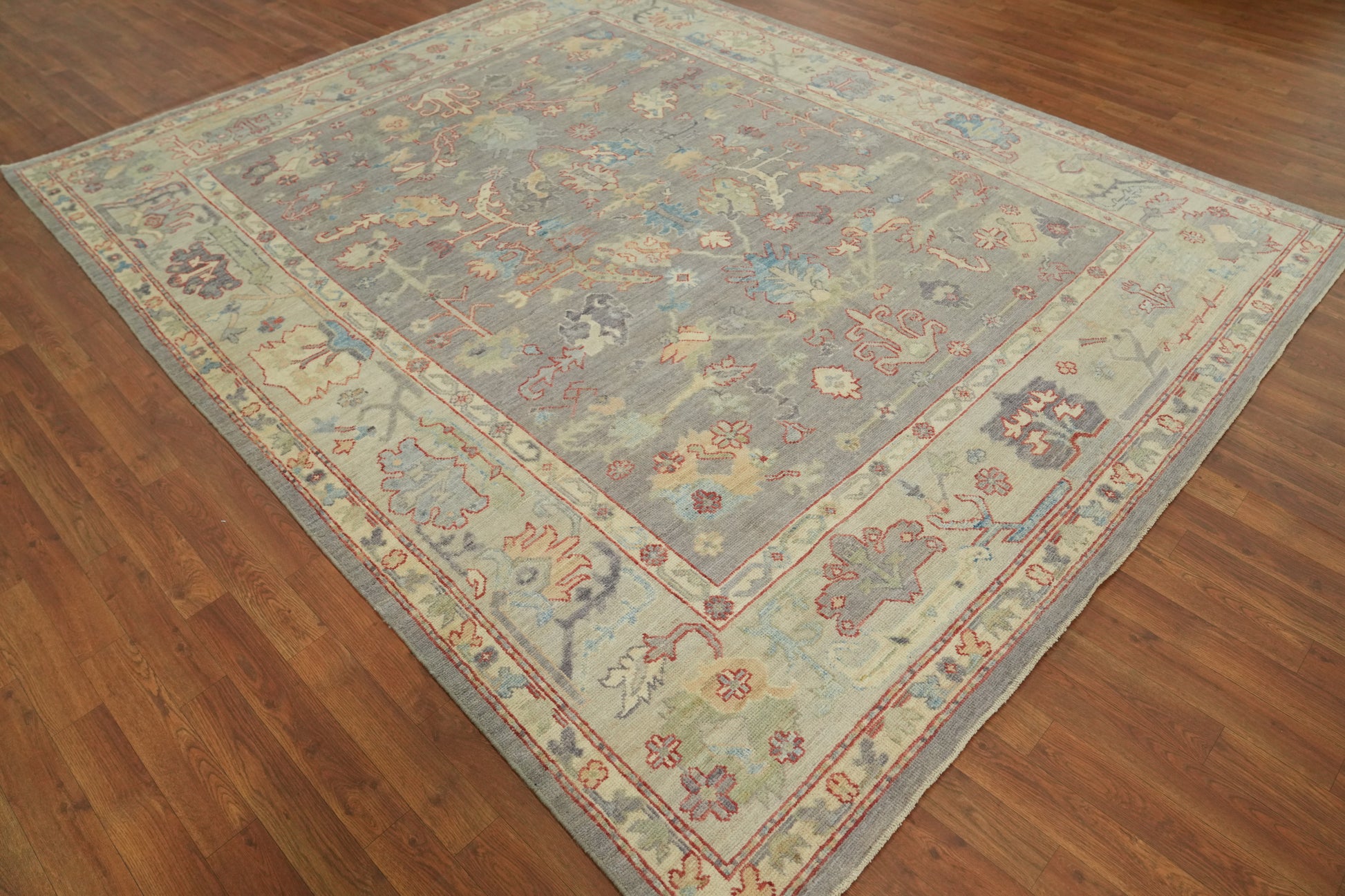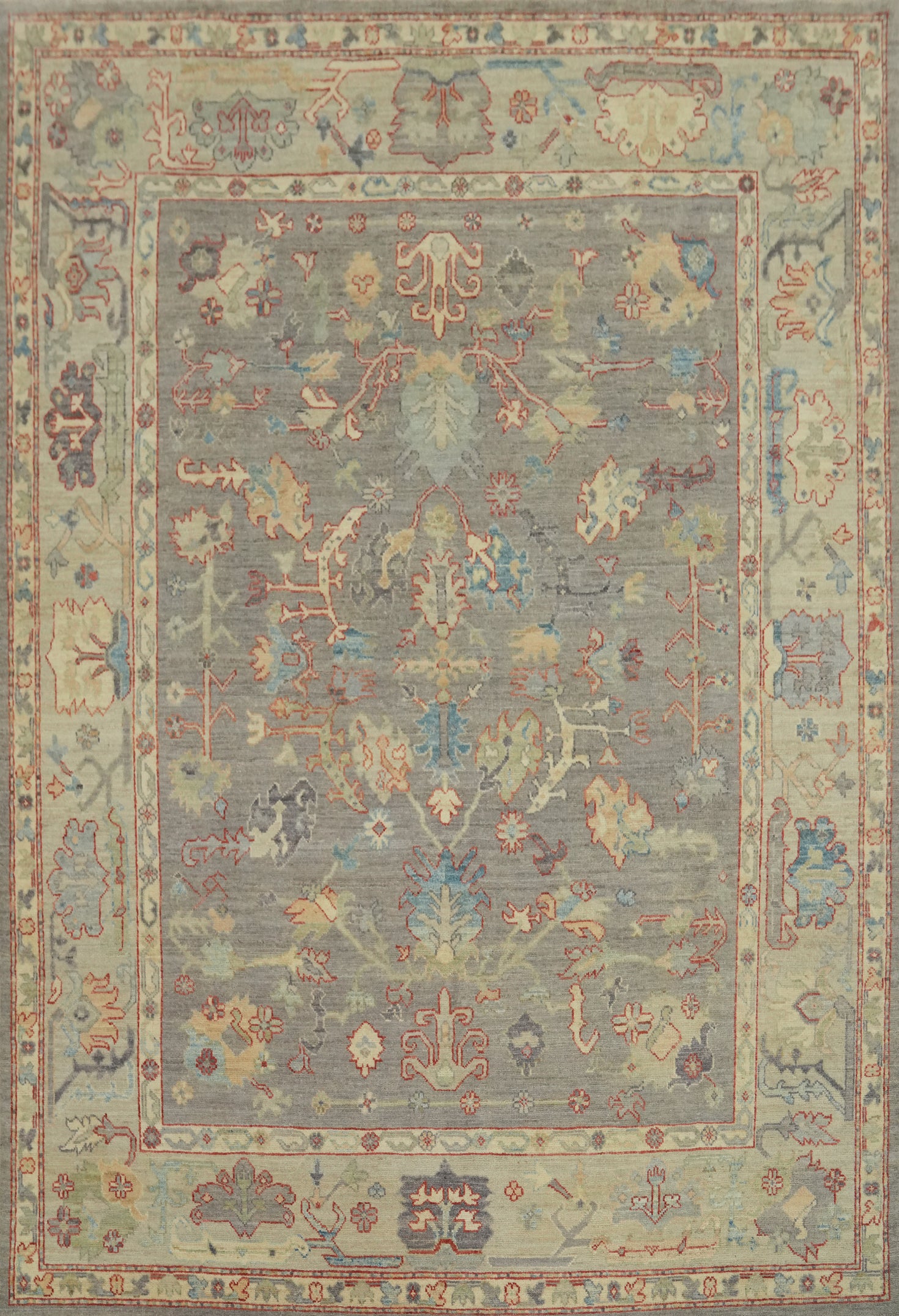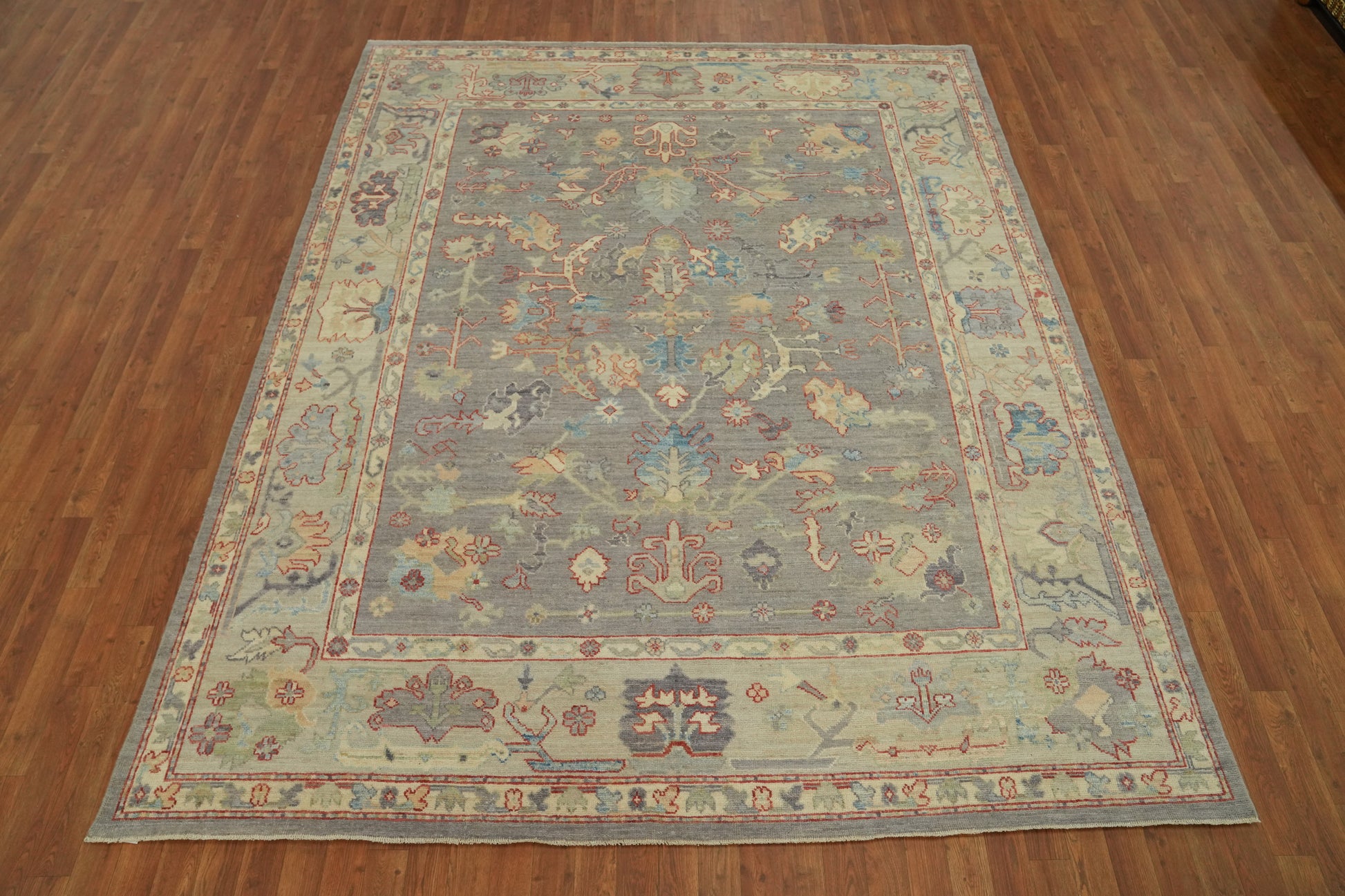 A Beautiful Genuine Turkey Oushak rug is Hand Knotted by skillful weavers in Turkey with 100% Wool Material. This rug is in New, First Quality condition. dimensions are 9' 7'' X 7' 9'' in foot and 292 X 236 in centimeter. the primary color is Greys & Charcoal.