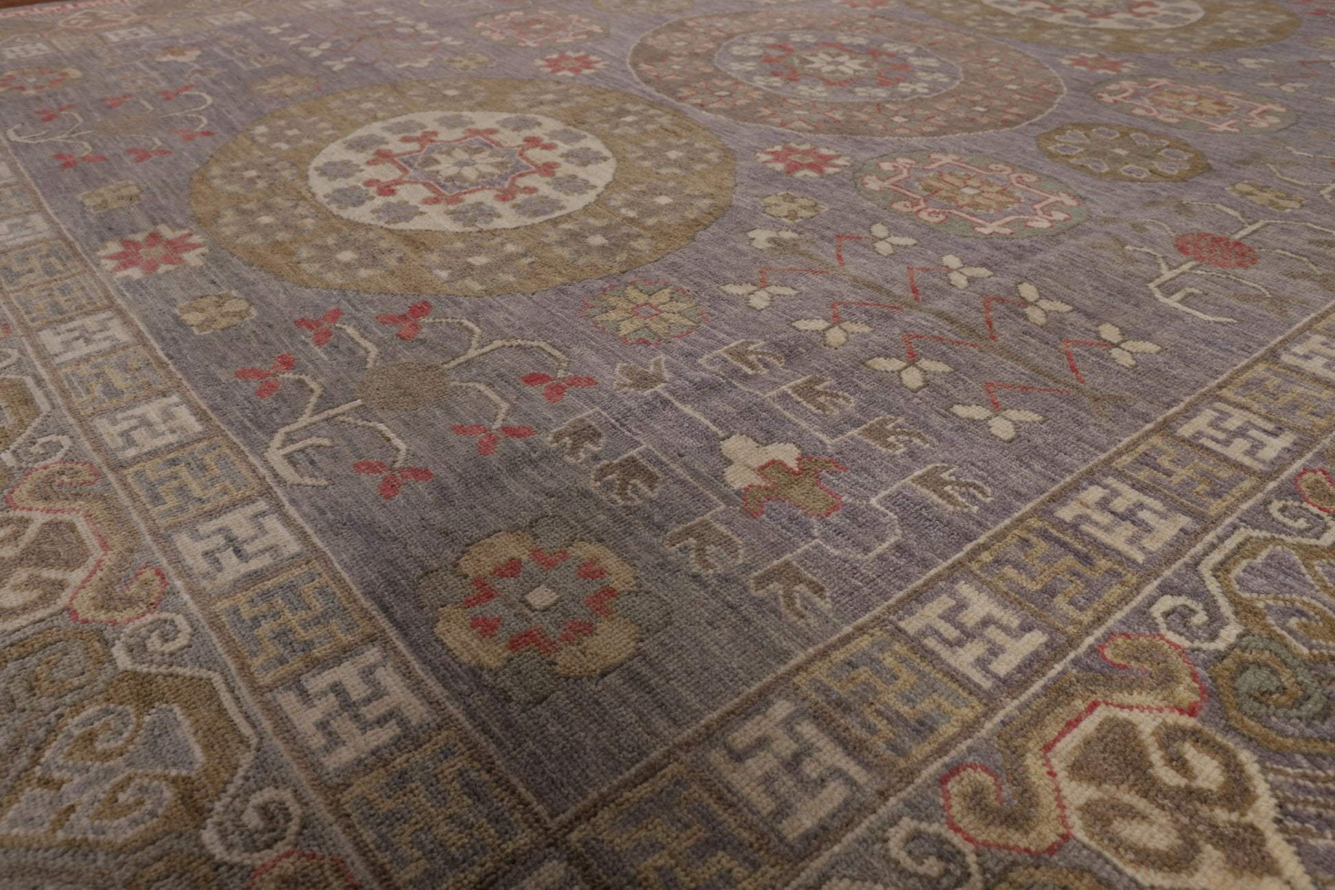 A Beautiful Genuine Turkey Oushak rug is Hand Knotted by skillful weavers in Turkey with 100% Wool Material. This rug is in New, First Quality condition. dimensions are 9' 11'' X 8' 4'' in foot and 302 X 254 in centimeter. the primary color is Greys & Charcoal.