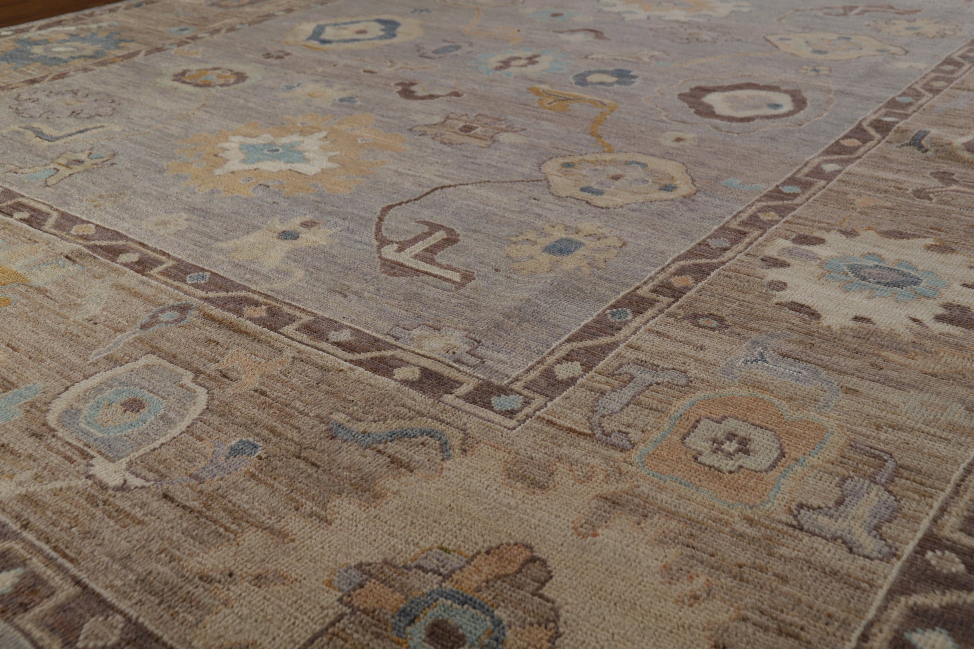 A Beautiful Genuine Turkey Oushak rug is Hand Knotted by skillful weavers in Turkey with 100% Wool Material. This rug is in New, First Quality condition. dimensions are 9' 11'' X 8' 2'' in foot and 302 X 249 in centimeter. the primary color is Greys & Charcoal.