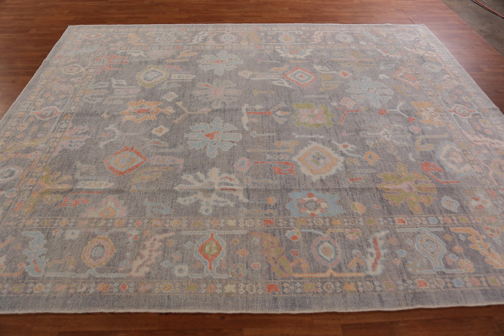 A Beautiful Genuine Turkey Oushak rug is Hand Knotted by skillful weavers in Turkey with 100% Wool Material. This rug is in New, First Quality condition. dimensions are 9' 11'' X 8' 0'' in foot and 302 X 244 in centimeter. the primary color is Greys & Charcoal.