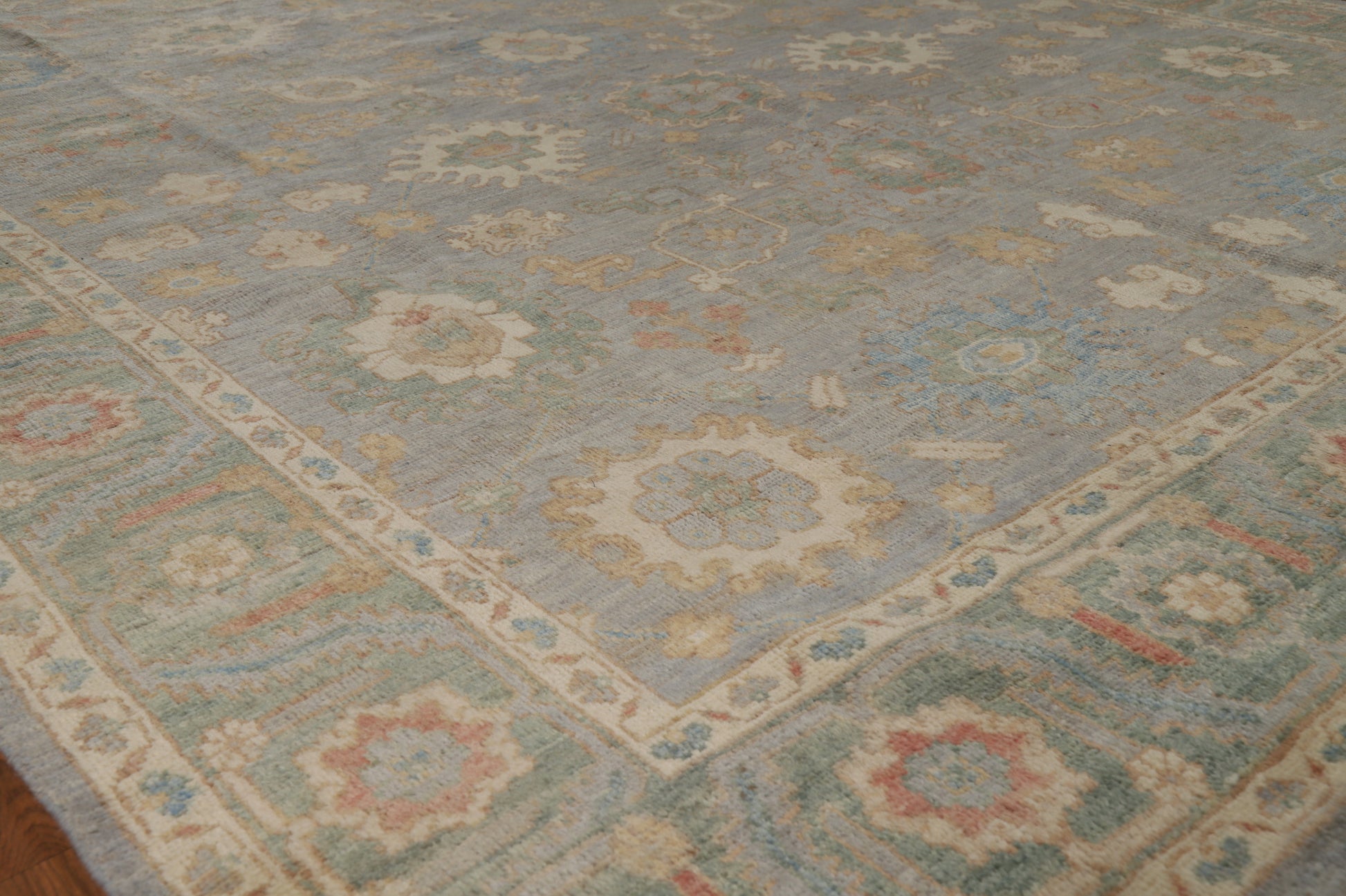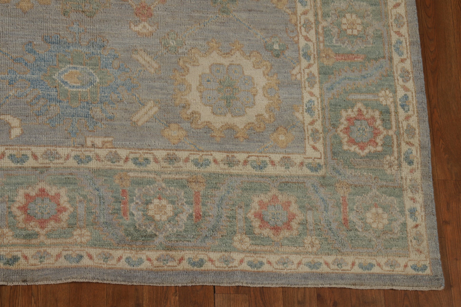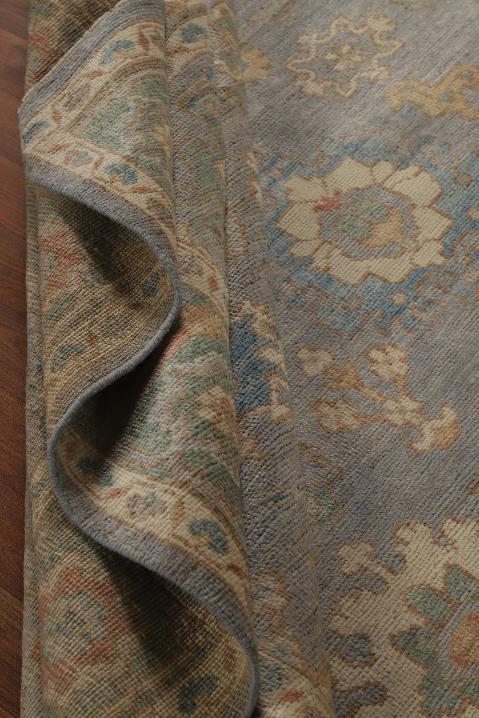A Beautiful Genuine Turkey Oushak rug is Hand Knotted by skillful weavers in Turkey with 100% Wool Material. This rug is in New, First Quality condition. dimensions are 9' 11'' X 8' 0'' in foot and 302 X 244 in centimeter. the primary color is Greys & Charcoal.