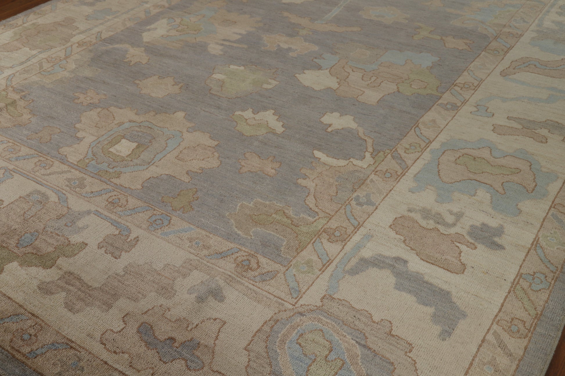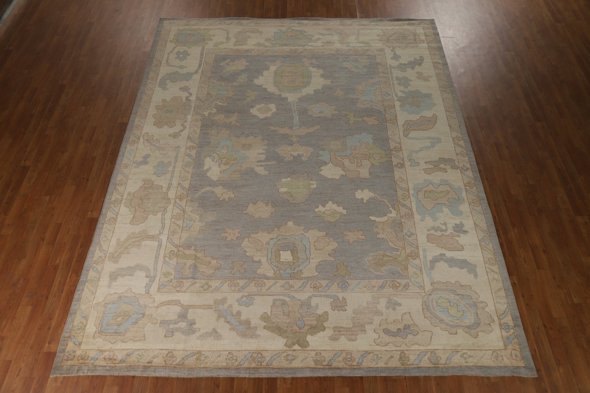 Vegetable Dye Gray Oushak Turkish Area Rug 9x12