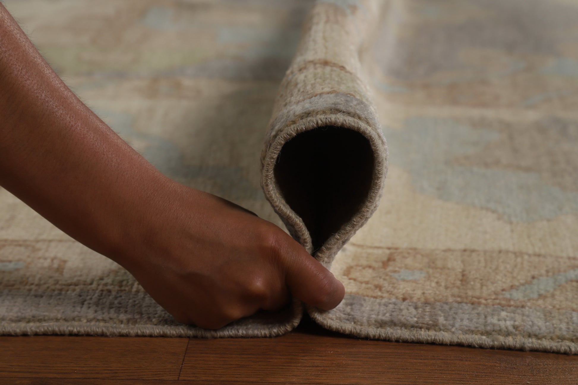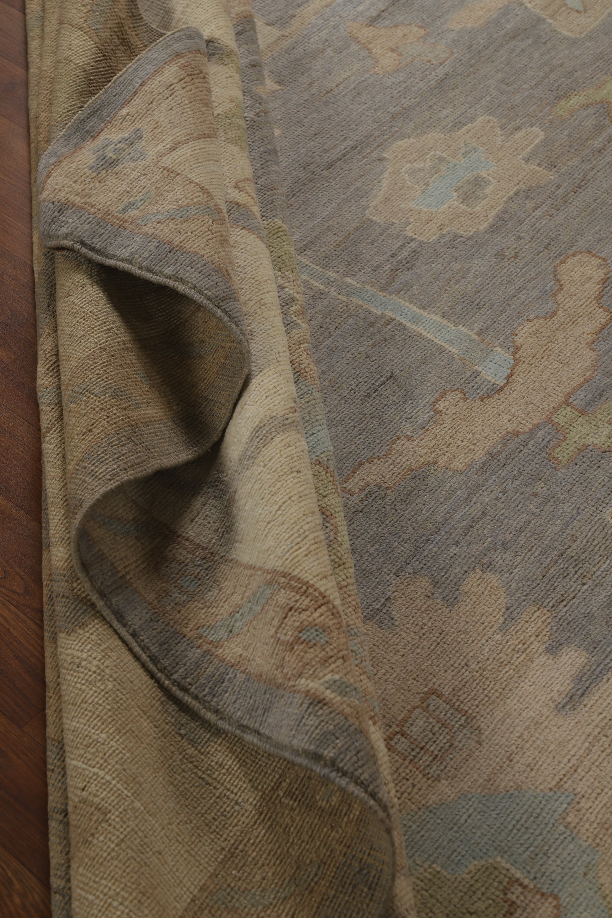A Beautiful Genuine Turkey Oushak rug is Hand Knotted by skillful weavers in Turkey with 100% Wool Material. This rug is in New, First Quality condition. dimensions are 12' 2'' X 9' 5'' in foot and 371 X 287 in centimeter. the primary color is Greys & Charcoal.