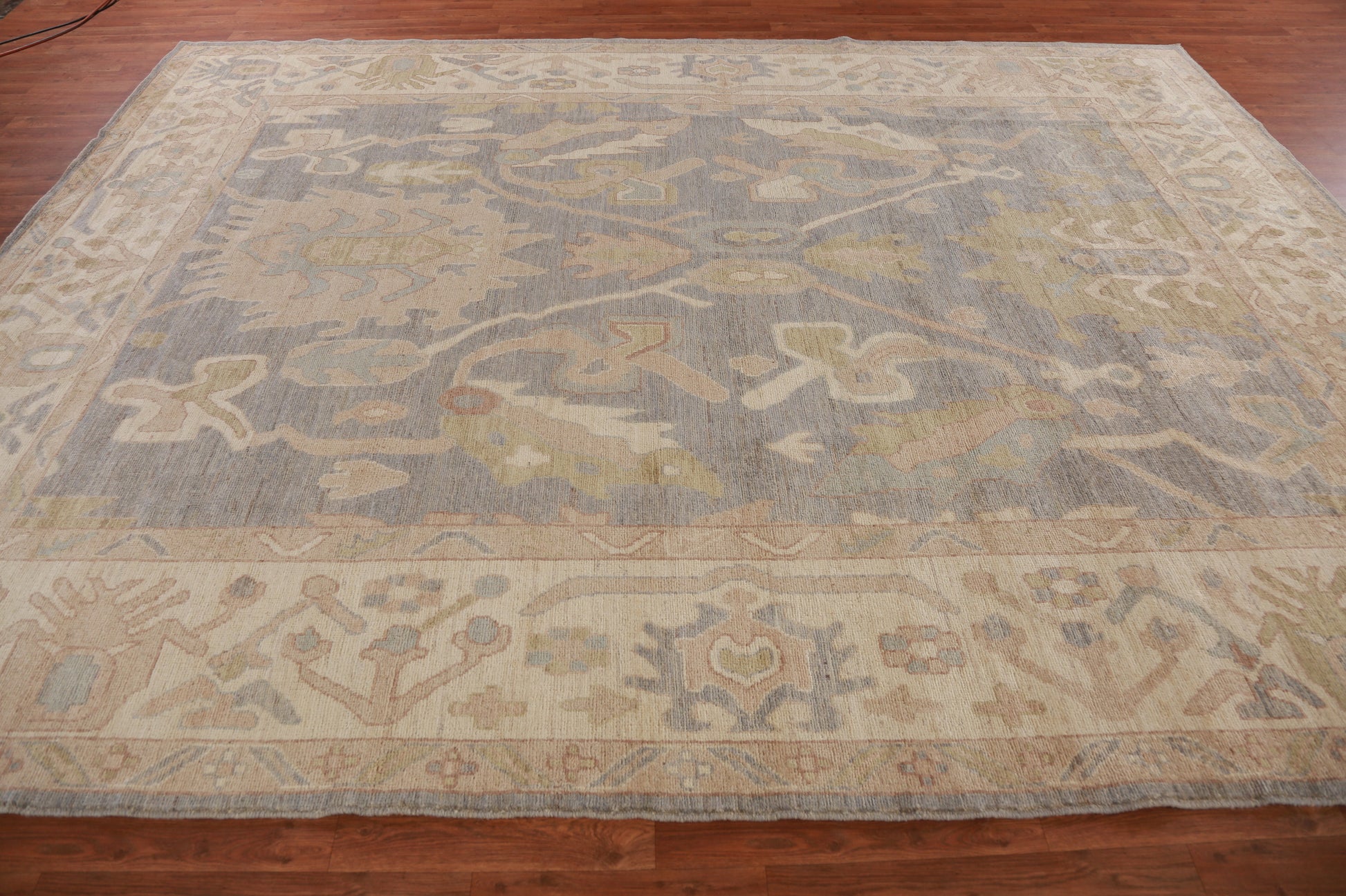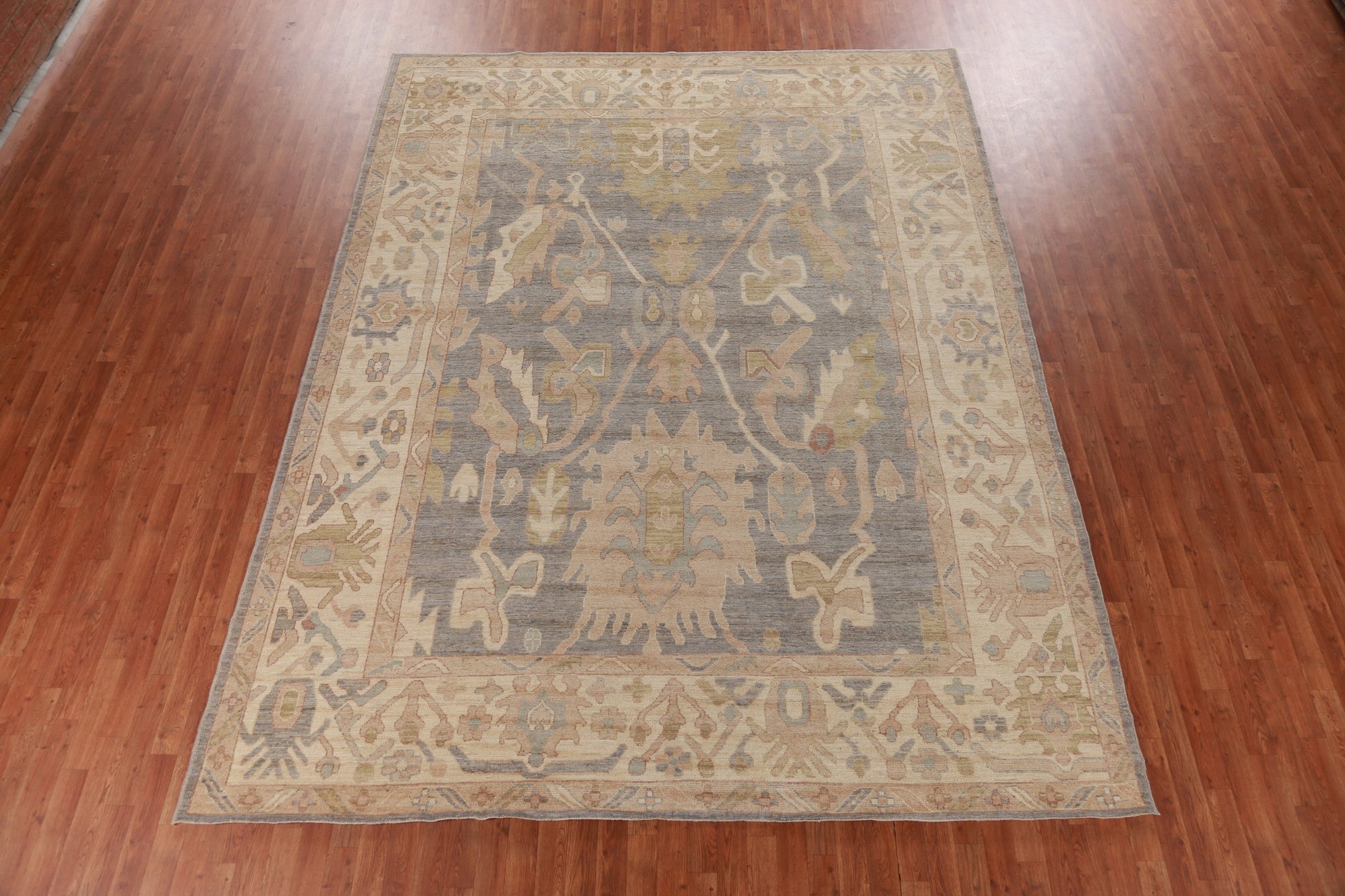 Vegetable Dye Gray Oushak Turkish Area Rug 9x12