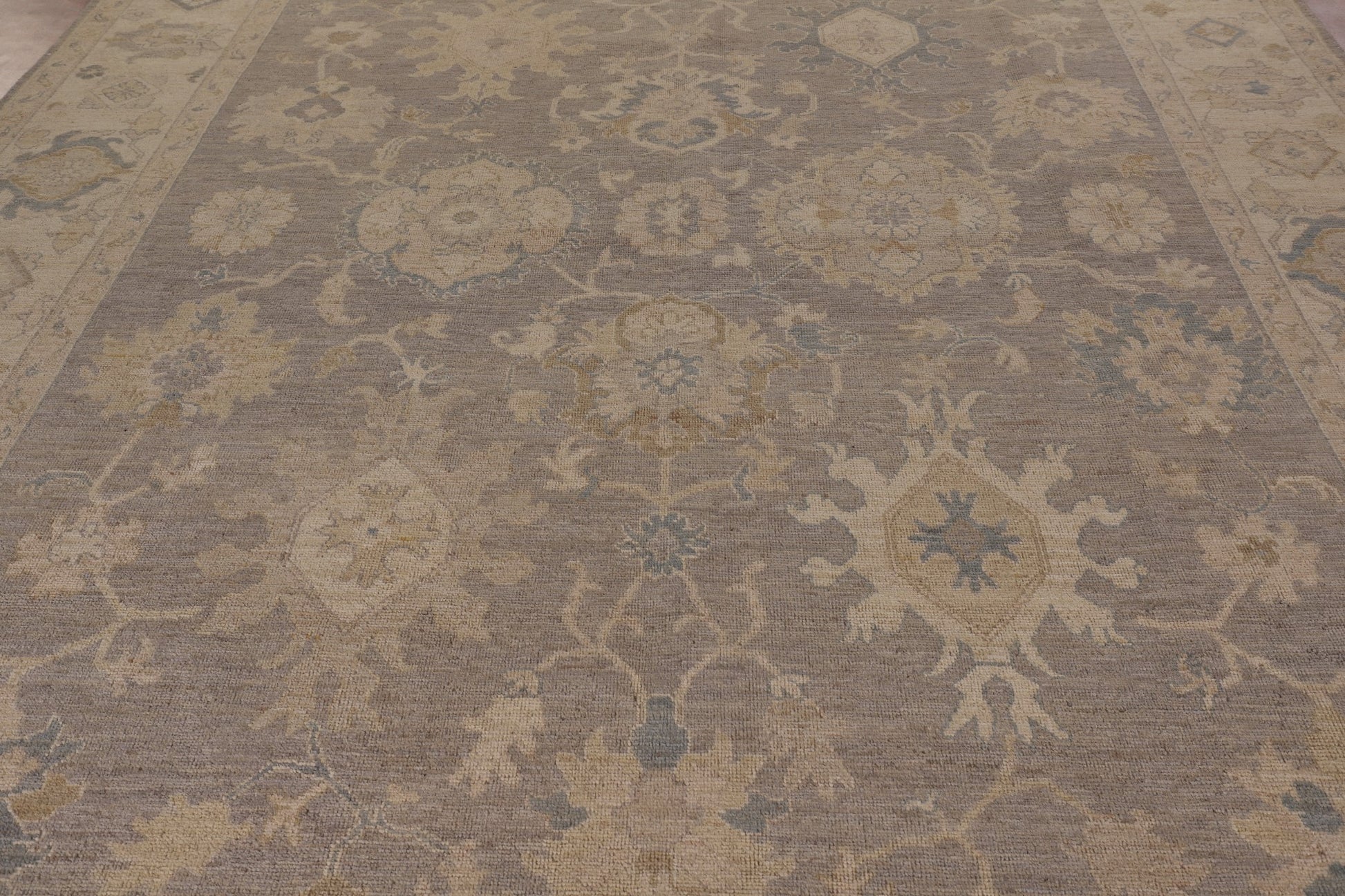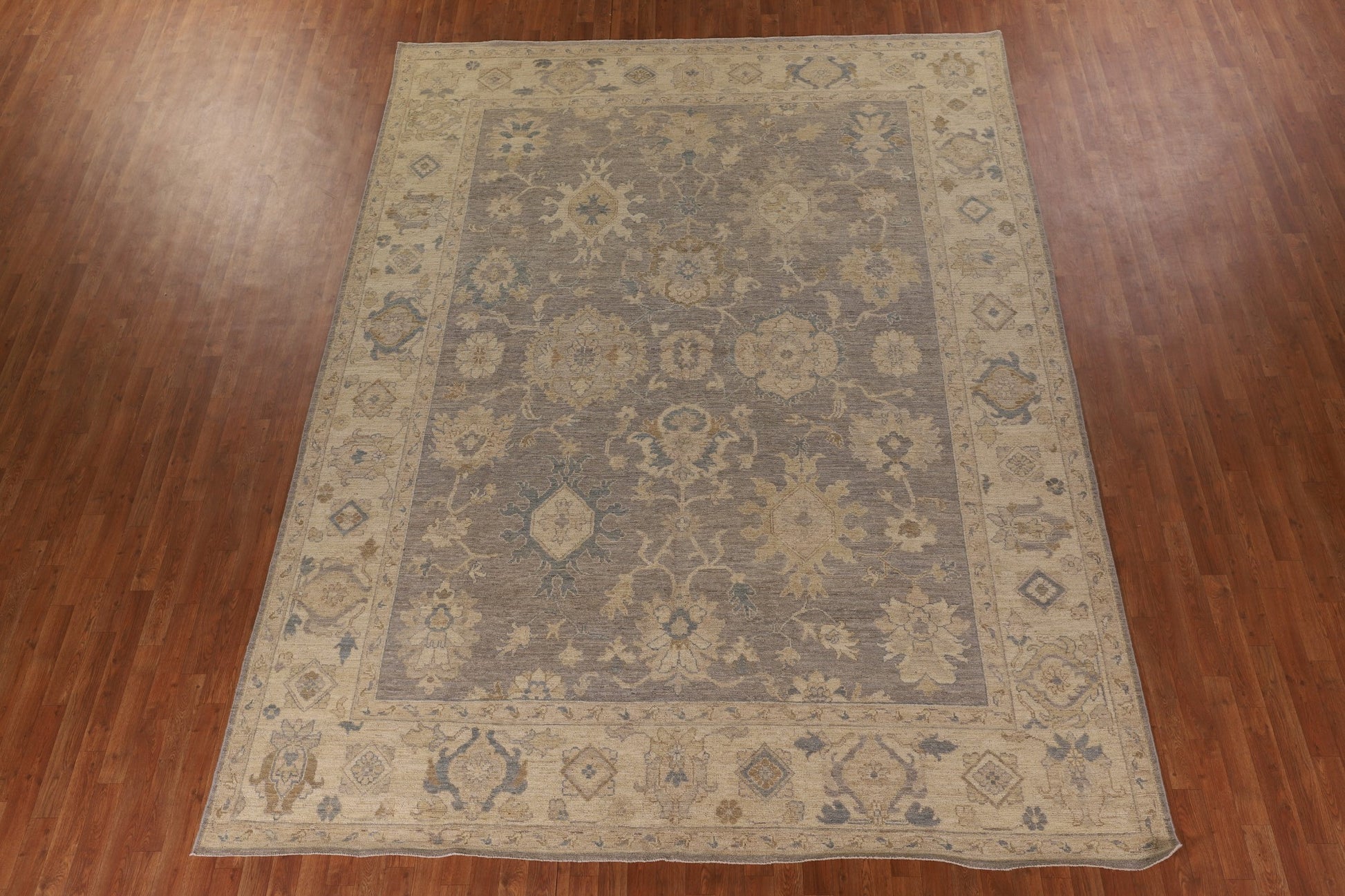 Vegetable Dye Gray Oushak Turkish Area Rug 9x12