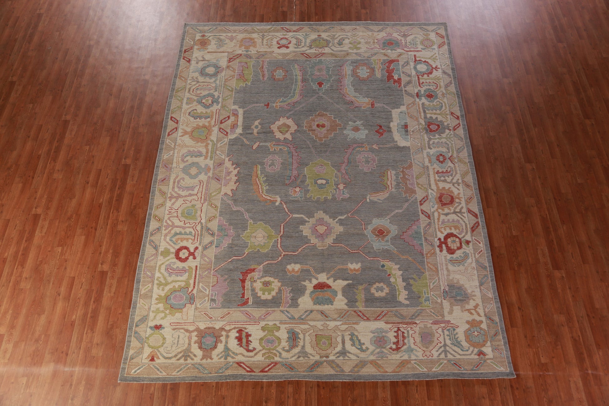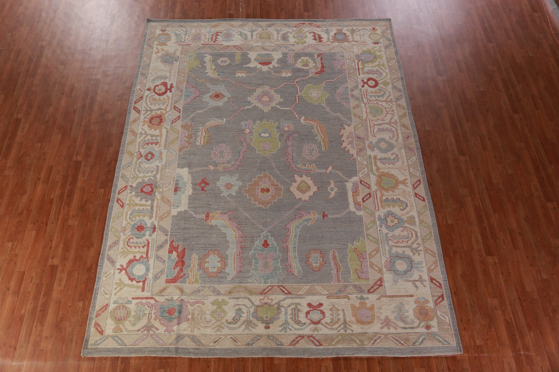 Vegetable Dye Gray Oushak Turkish Area Rug 9x12