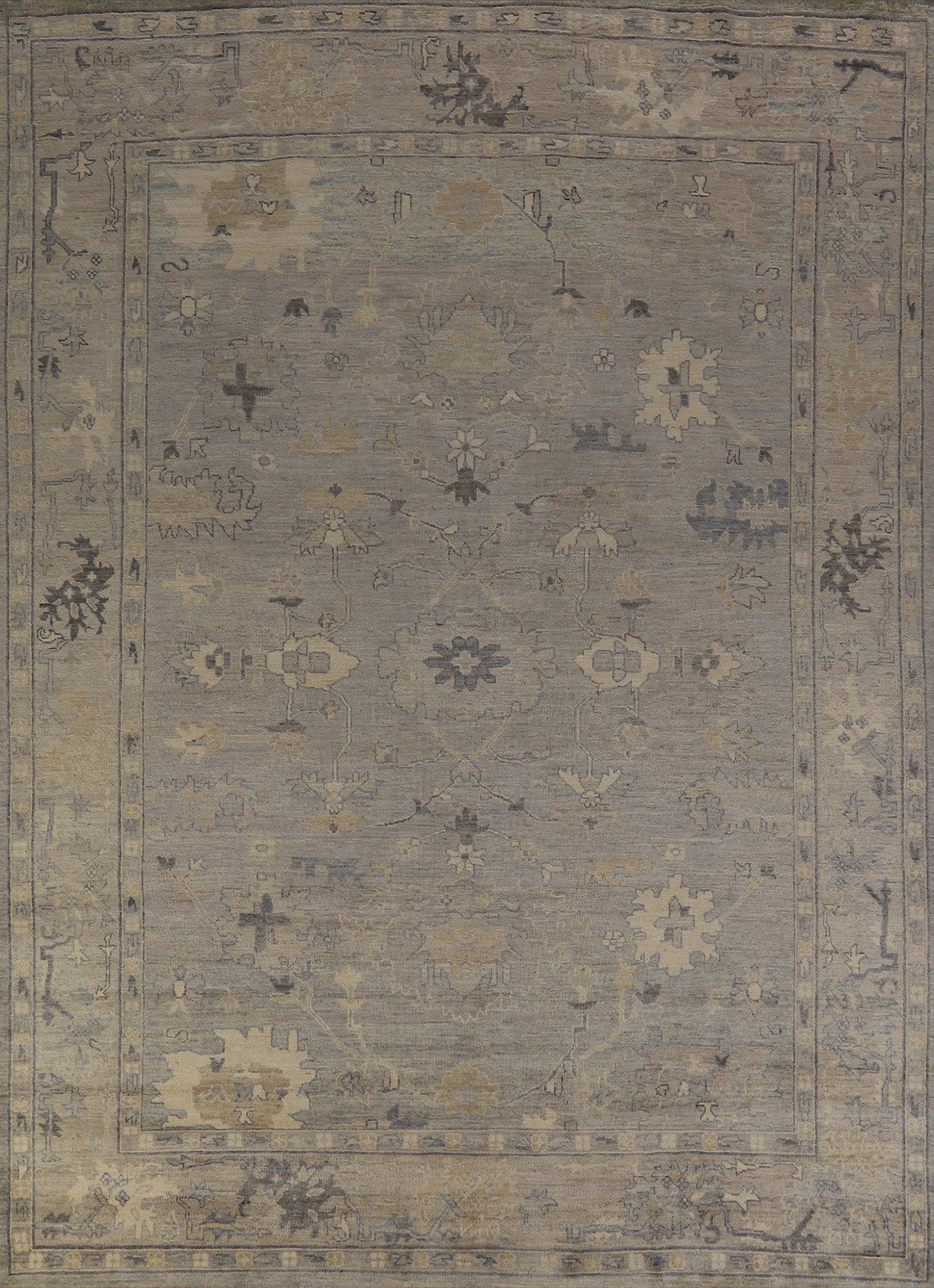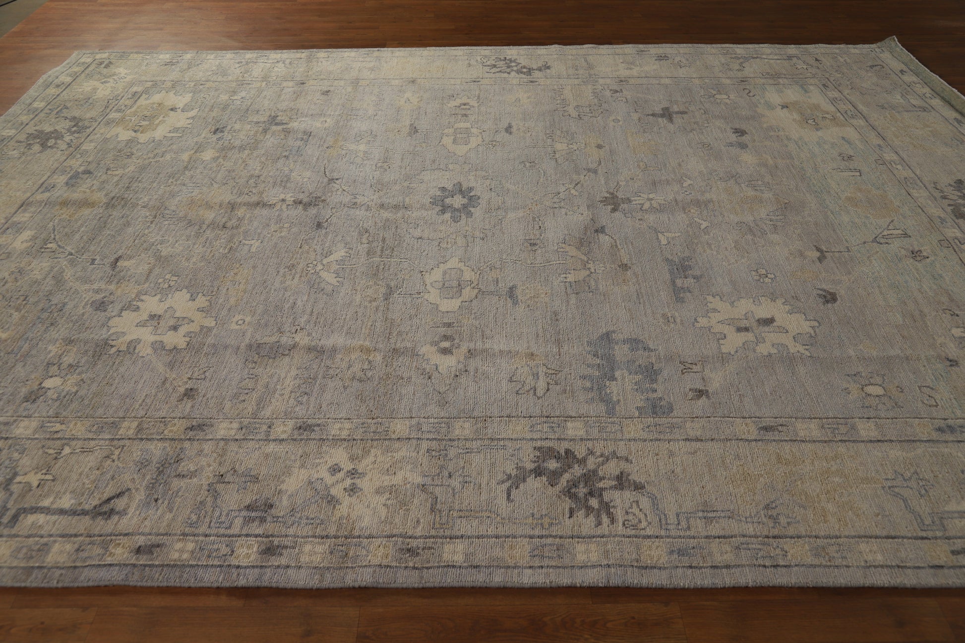 Vegetable Dye Gray Oushak Turkish Area Rug 9x12