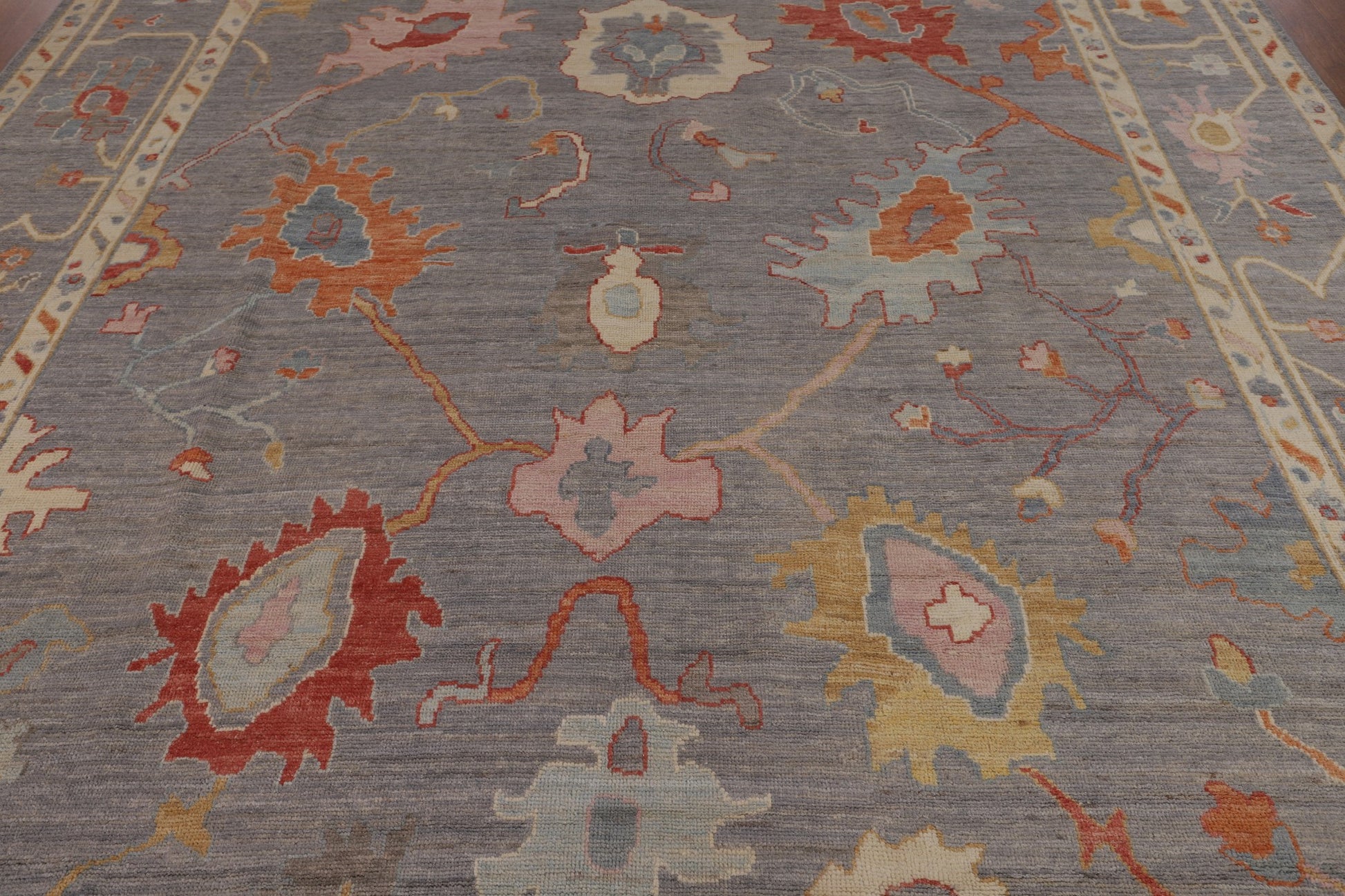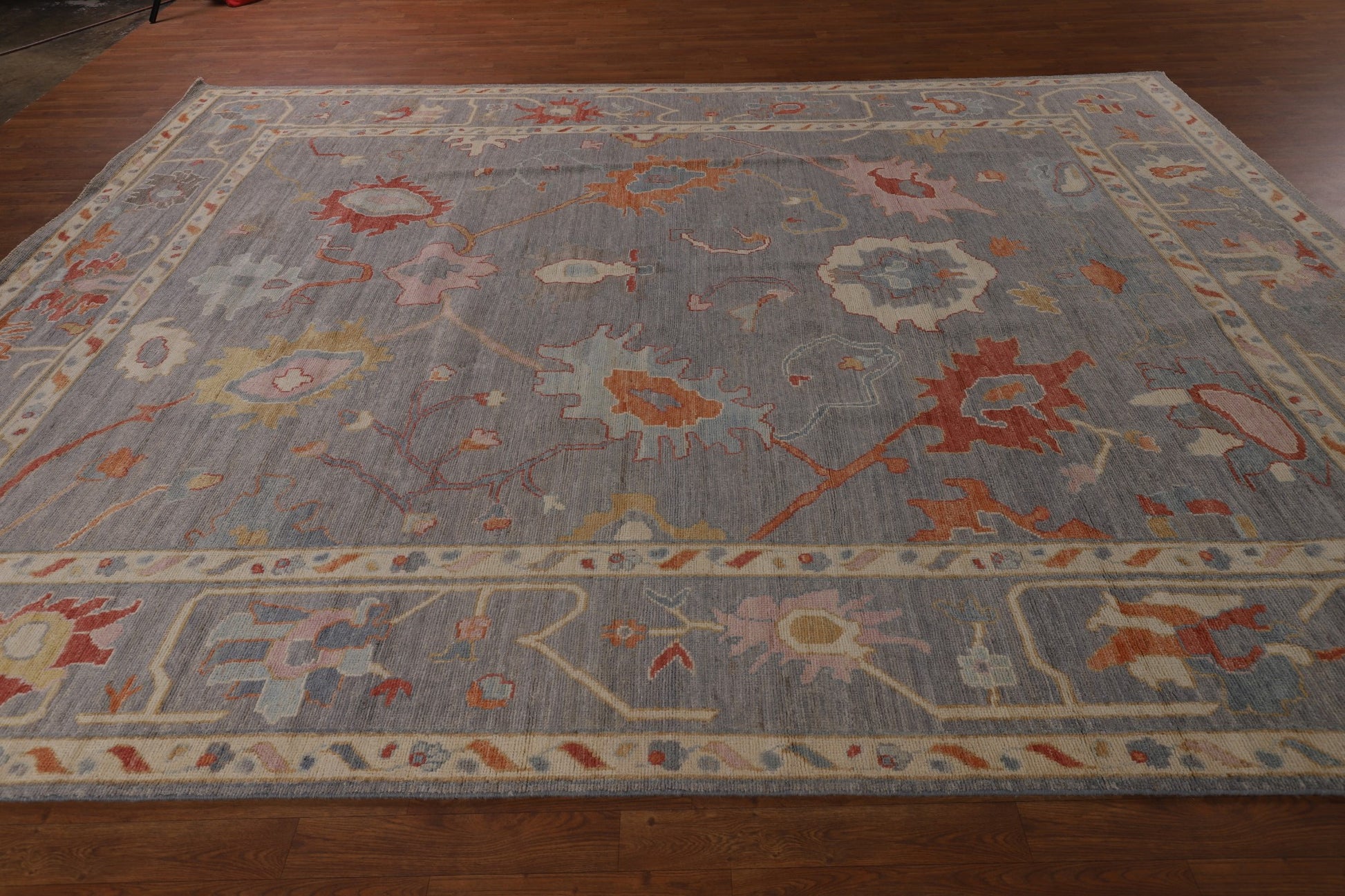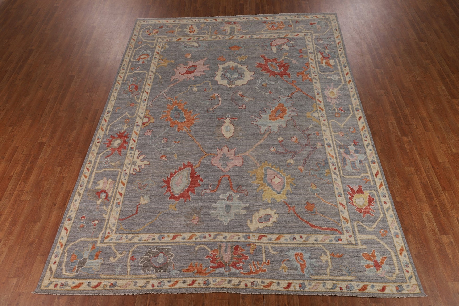 Vegetable Dye Gray Oushak Turkish Area Rug 9x12