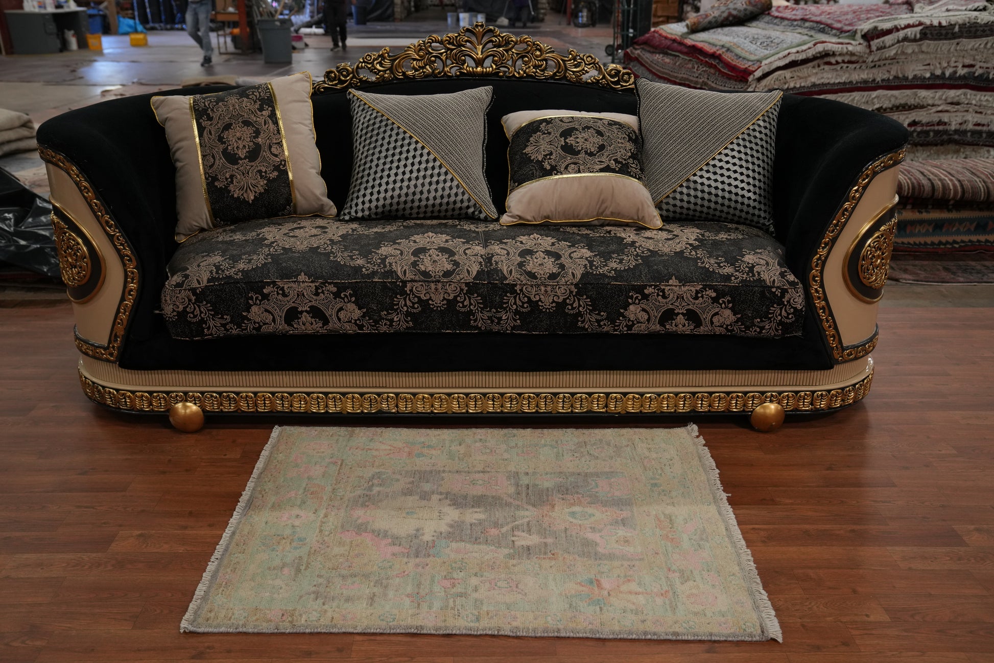 Vegetable Dye Gray Oushak Turkish Rug 3x4