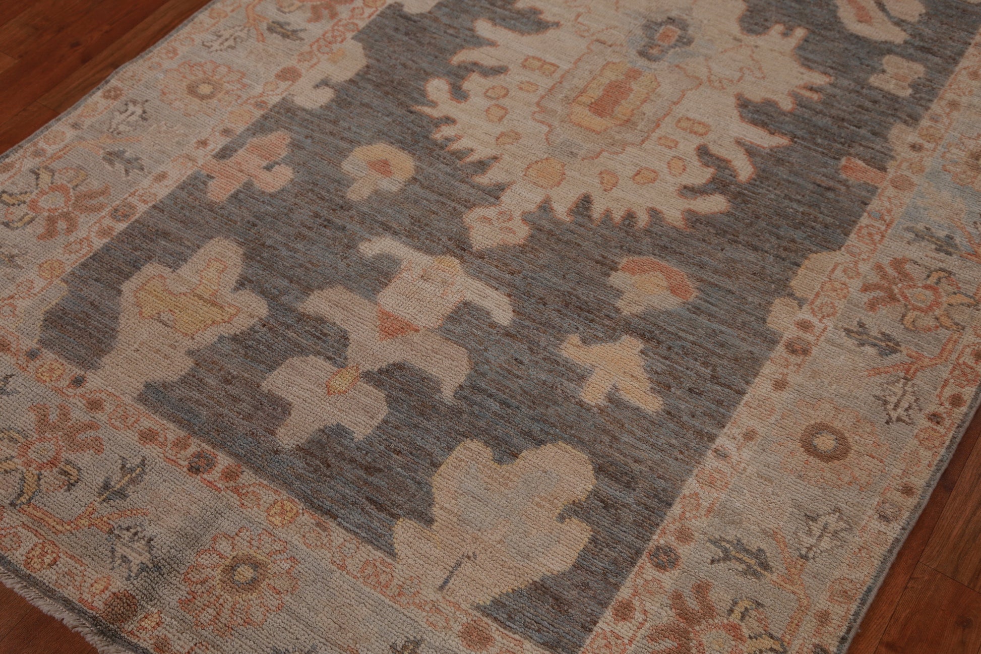 Vegetable Dye Gray Oushak Turkish Rug 4x6