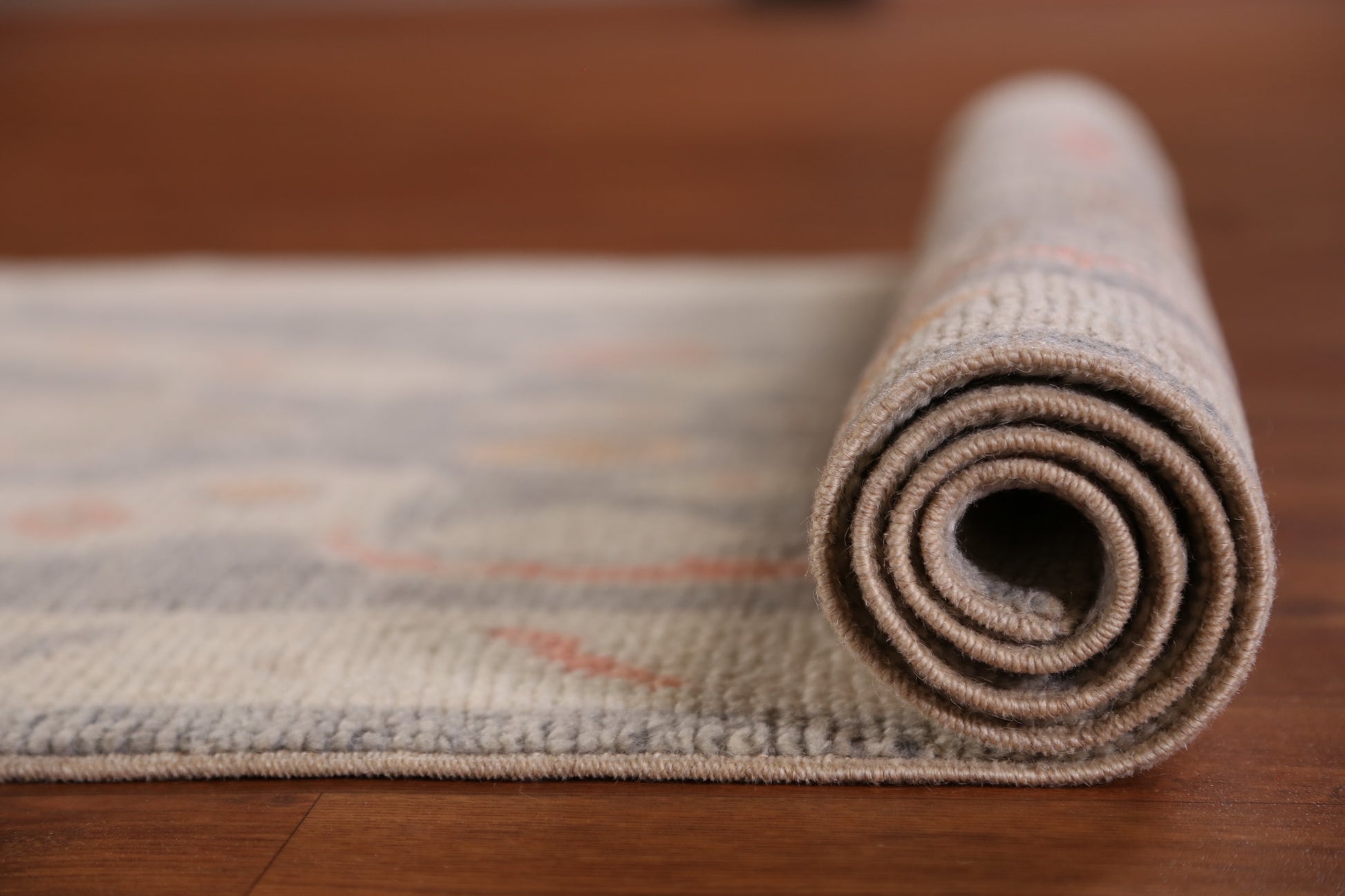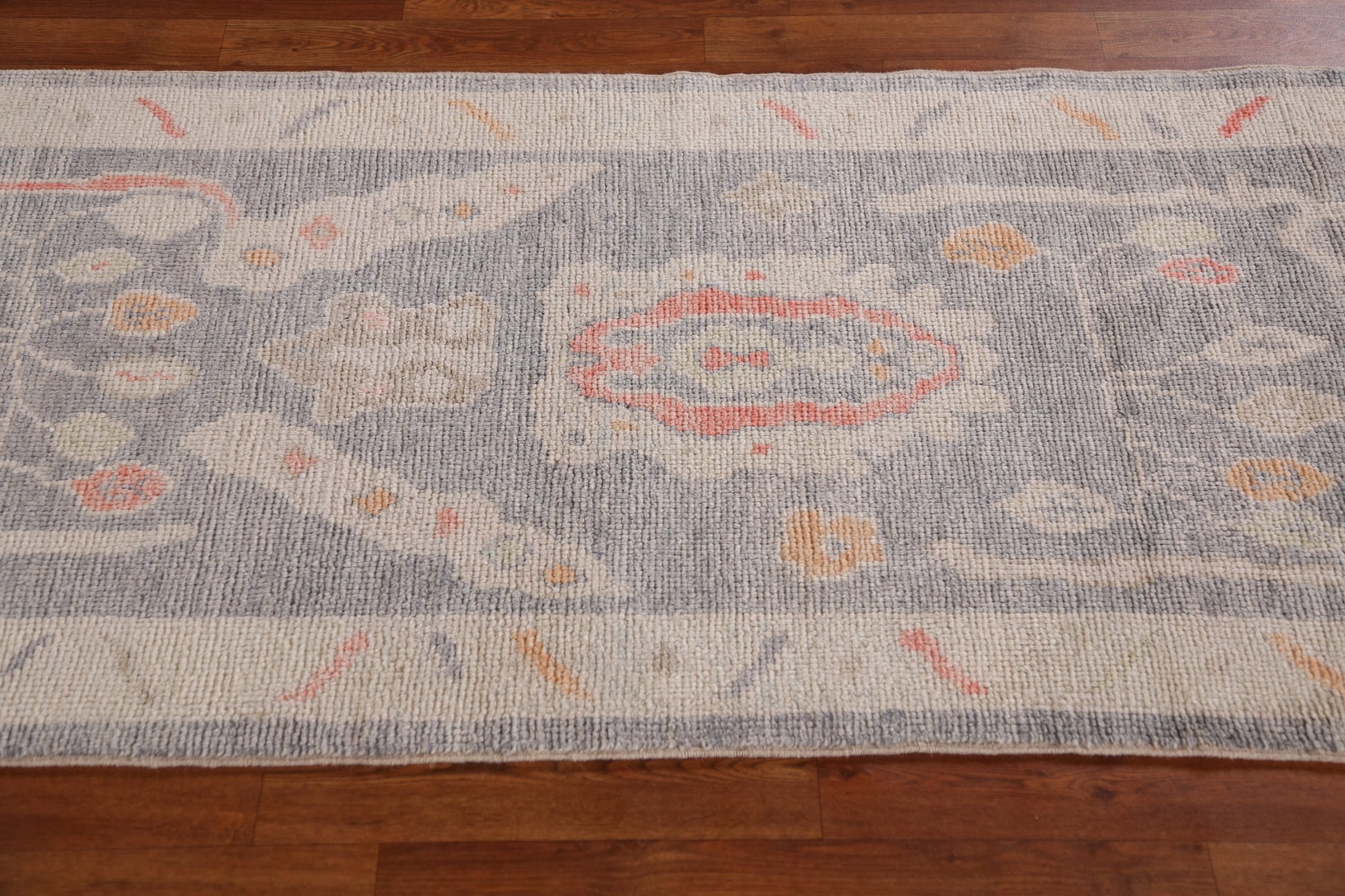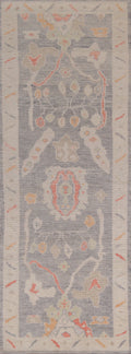Vegetable Dye Gray Oushak Turkish Runner Rug 3x10