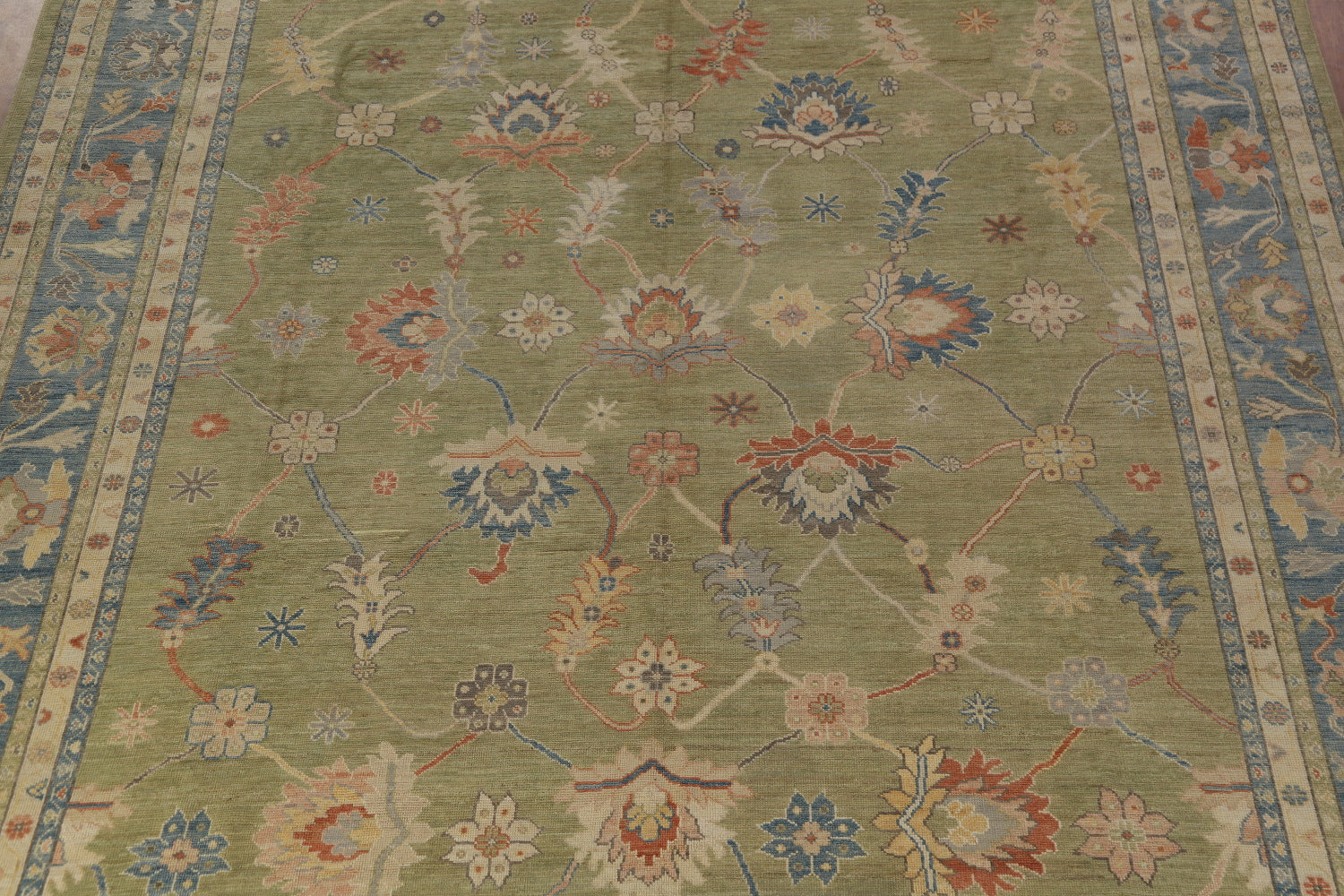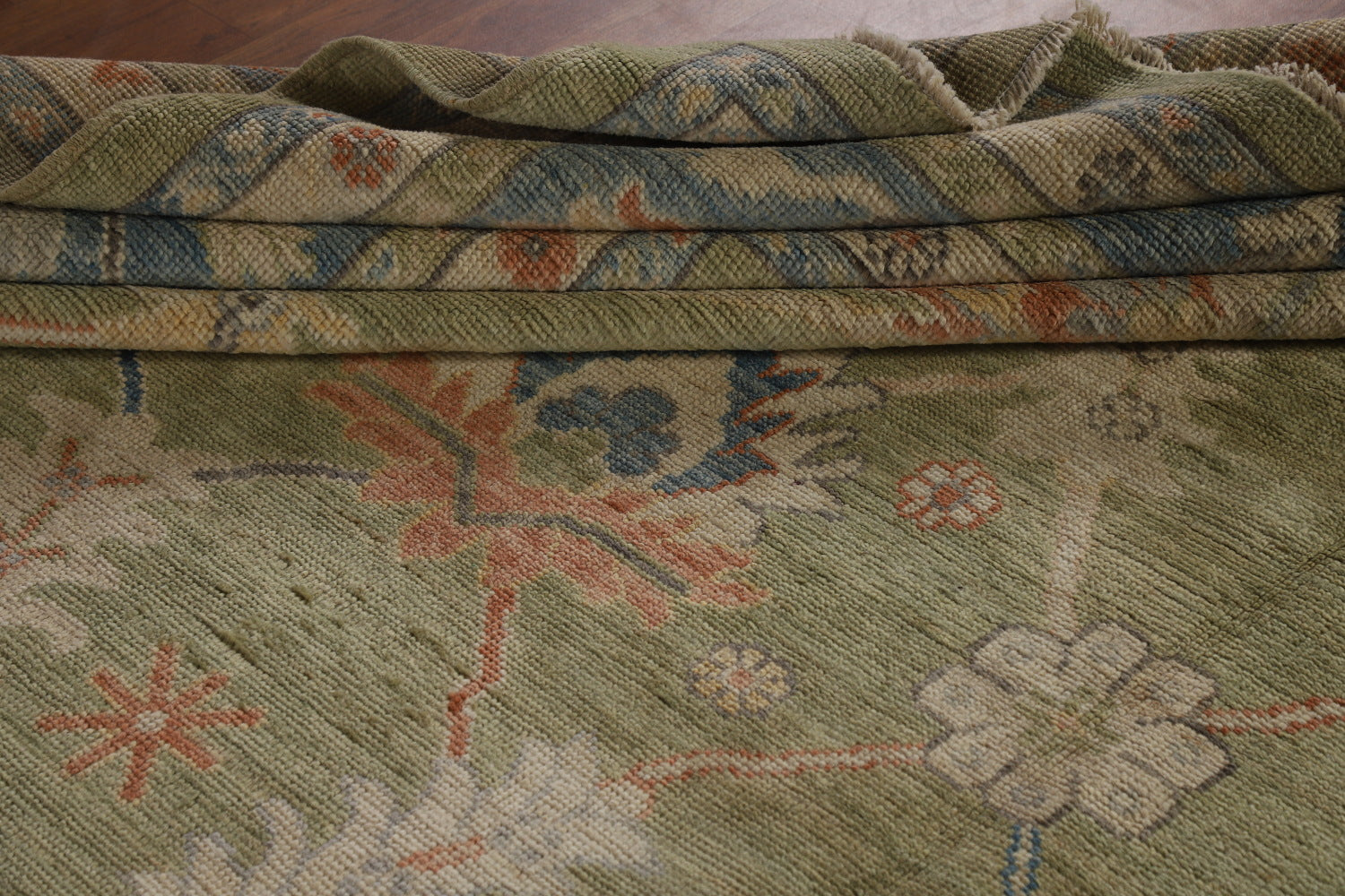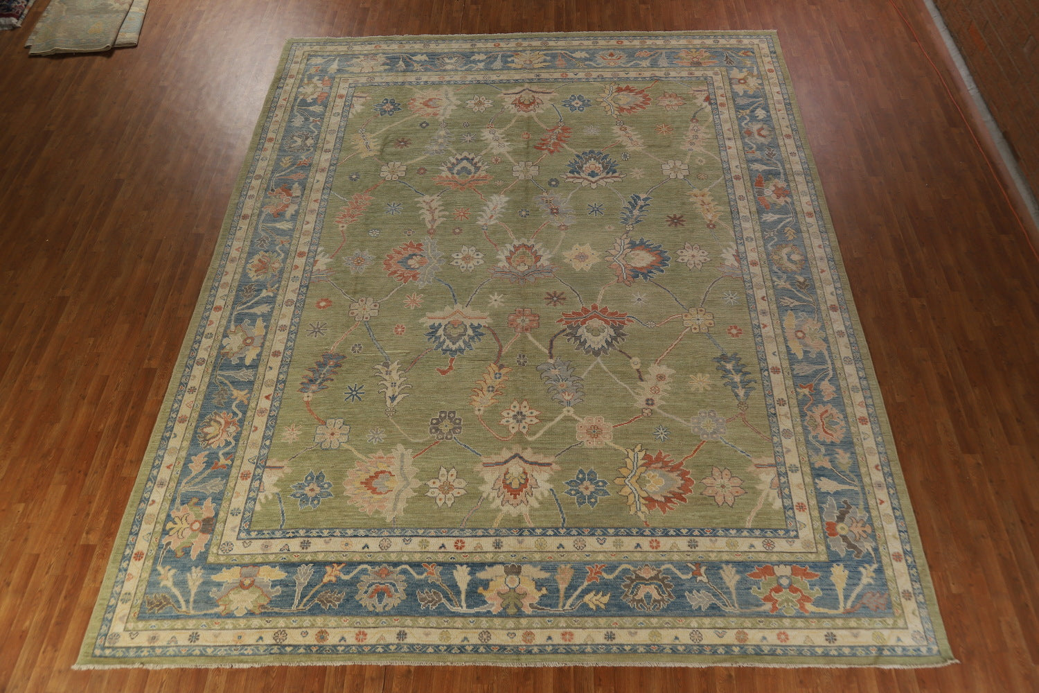 Vegetable Dye Green Oushak Turkish Large Rug 12x15