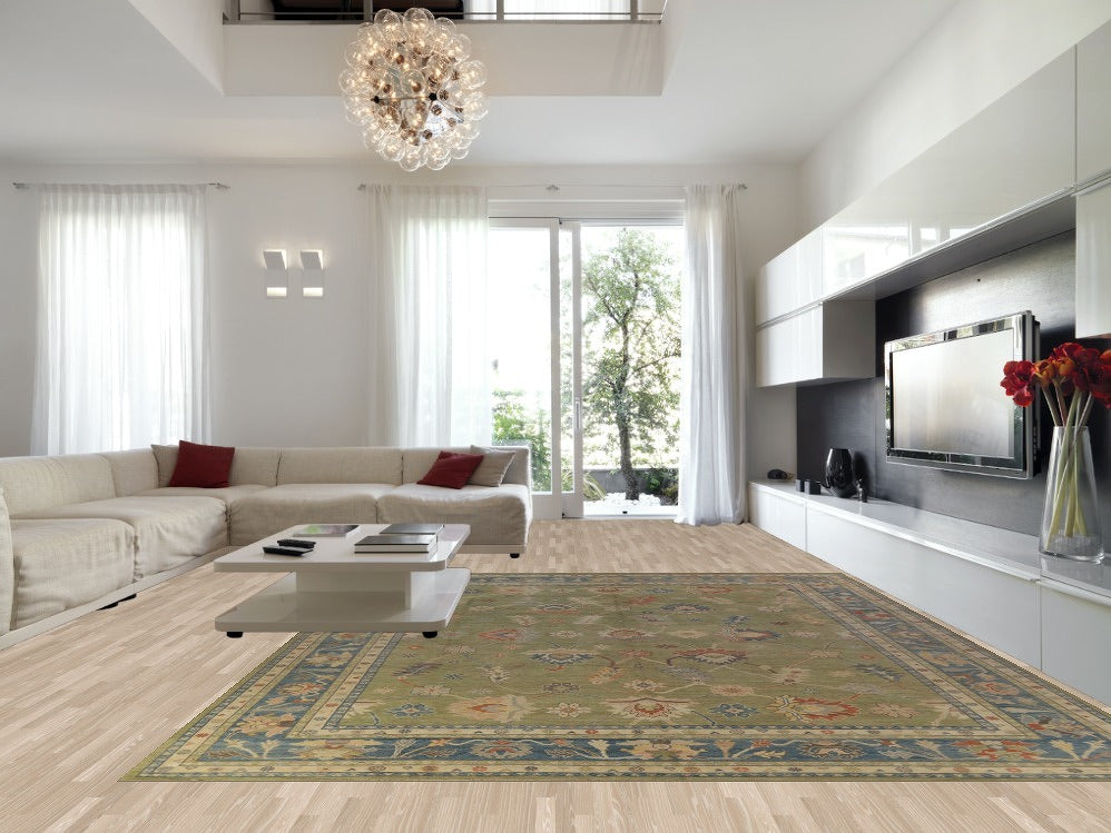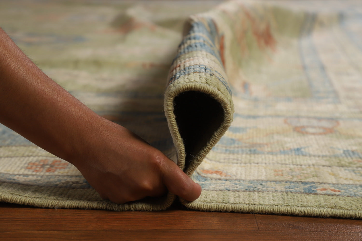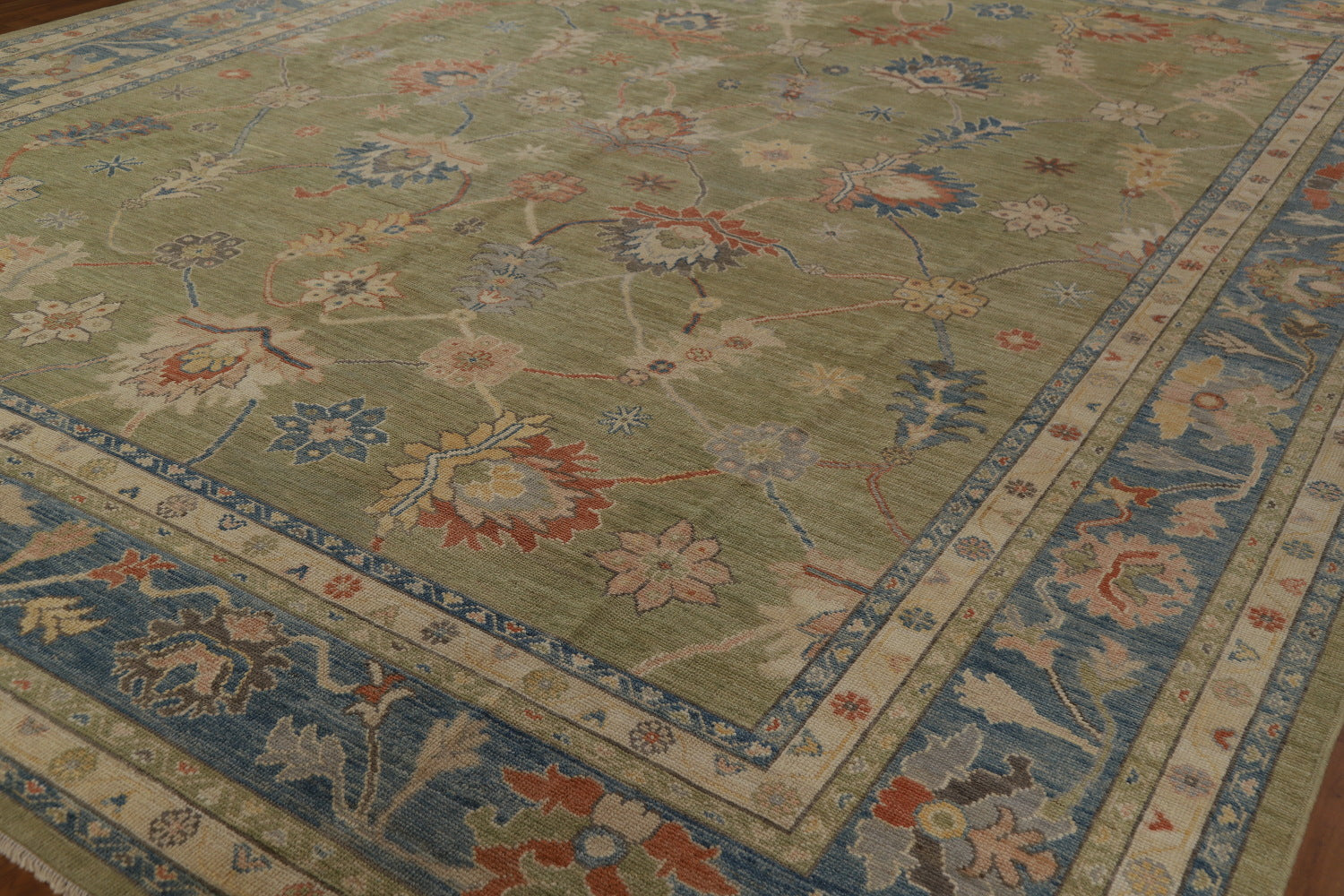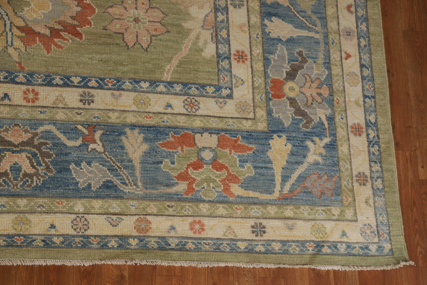 Vegetable Dye Green Oushak Turkish Large Rug 12x15