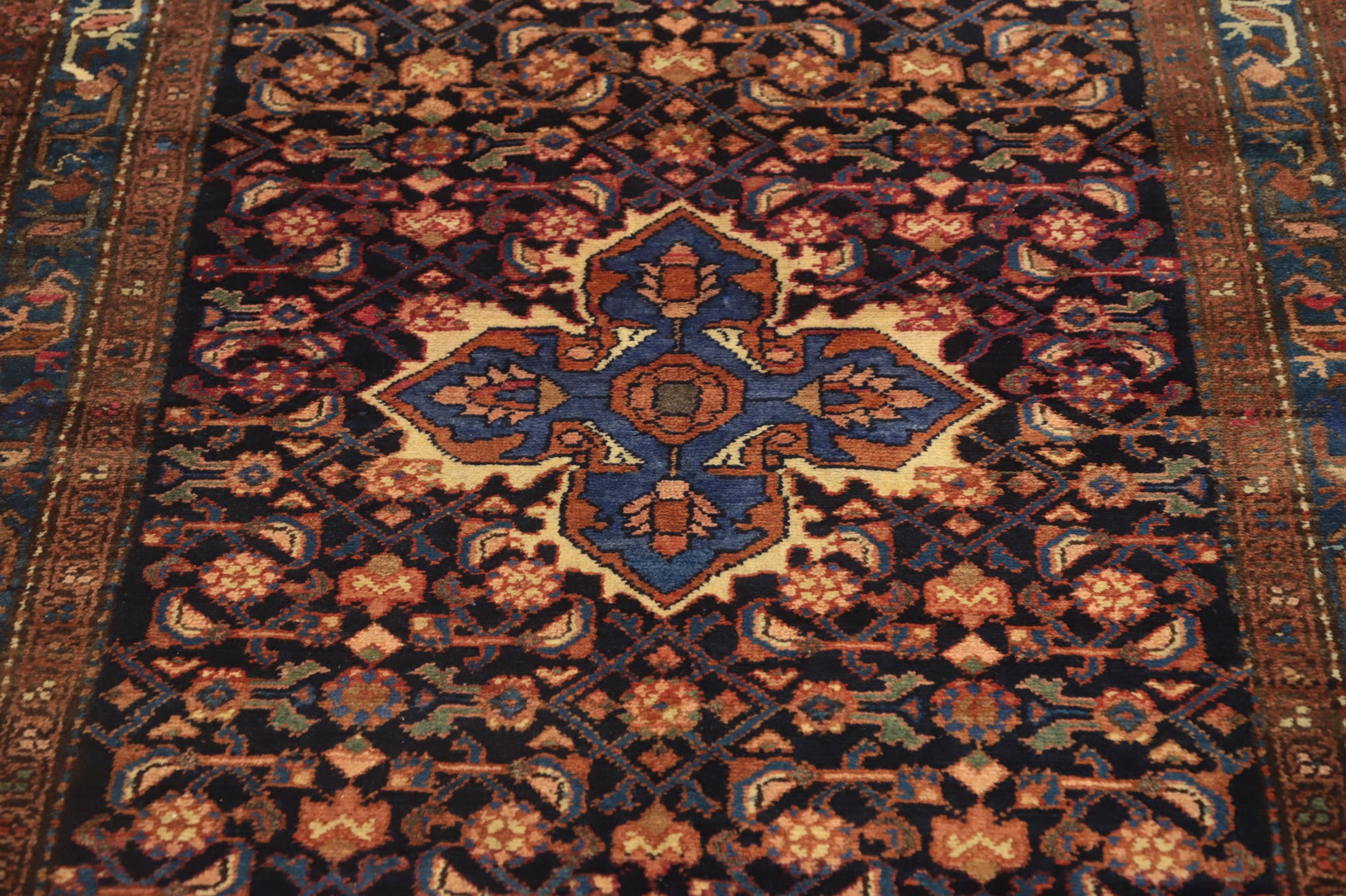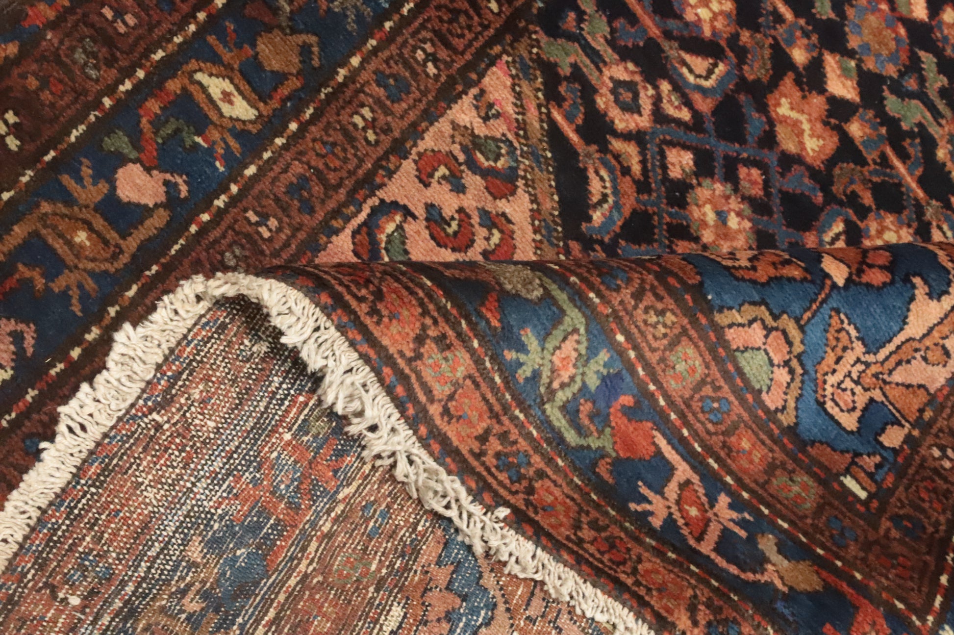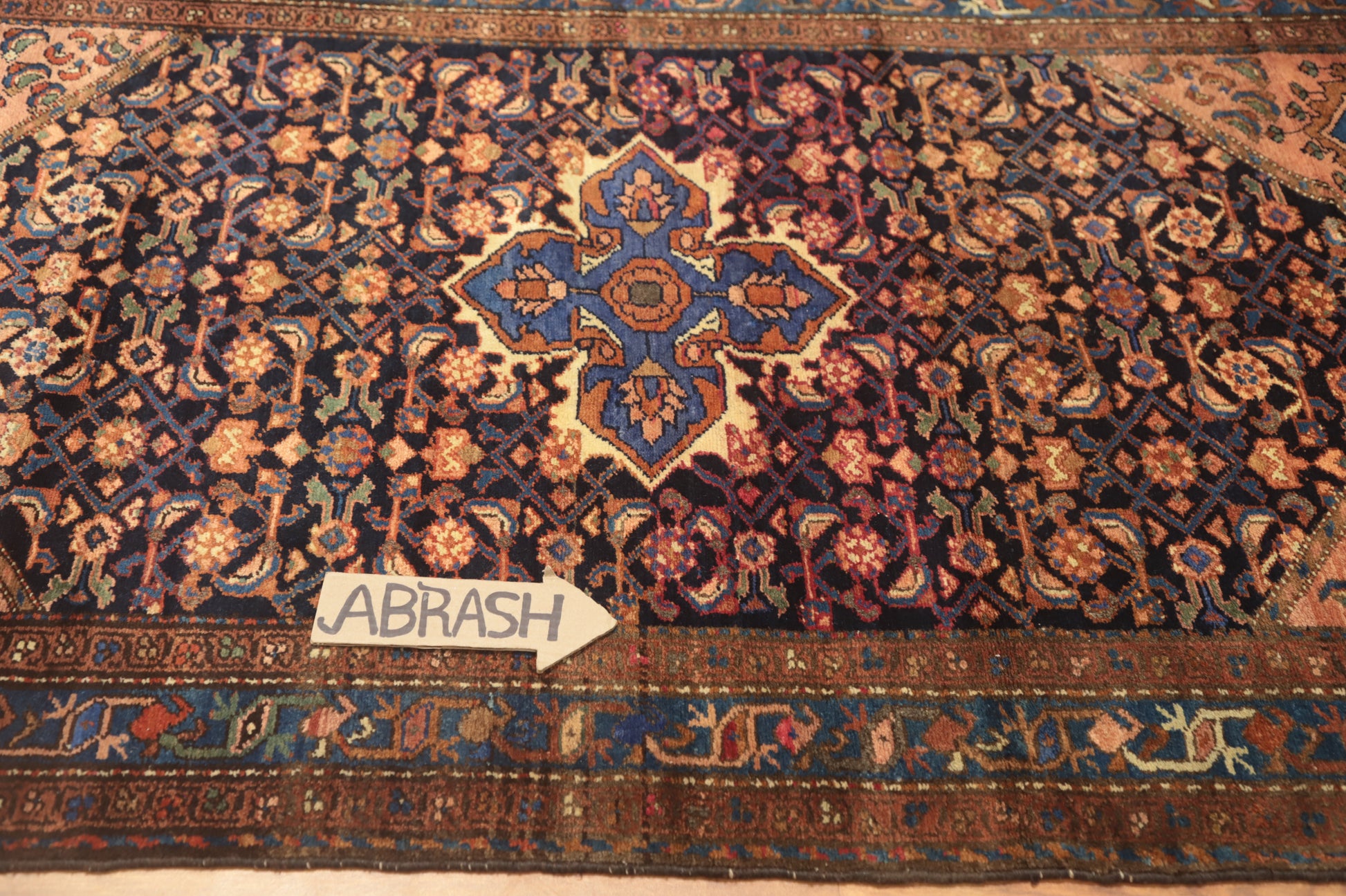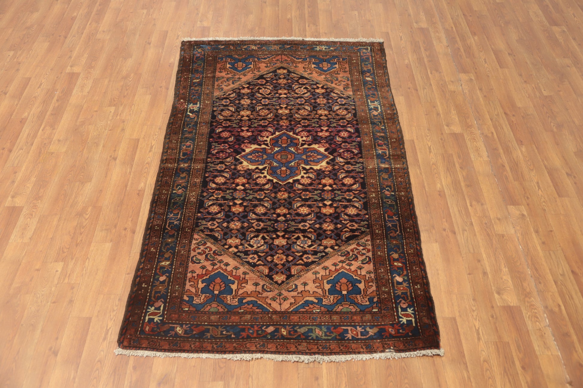 A Beautiful Genuine Persia ( Persia ) Hamedan rug is Hand Knotted by skillful weavers in Persia ( Persia ) with 100% Wool Material. This rug is in Very Good (Small Repair-Abrash) condition. dimensions are 6' 8'' X 3' 9'' in foot and 203 X 114 in centimeter. the primary color is Navy Blue & Blues.