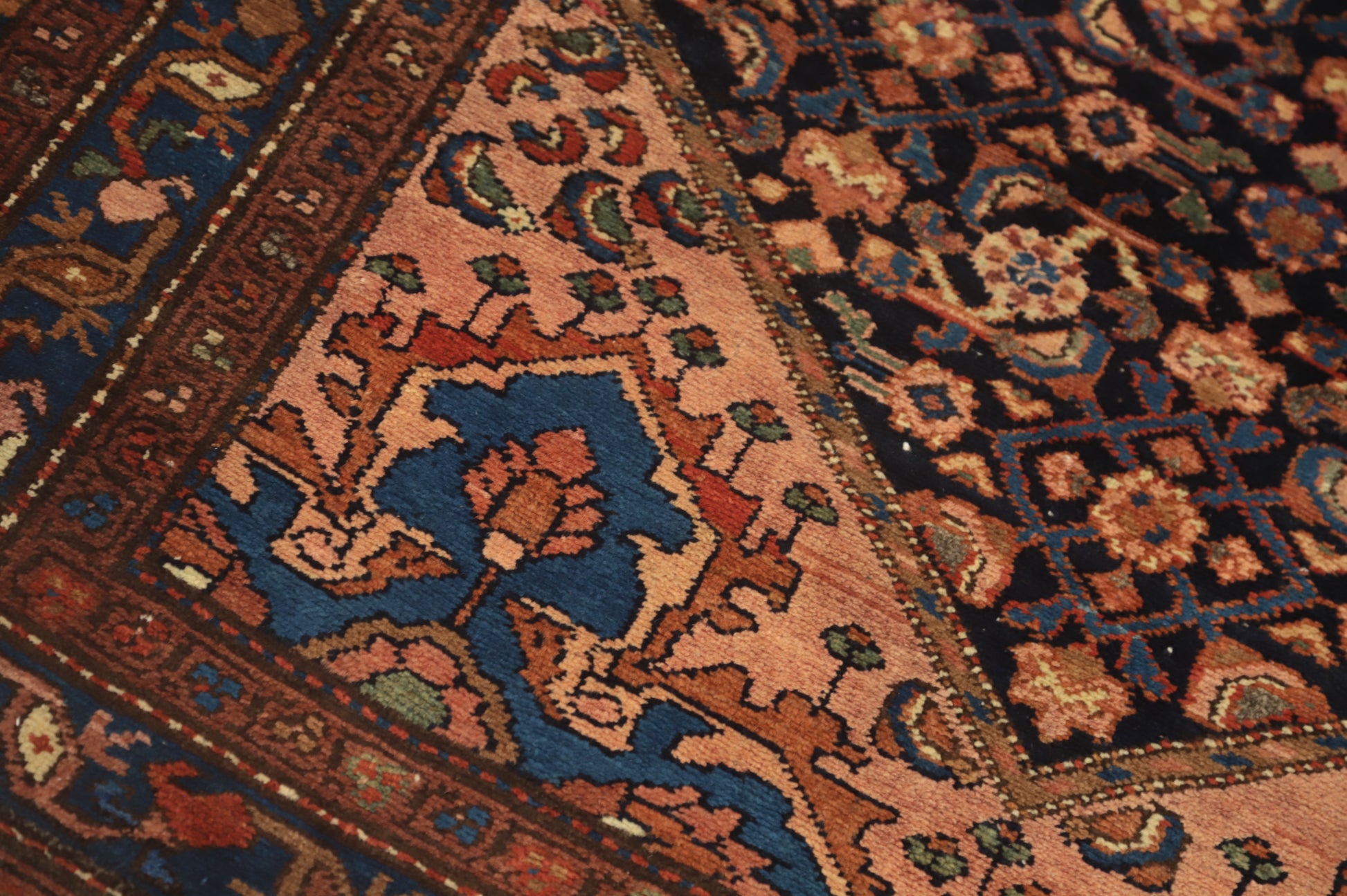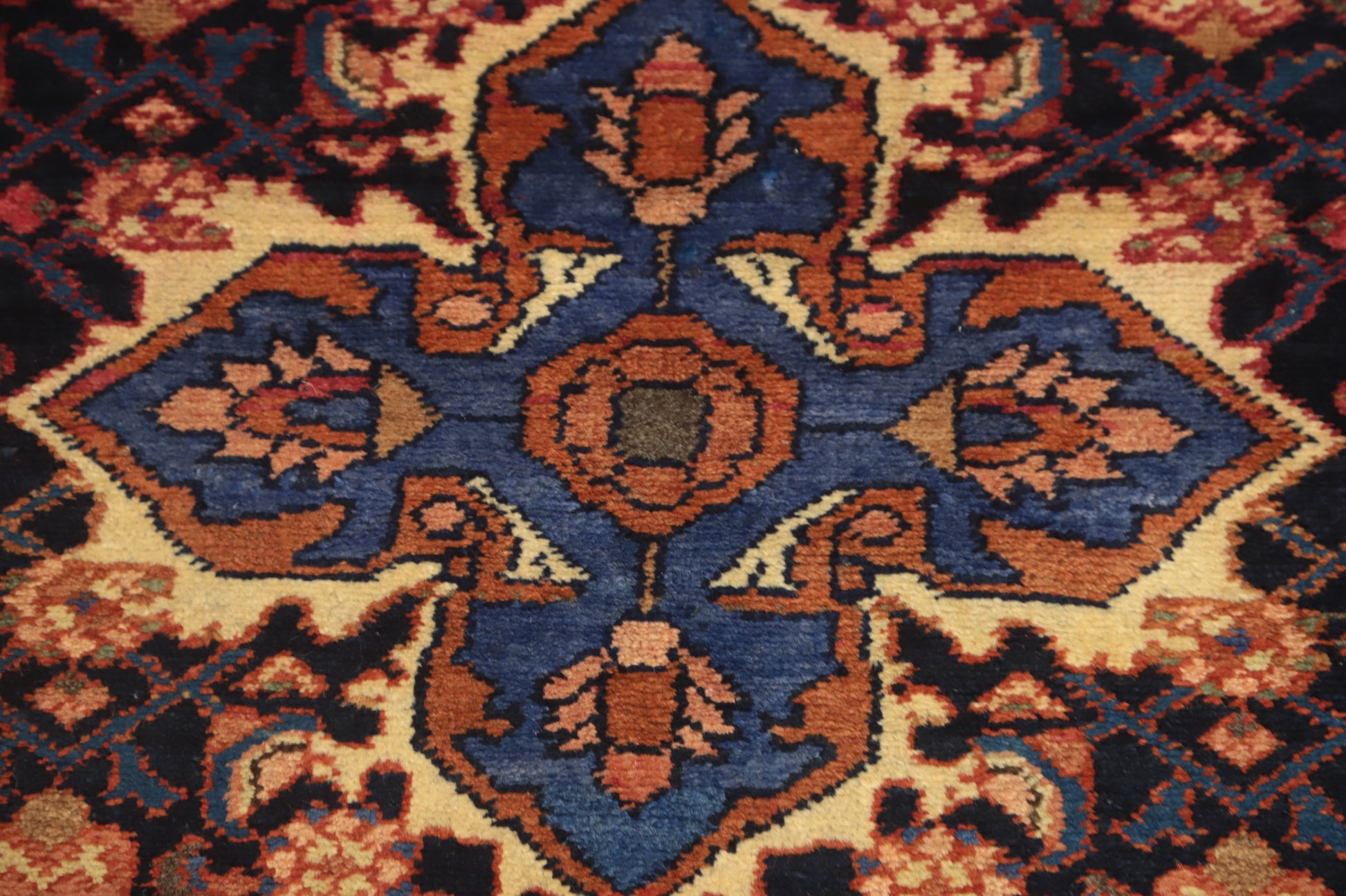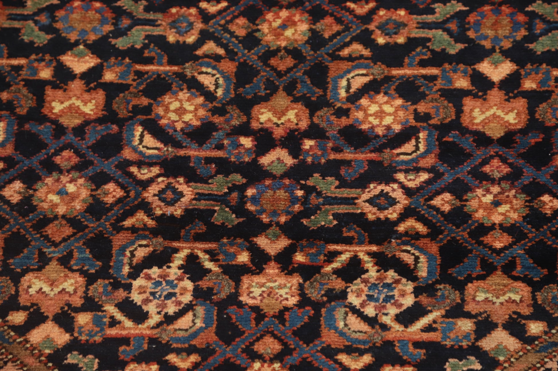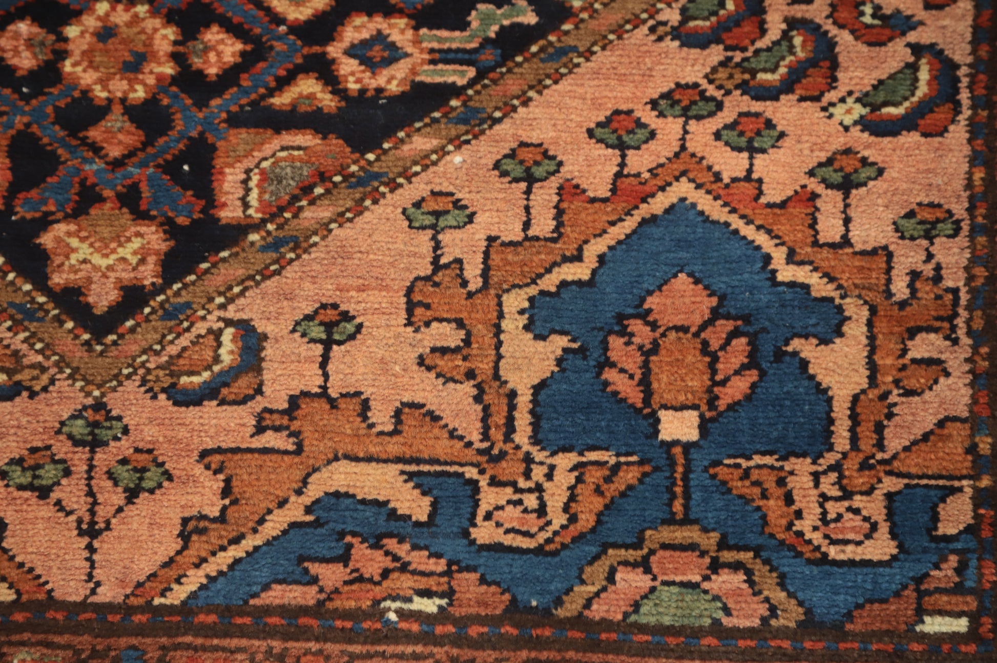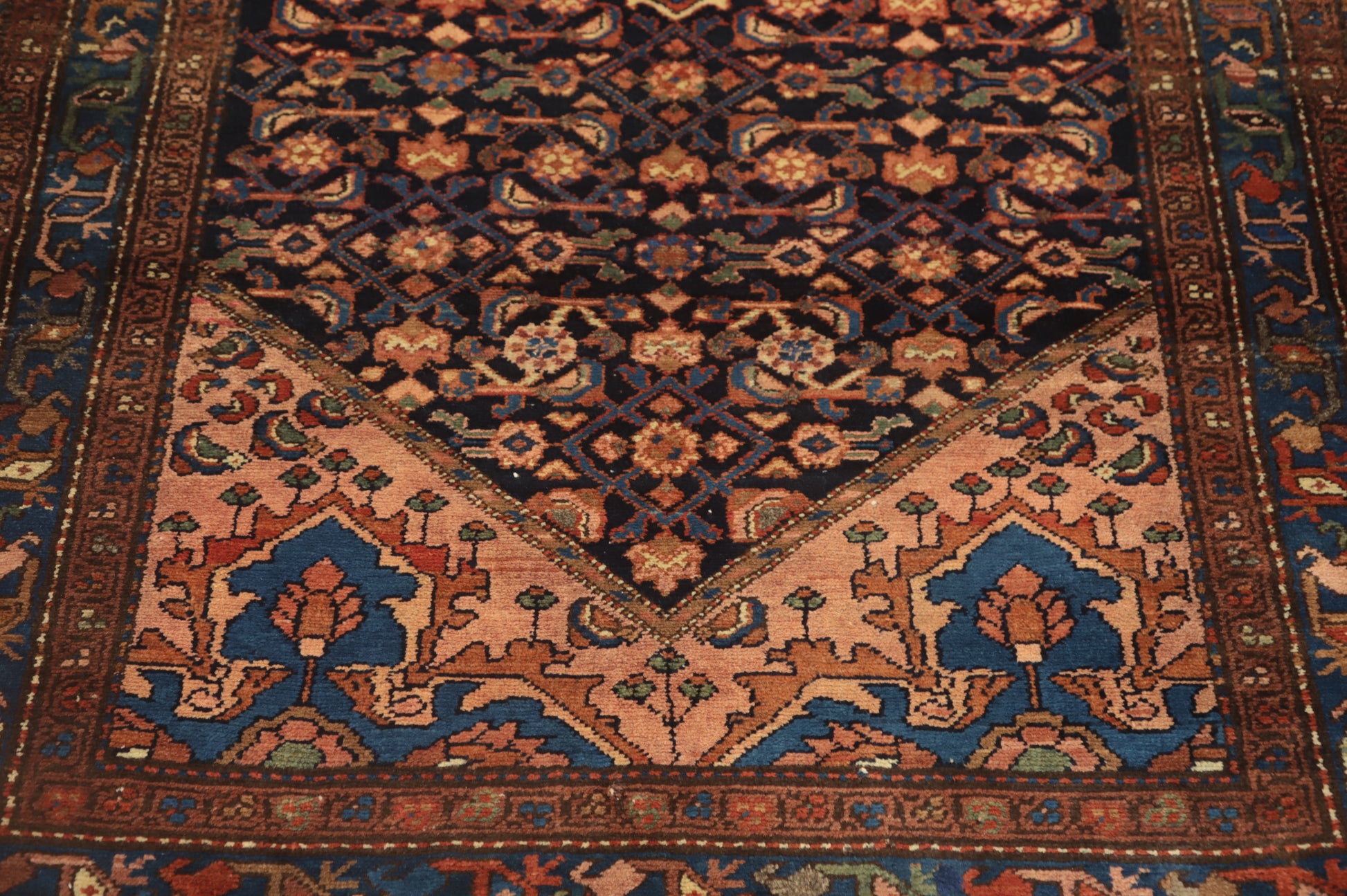A Beautiful Genuine Persia ( Persia ) Hamedan rug is Hand Knotted by skillful weavers in Persia ( Persia ) with 100% Wool Material. This rug is in Very Good (Small Repair-Abrash) condition. dimensions are 6' 8'' X 3' 9'' in foot and 203 X 114 in centimeter. the primary color is Navy Blue & Blues.