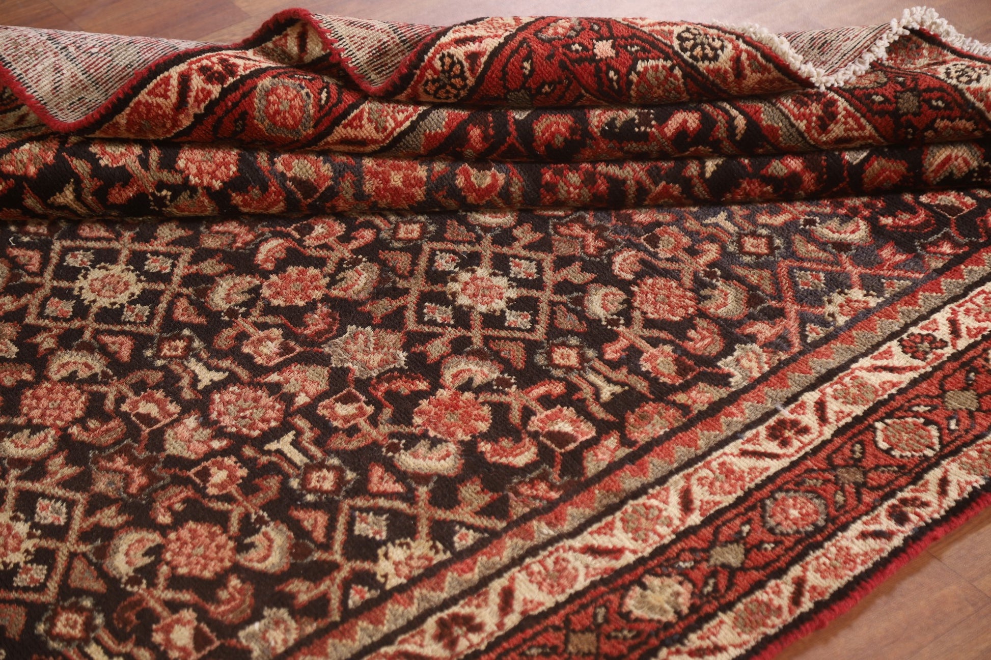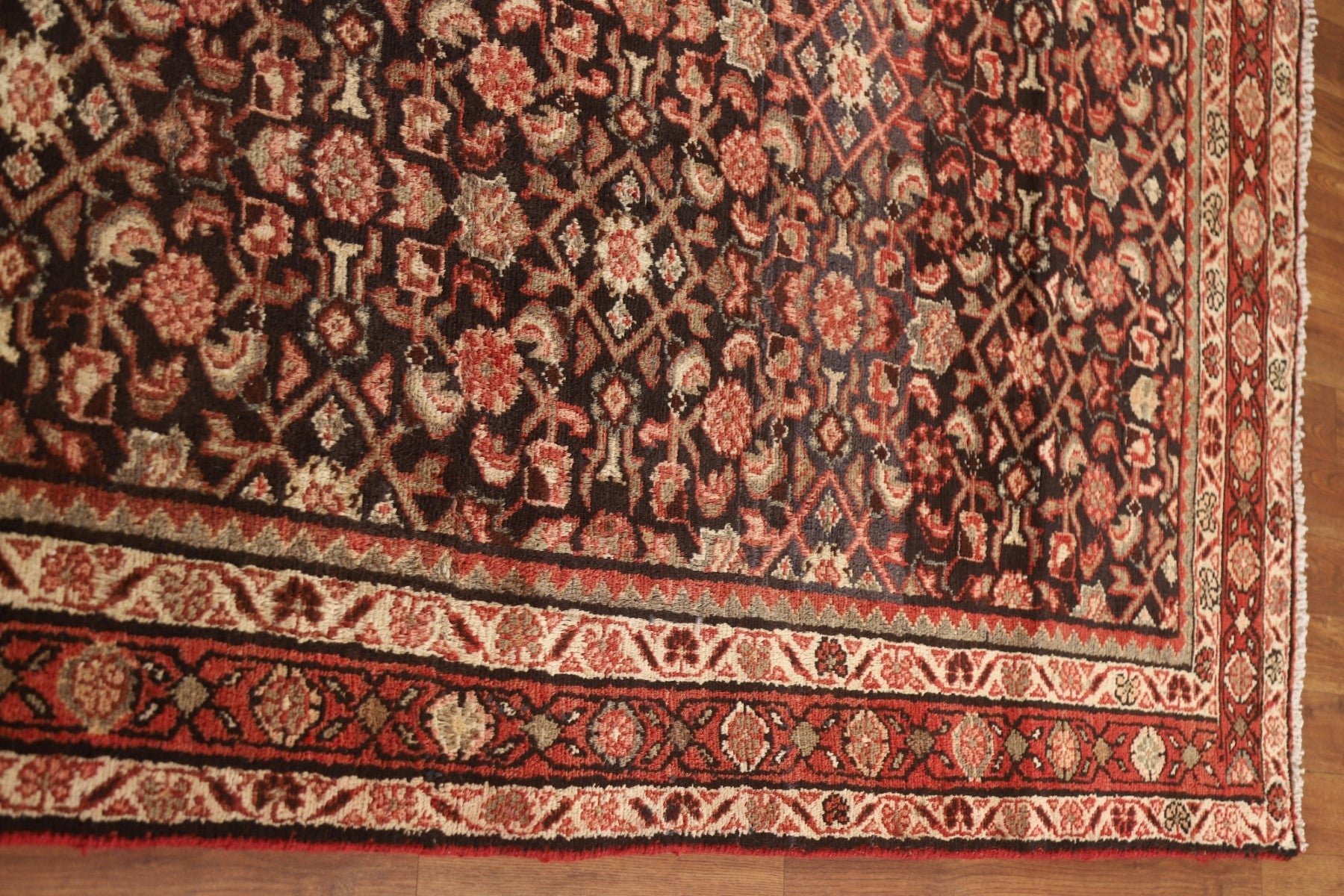 A Beautiful Genuine Persia ( Persia ) Hamedan rug is Hand Knotted by skillful weavers in Persia ( Persia ) with 100% Wool Material. This rug is in Very Good ( Low Pile ) condition. dimensions are 14' 5'' X 4' 5'' in foot and 439 X 135 in centimeter. the primary color is Black.