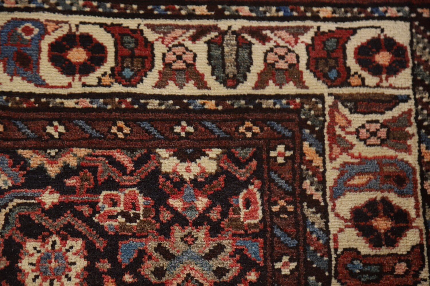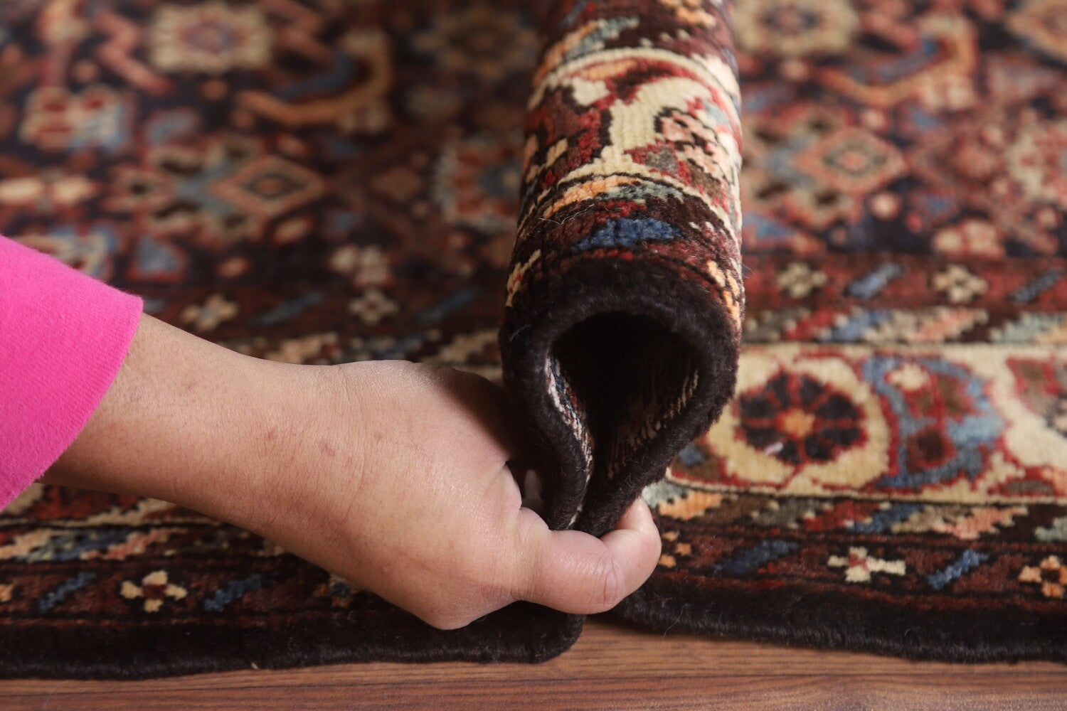 A Beautiful Genuine Persia ( Persia ) Hamedan rug is Hand Knotted by skillful weavers in Persia ( Persia ) with 100% Wool Material. This rug is in Very Good condition. dimensions are 9' 1'' X 3' 6'' in foot and 277 X 107 in centimeter. the primary color is Black.