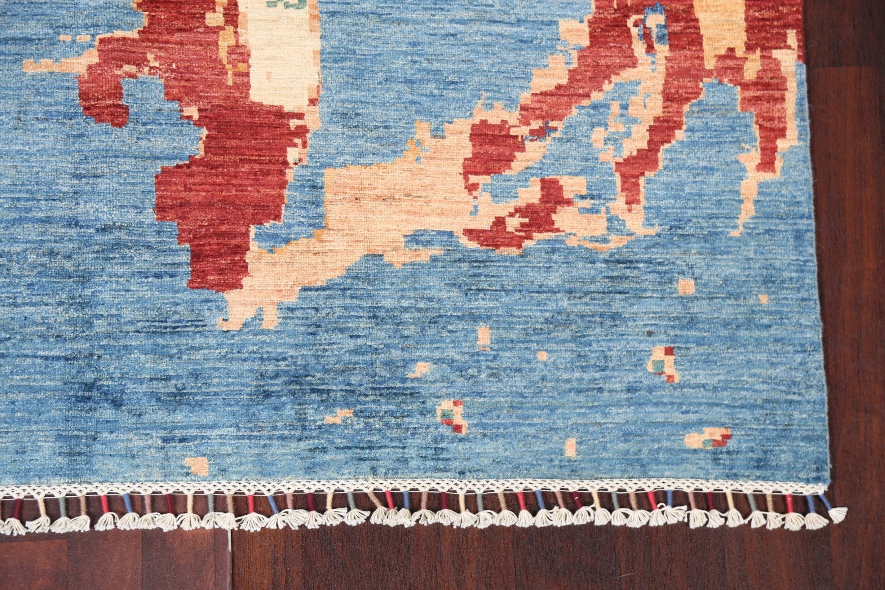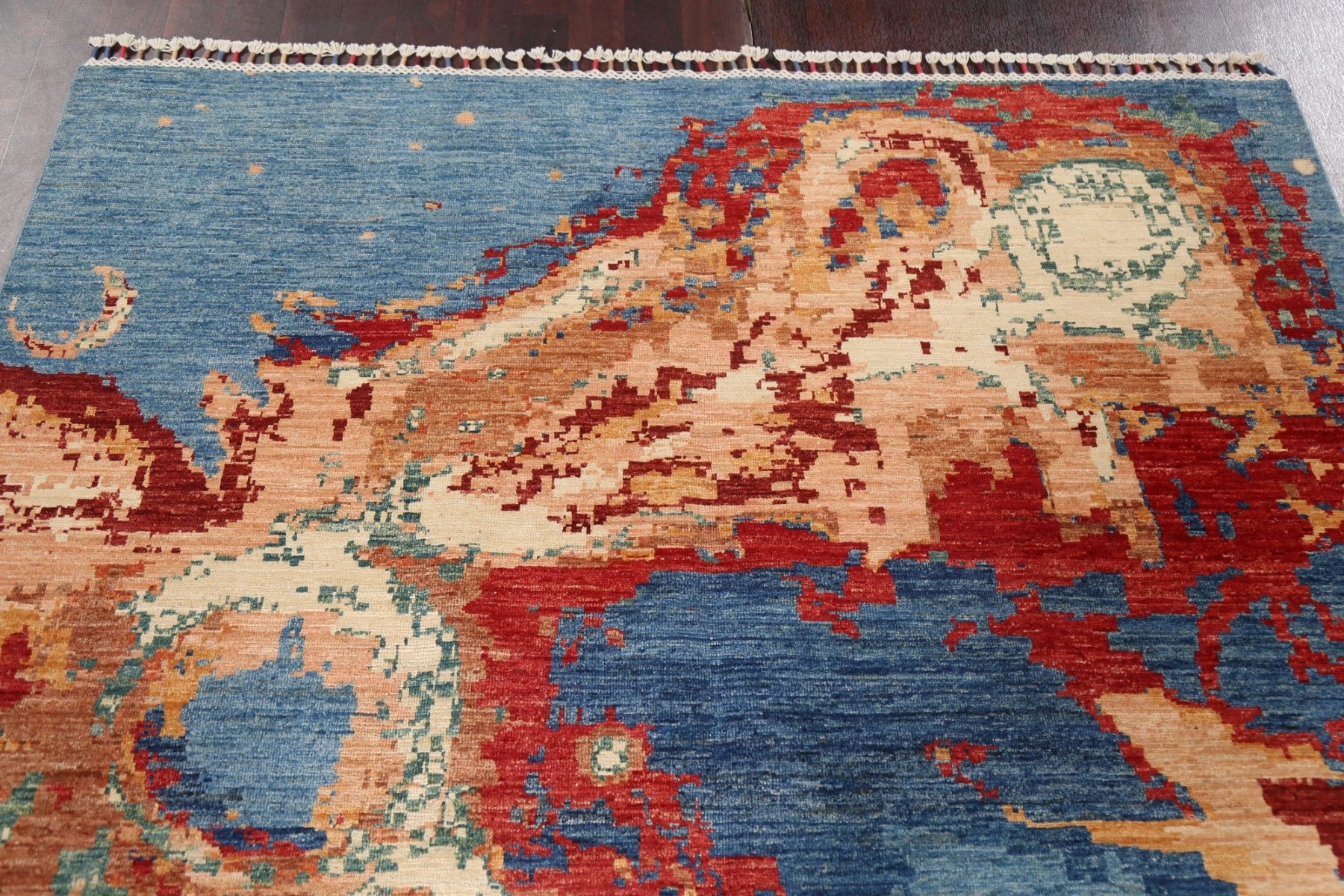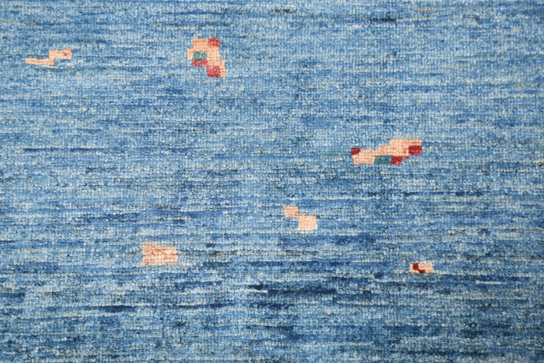 A Beautiful Genuine Pakistan Abstract rug is Hand Knotted by skillful weavers in Pakistan with 100% Wool Material. This rug is in New, First Quality condition. dimensions are 7' 10'' X 5' 8'' in foot and  239 X 173 in centimeter. the primary color is Navy Blue & Blues.