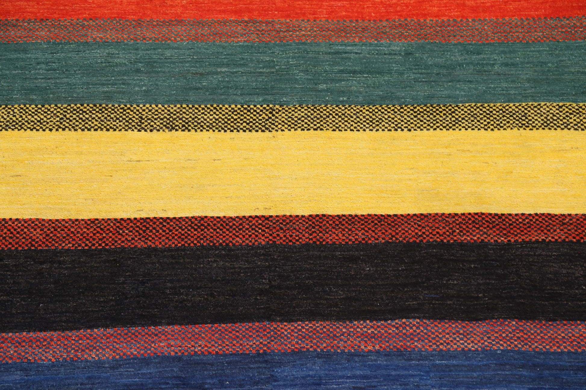 A Beautiful Genuine Afghanistan Gabbeh (kashkoli) rug is Hand Knotted by skillful weavers in Afghanistan with 100% Wool Material. This rug is in New, First Quality condition. dimensions are 9' 7'' X 6' 1'' in foot and 292 X 185 in centimeter. the primary color is Multi-Colored.