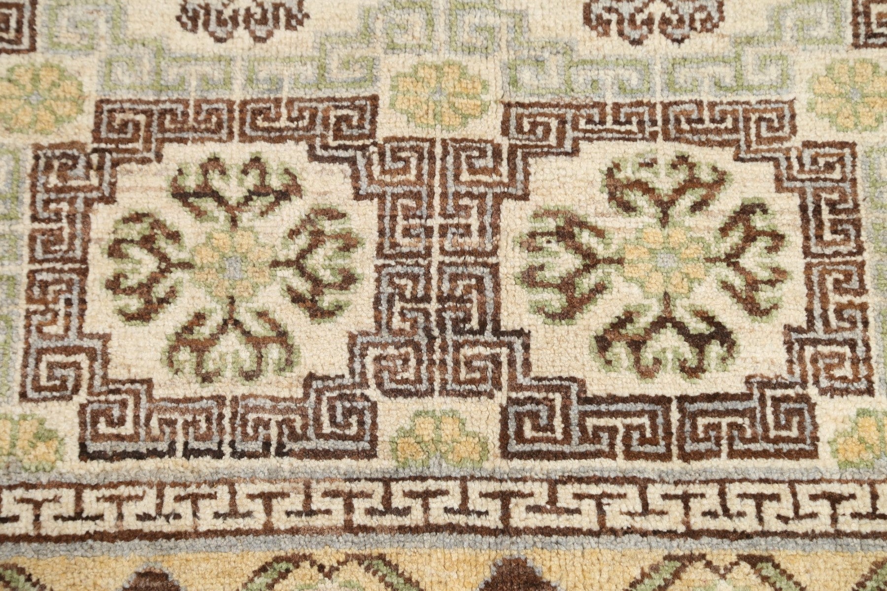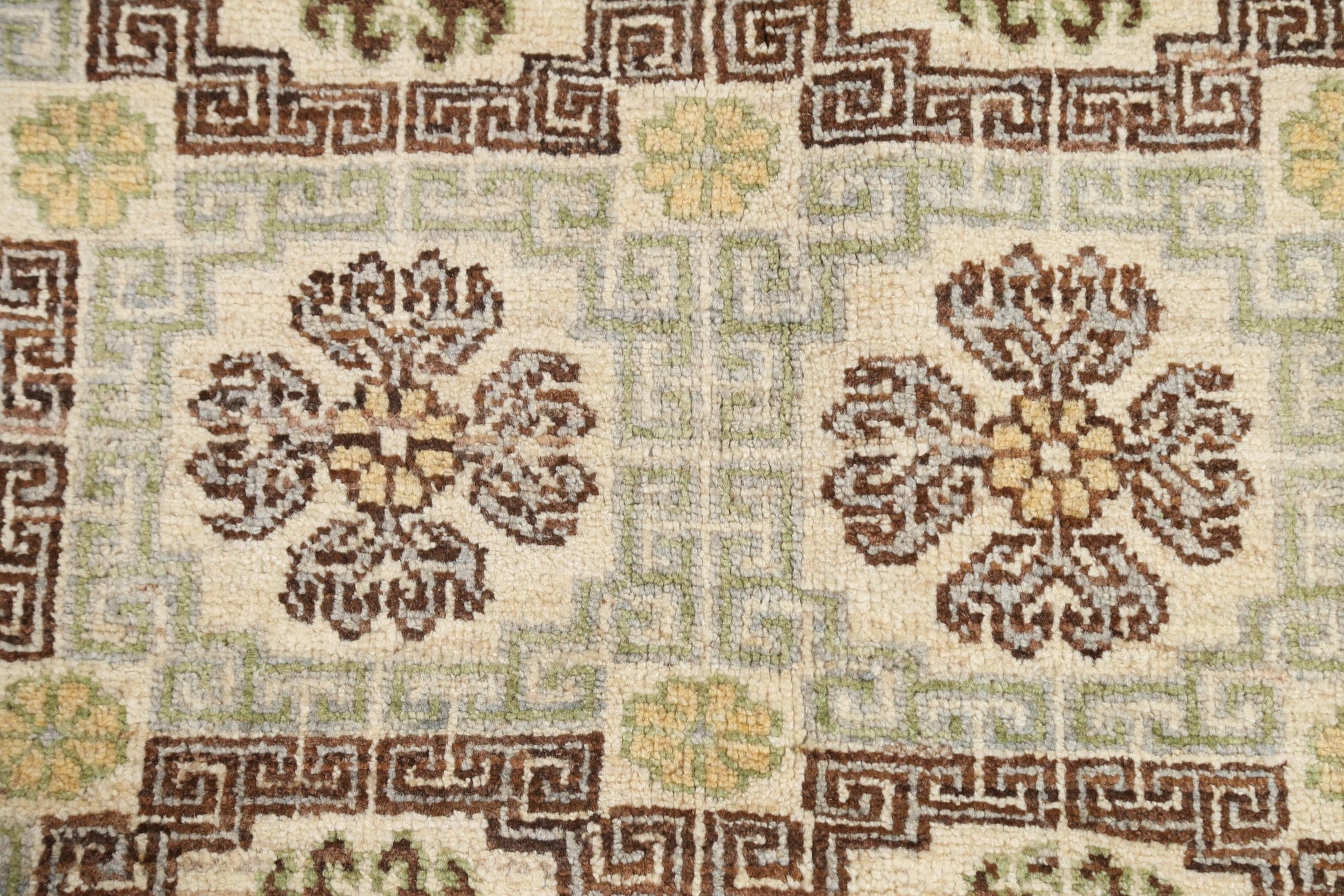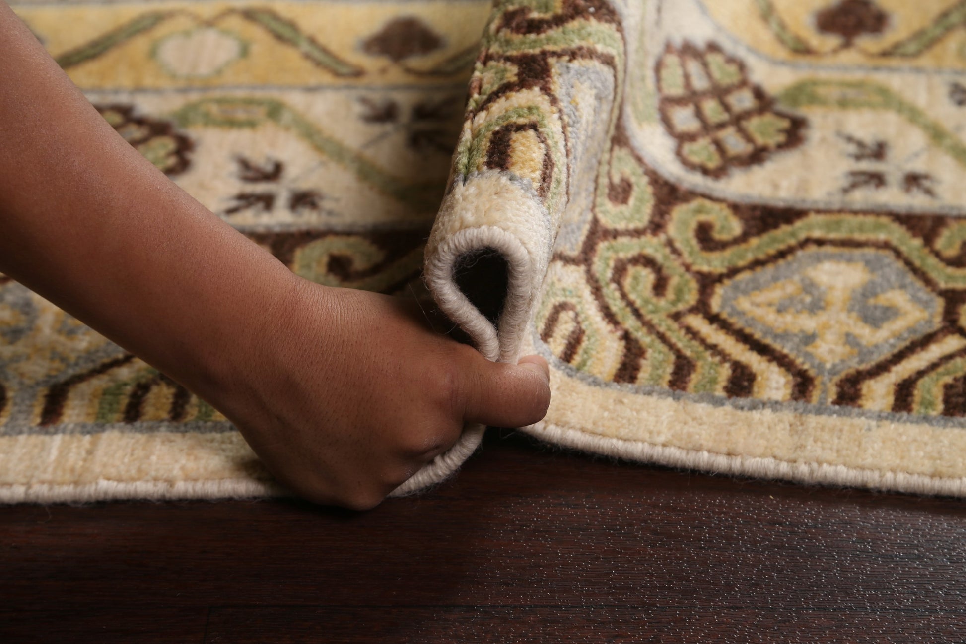A Beautiful Genuine Pakistan Khotan rug is Hand Knotted by skillful weavers in Pakistan with 100% Wool Material. This rug is in New, First Quality condition. dimensions are 11' 5'' X 8' 10'' in foot and 348 X 269 in centimeter. the primary color is Beige & Ivories.