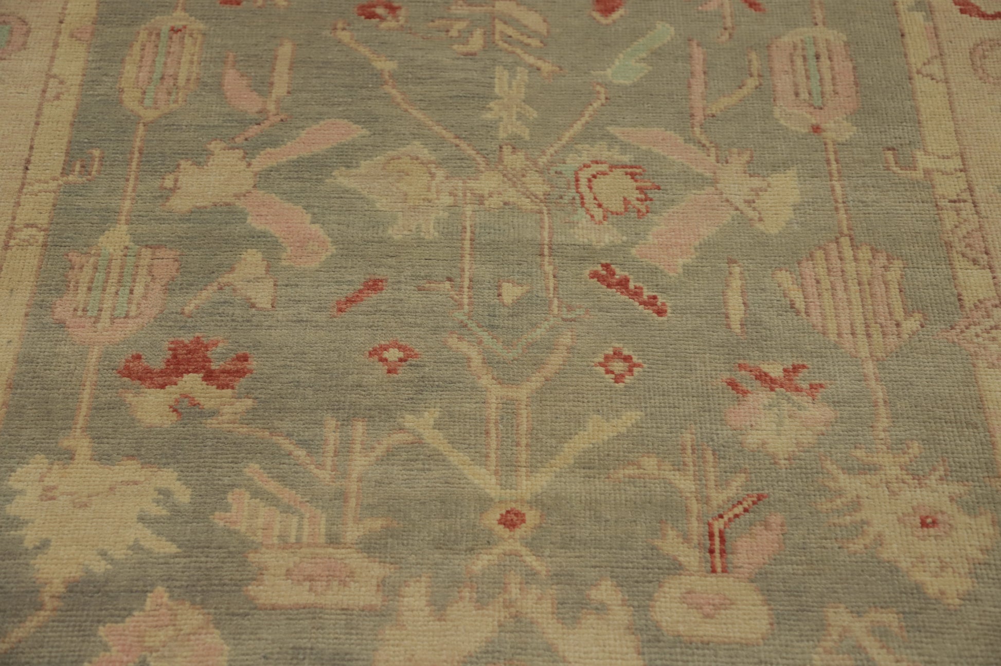 A Beautiful Genuine Turkey Oushak rug is Hand Knotted by skillful weavers in Turkey with 100% Wool Material. This rug is in New, First Quality condition. dimensions are 6' 11'' X 4' 1'' in foot and 211 X 124 in centimeter. the primary color is Green.
