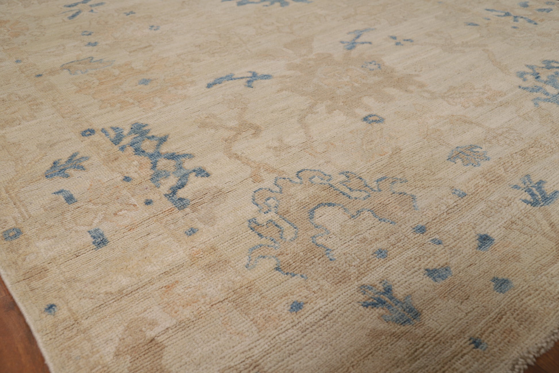 A Beautiful Genuine Turkey Oushak rug is Hand Knotted by skillful weavers in Turkey with 100% Wool Material. This rug is in New, First Quality condition. dimensions are 6' 7'' X 5' 0'' in foot and 201 X 152 in centimeter. the primary color is Beige & Ivories.