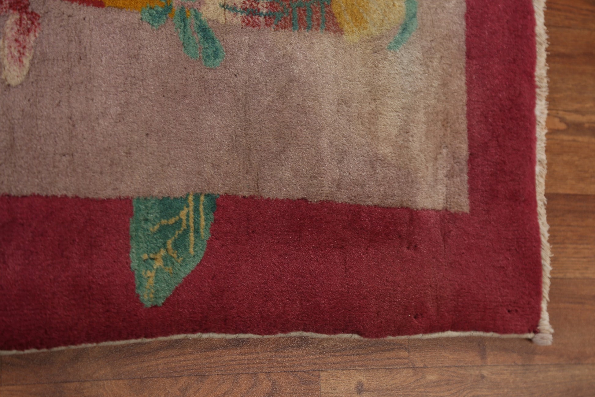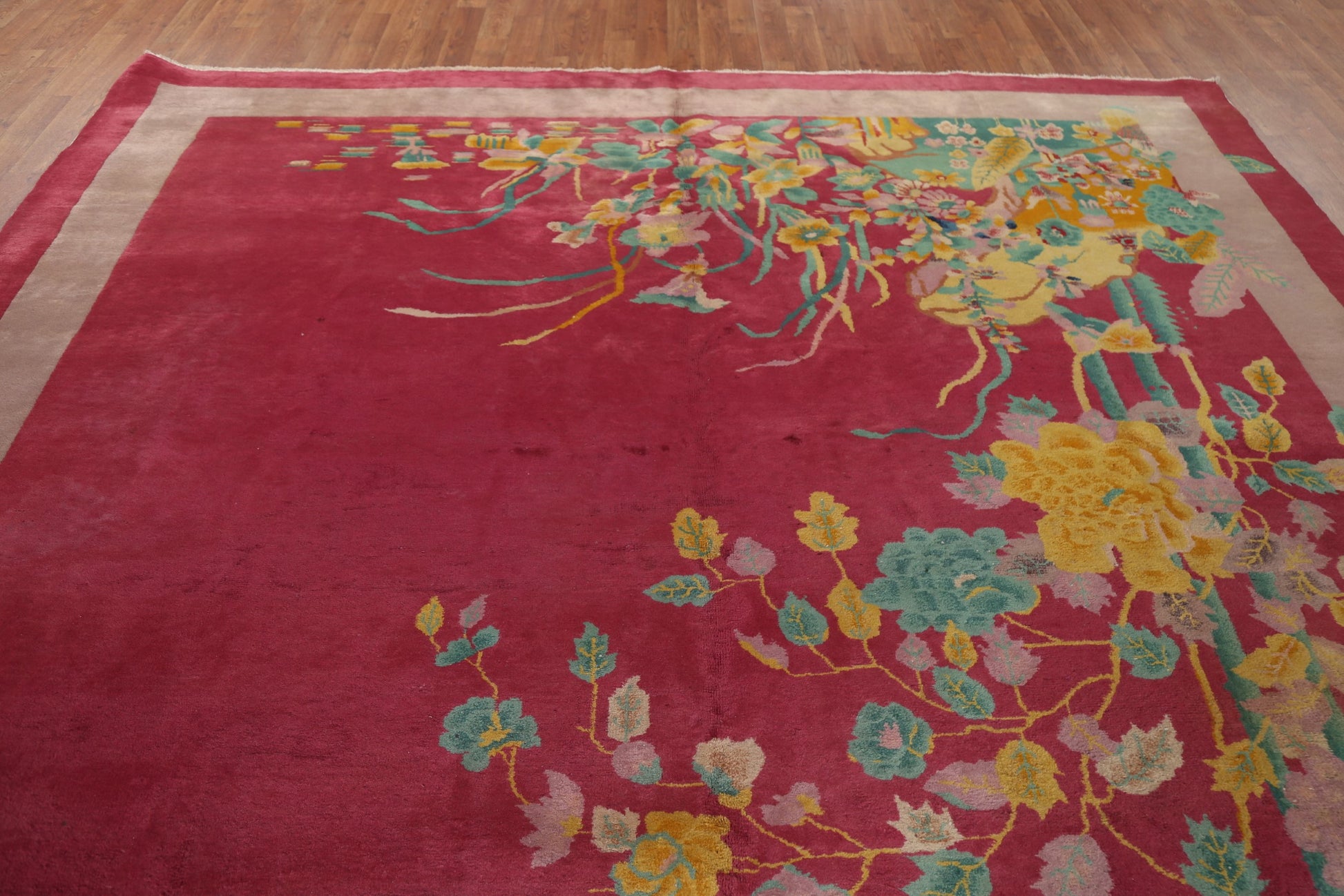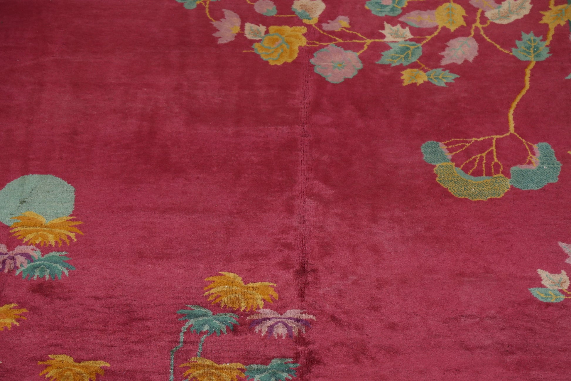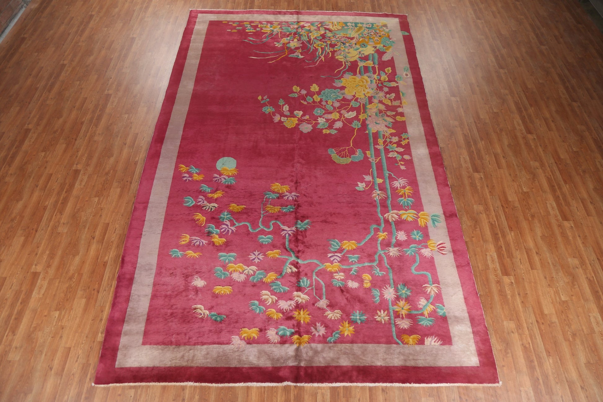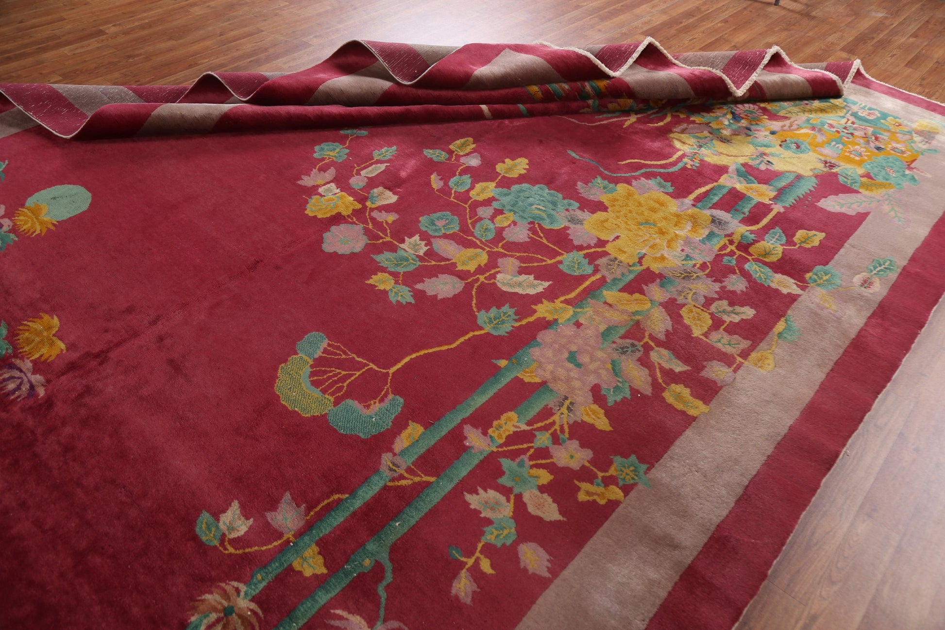 A Beautiful Genuine China Art Deco rug is Hand Knotted by skillful weavers in China with 100% Wool Material. This rug is in Very Good condition. dimensions are 14' 2'' X 8' 9'' in foot and 432 X 267 in centimeter. the primary color is Pink.